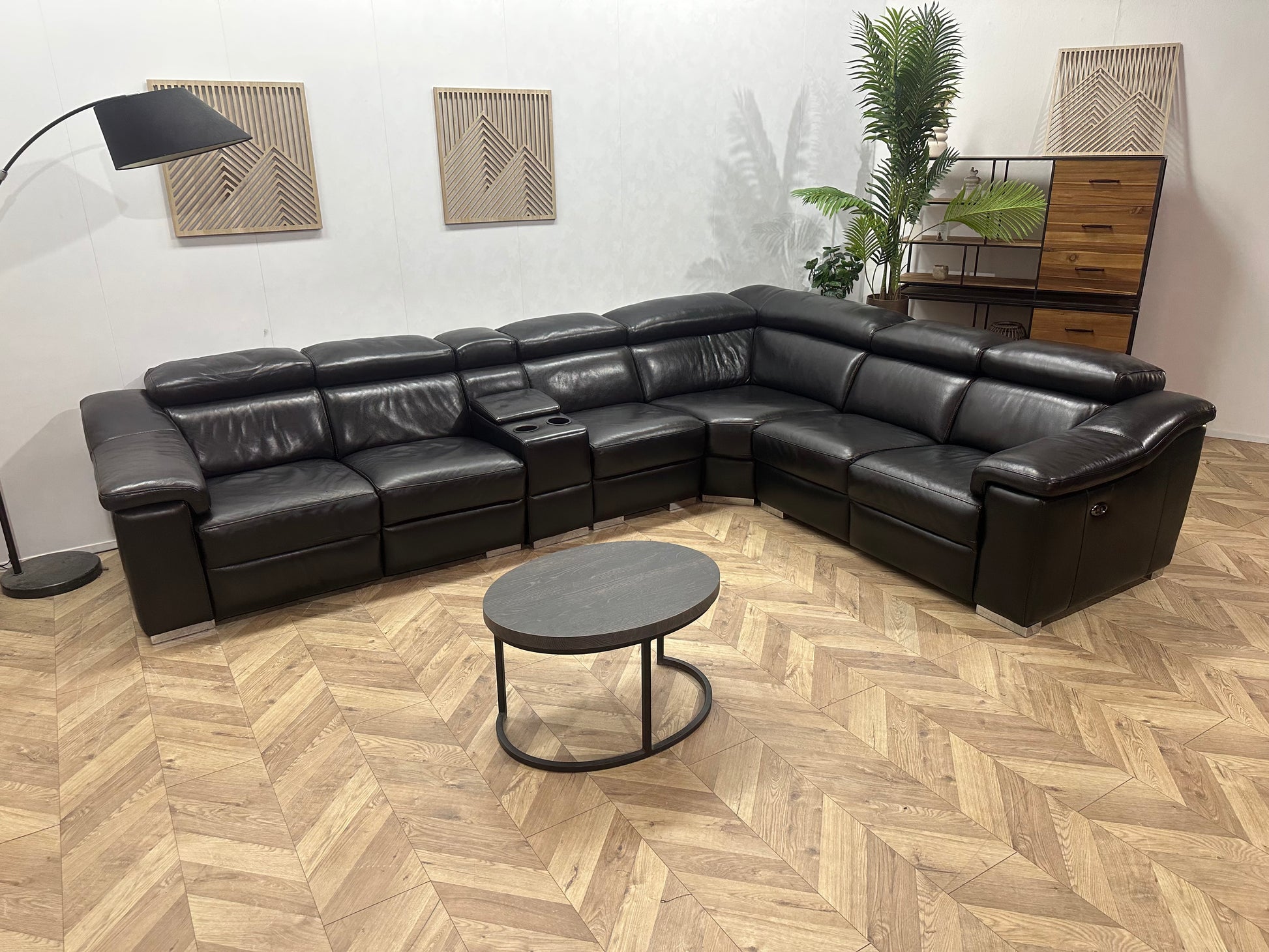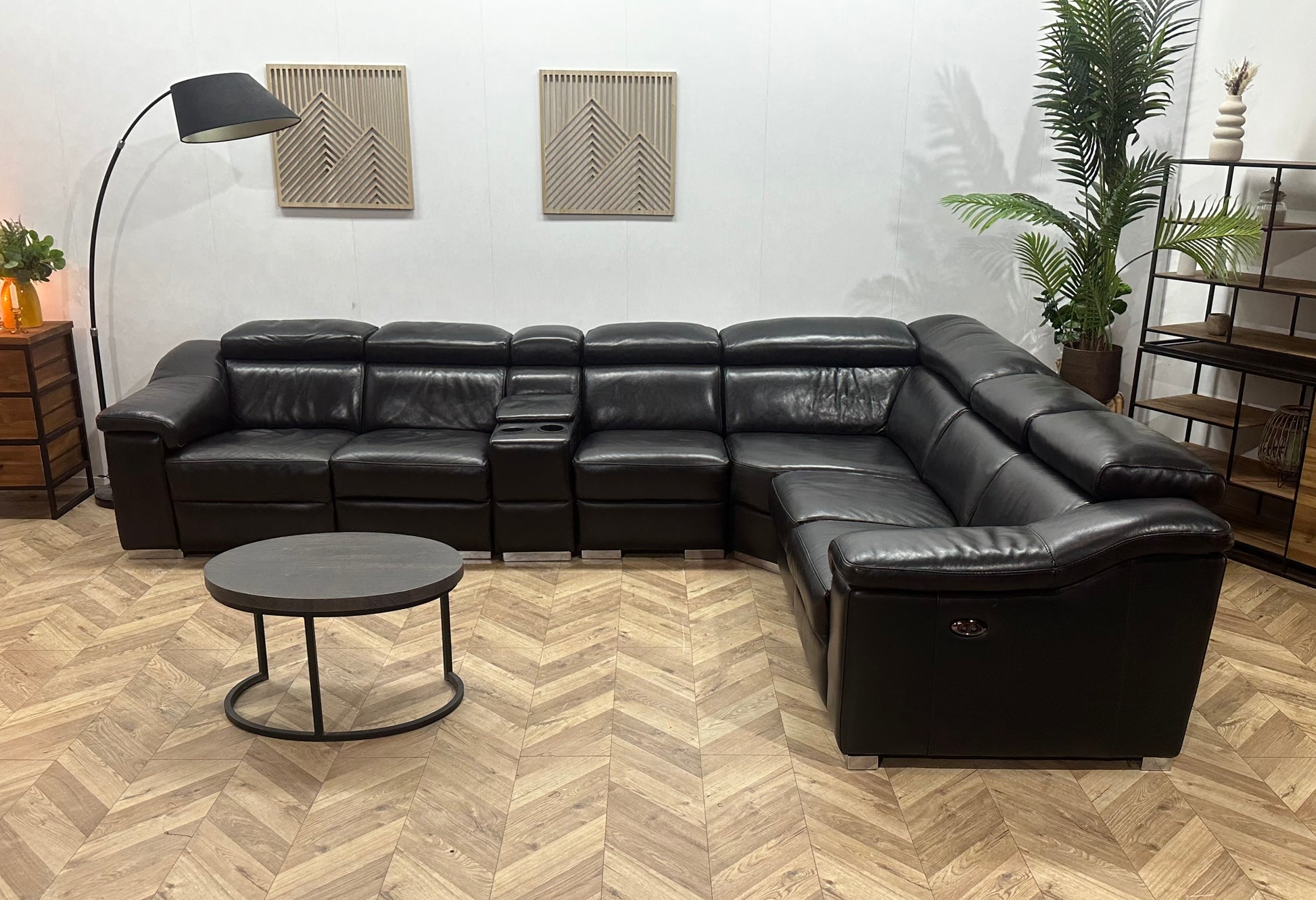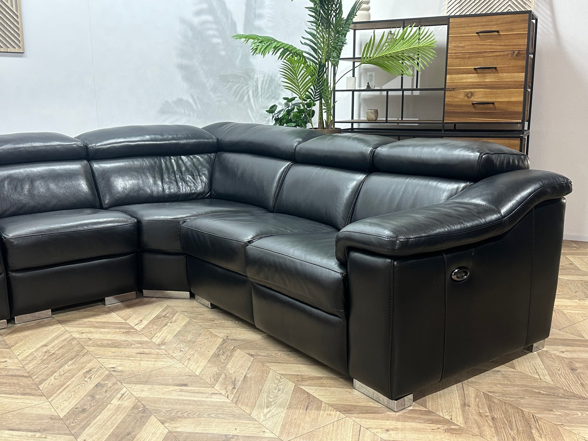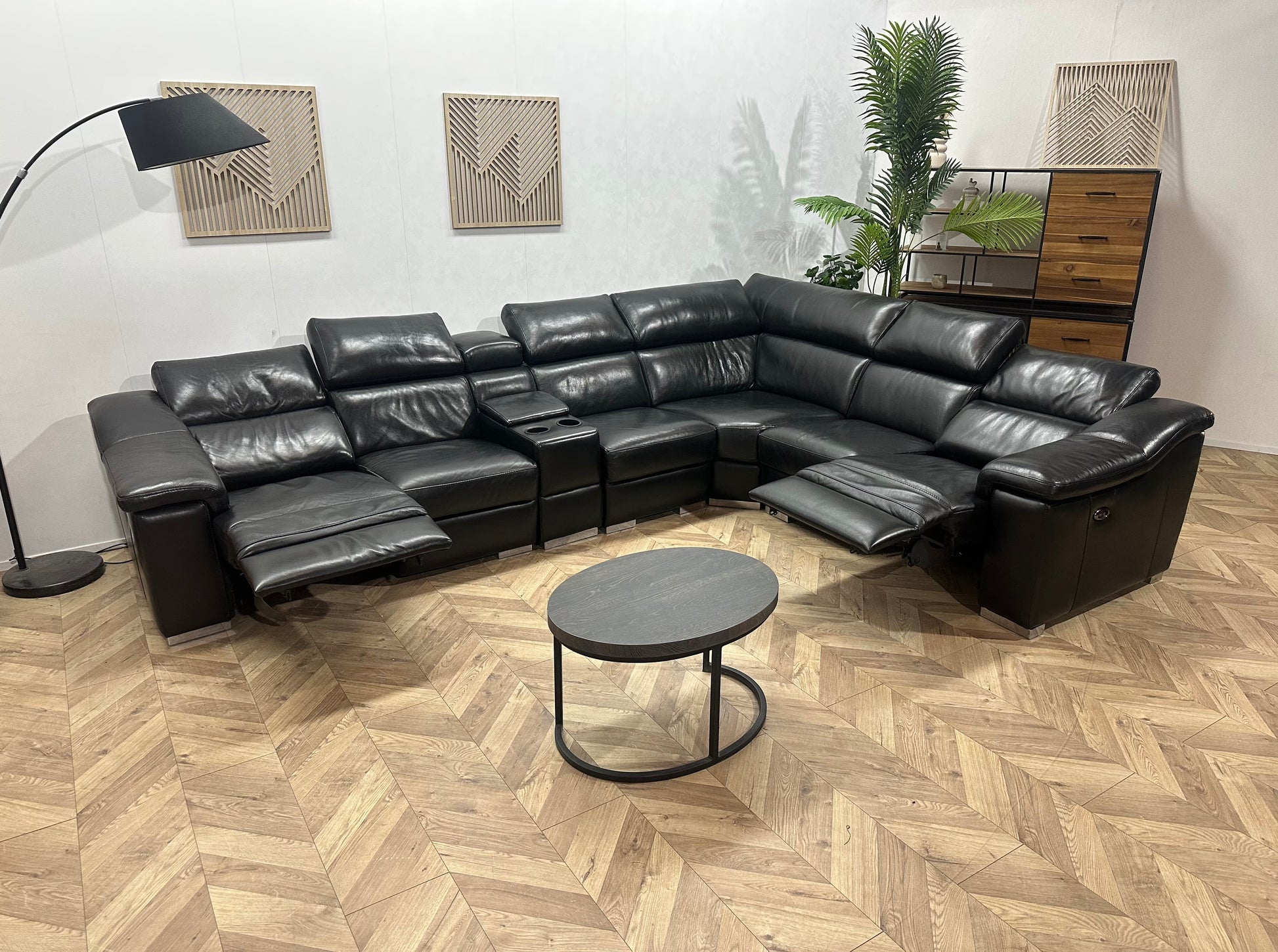 Zwart Echt Lederen Ruime Hoekbank ~ Relaxfunctie ~ Kleine Opbergruimte ~ Verstelbare Hoofdsteunen