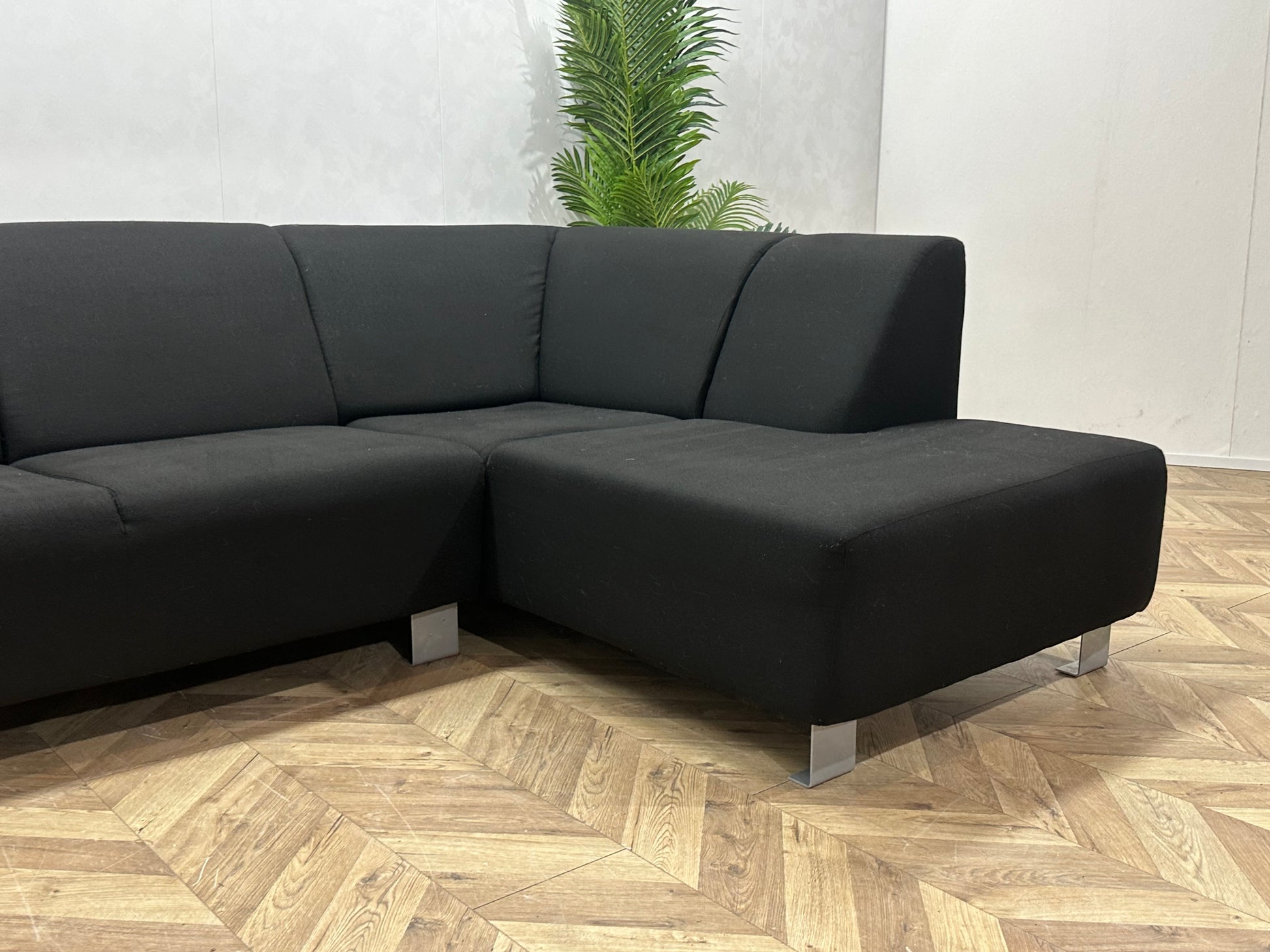 Zwarte Velvet Hoekbank ~ Losse Kussens Met Afneembare Hoezen