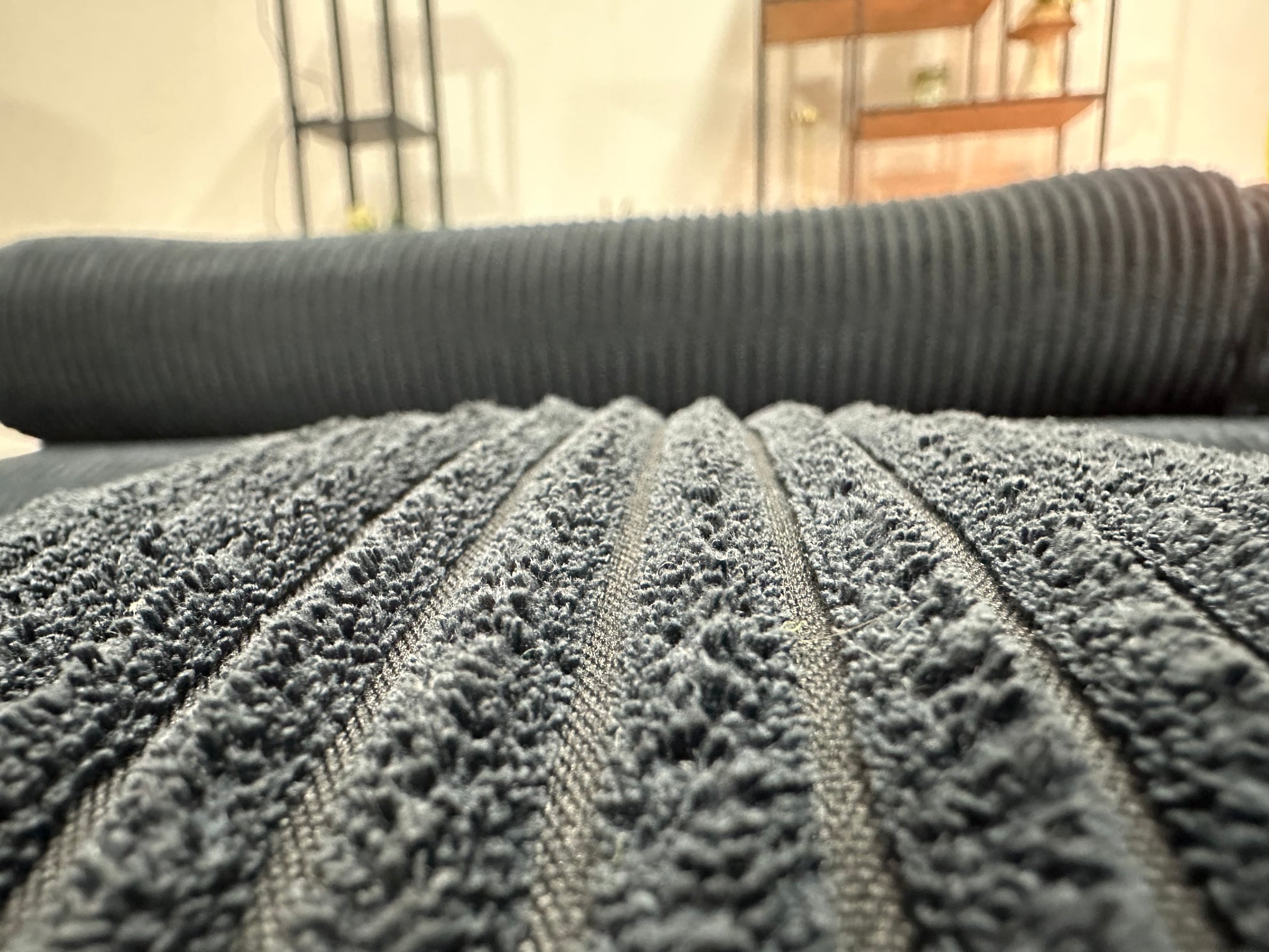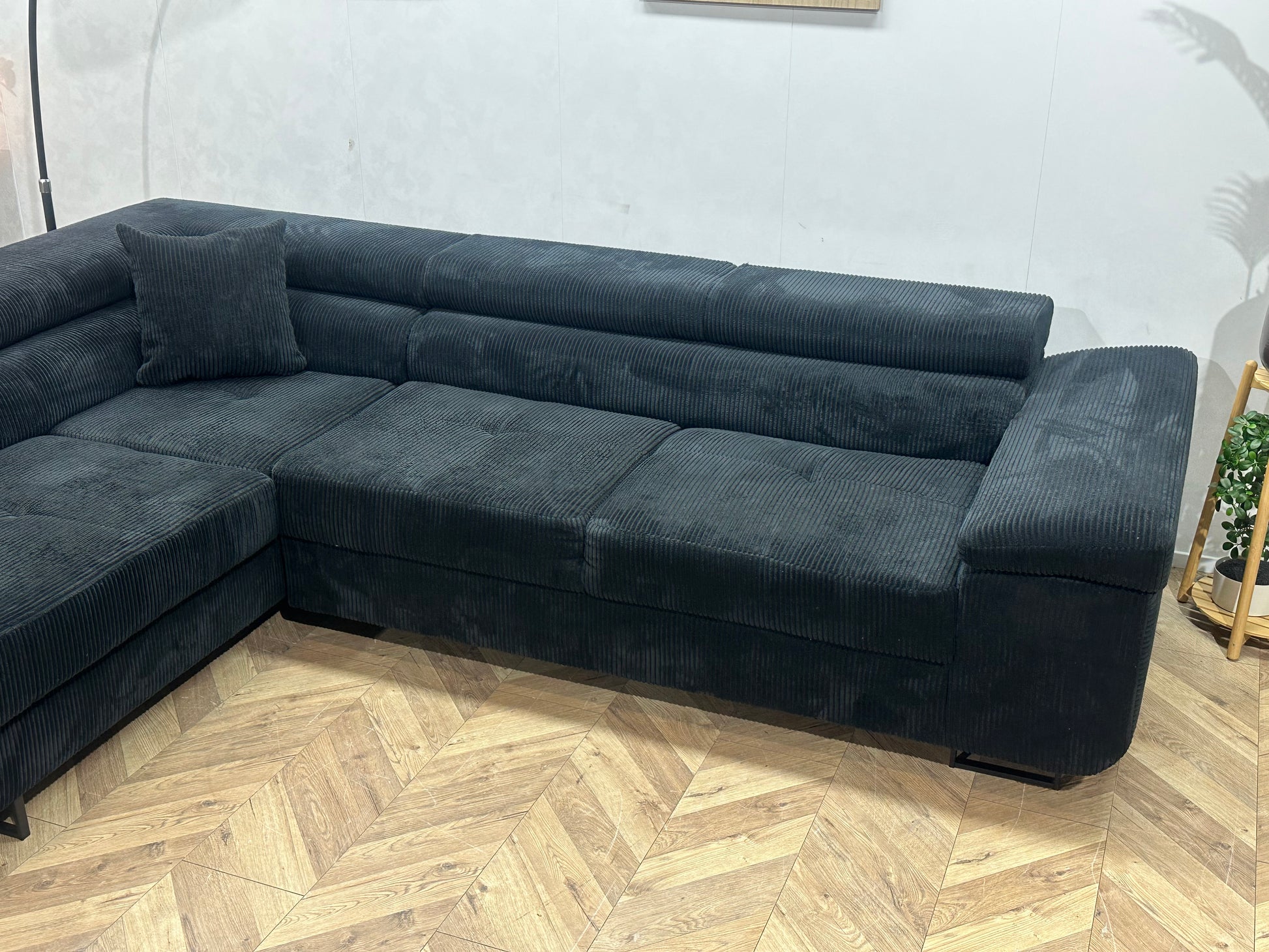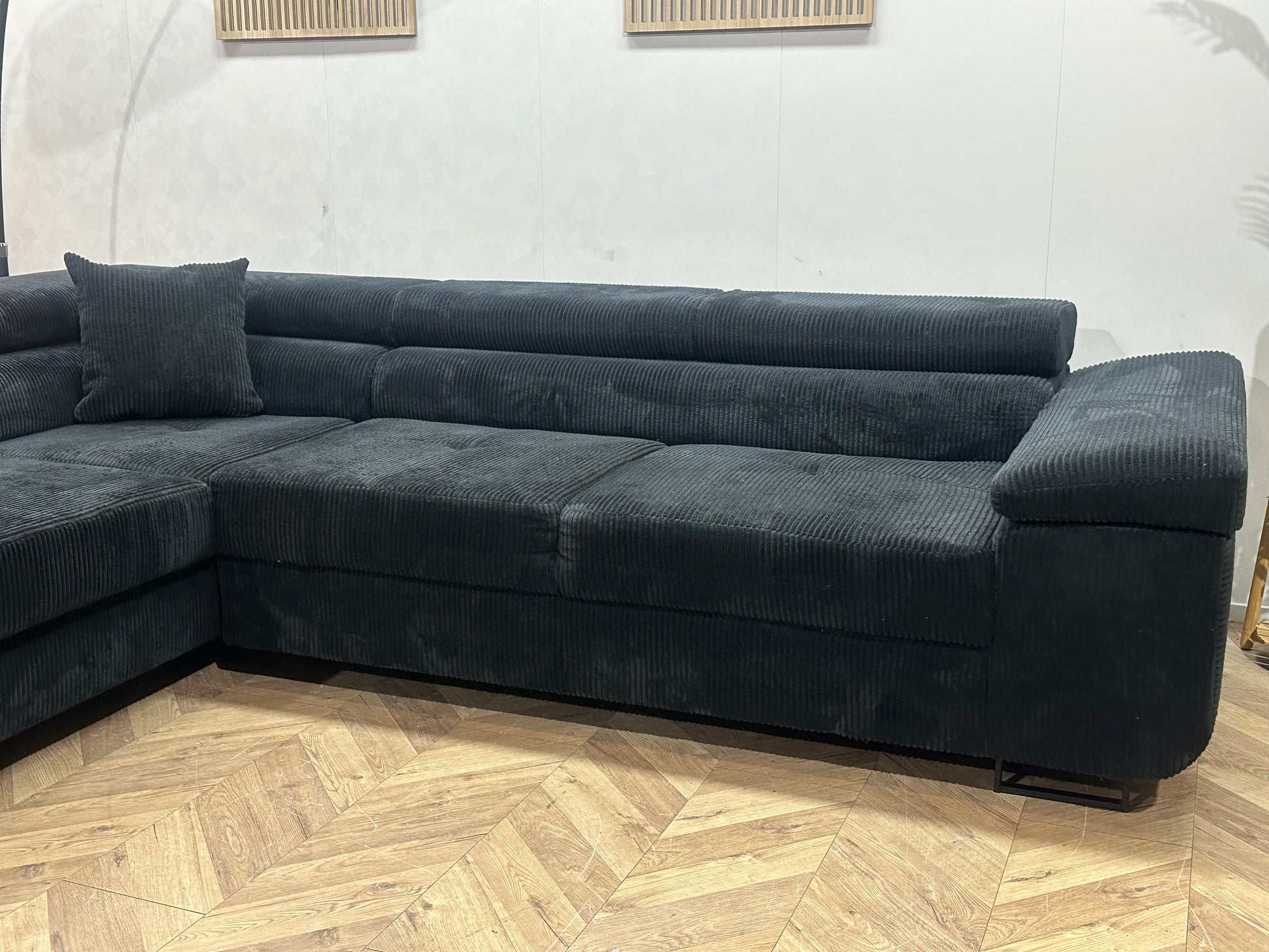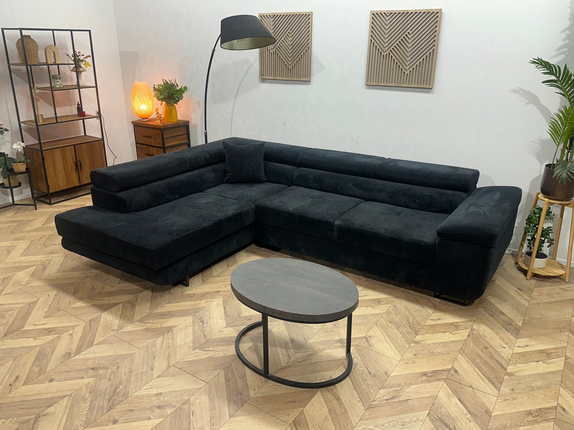 Zwart Ribstof Hoekbank ~ Verstelbare Hoofdsteunen