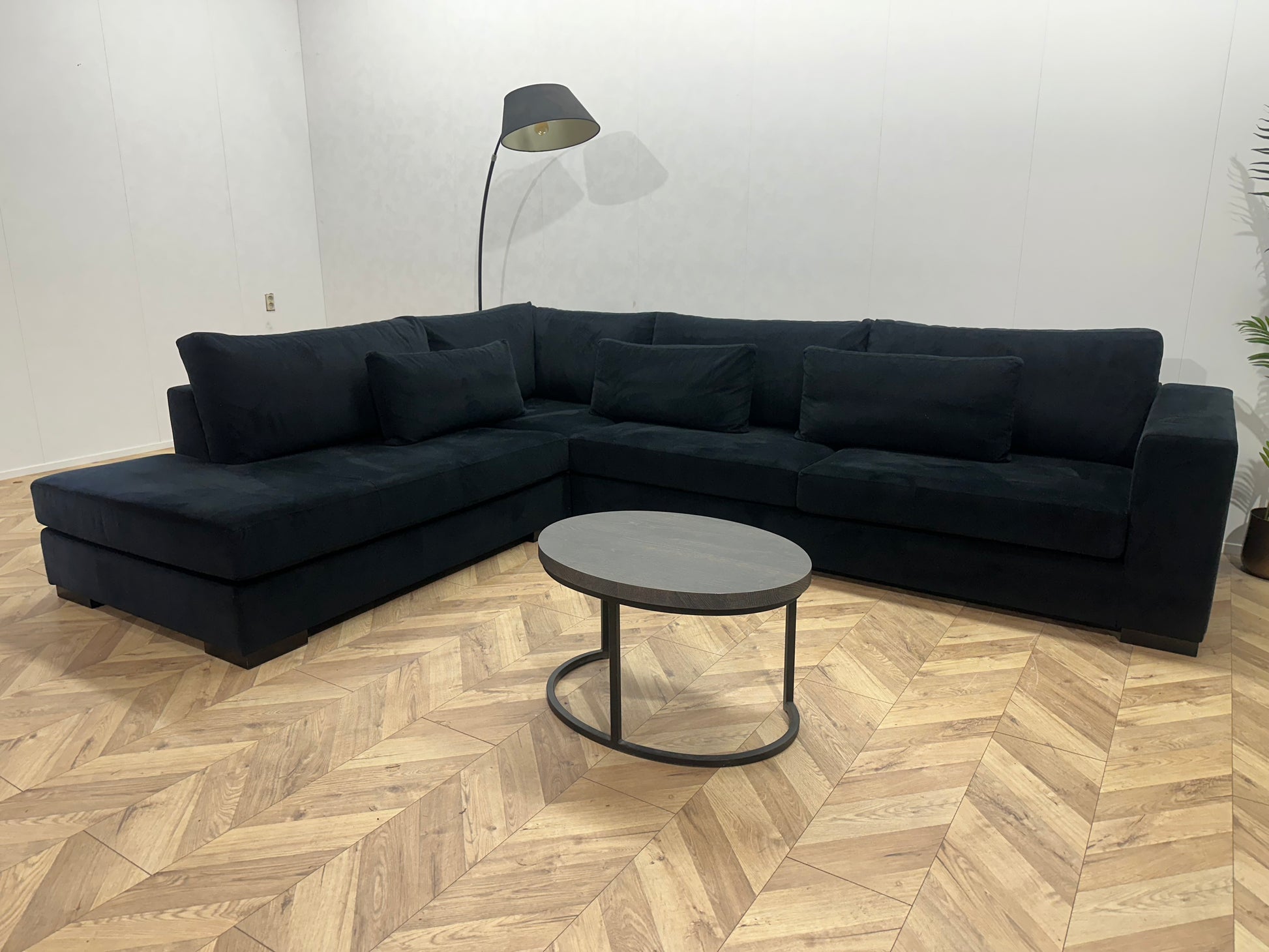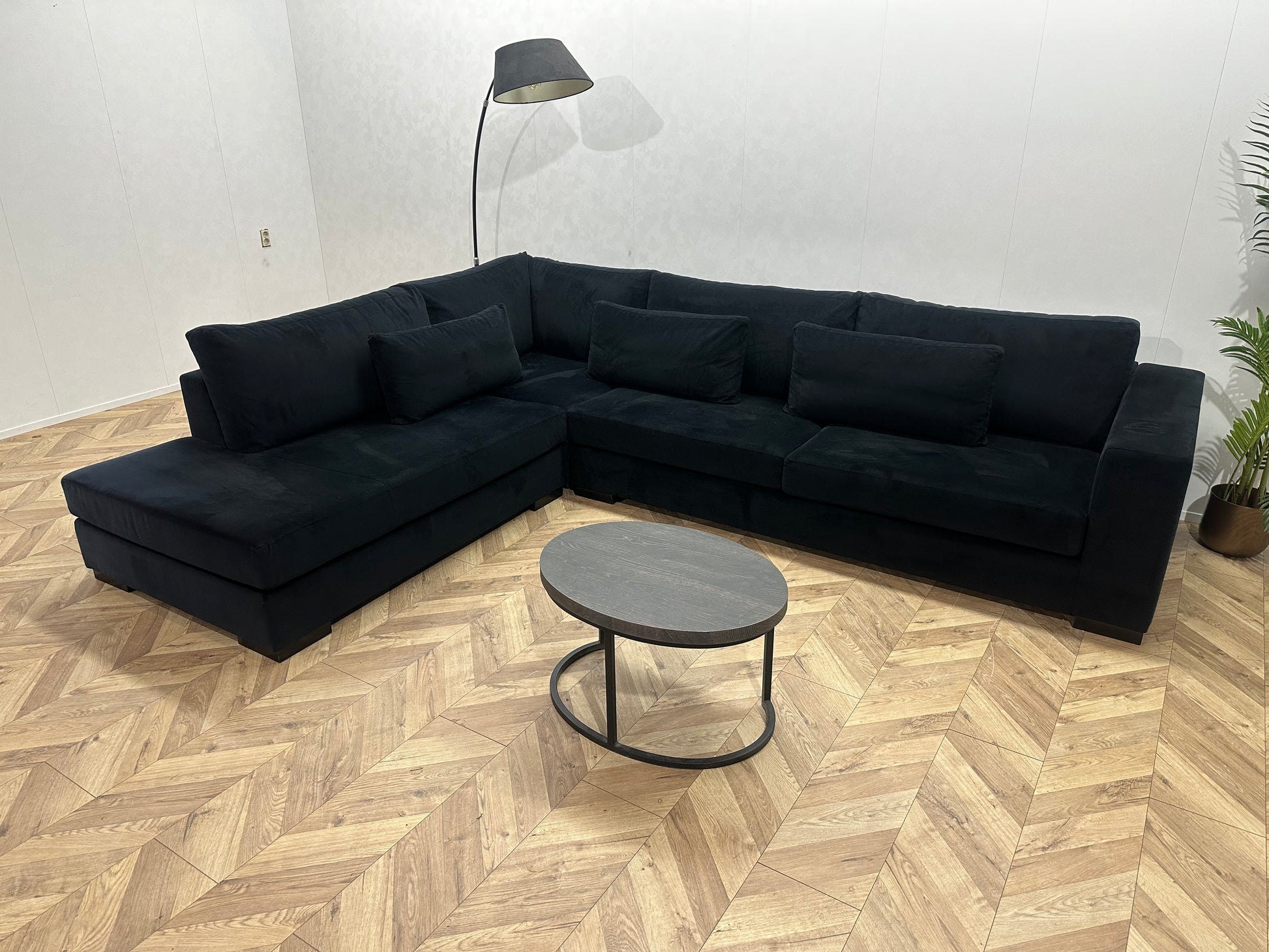 Zwart Velvet Hoekbank ~ Losse Kussens Met Afneembare Hoezen