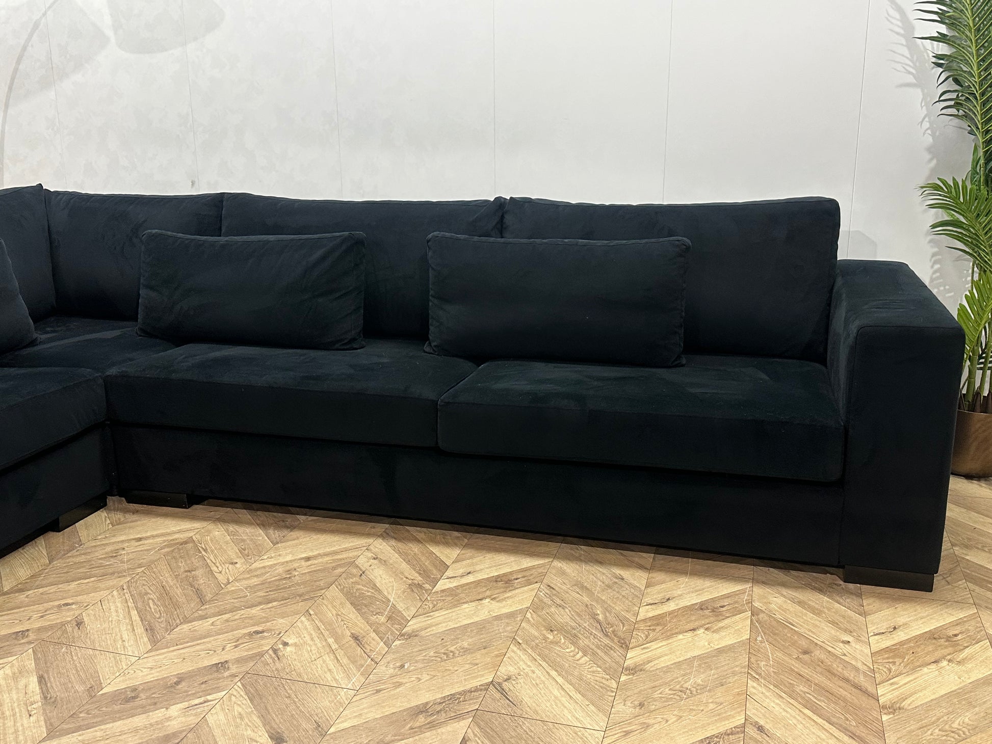 Zwarte Velvet Hoekbank ~ Losse Kussens Met Afneembare Hoezen