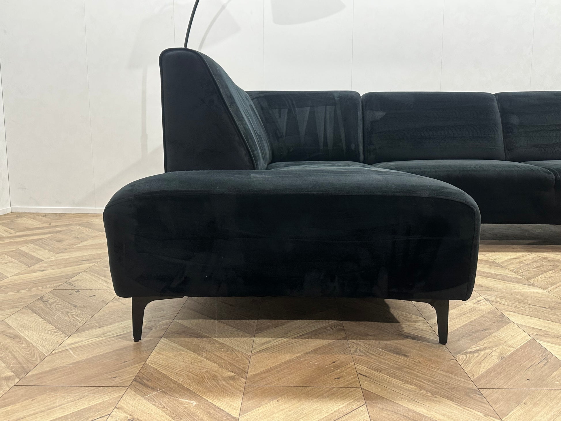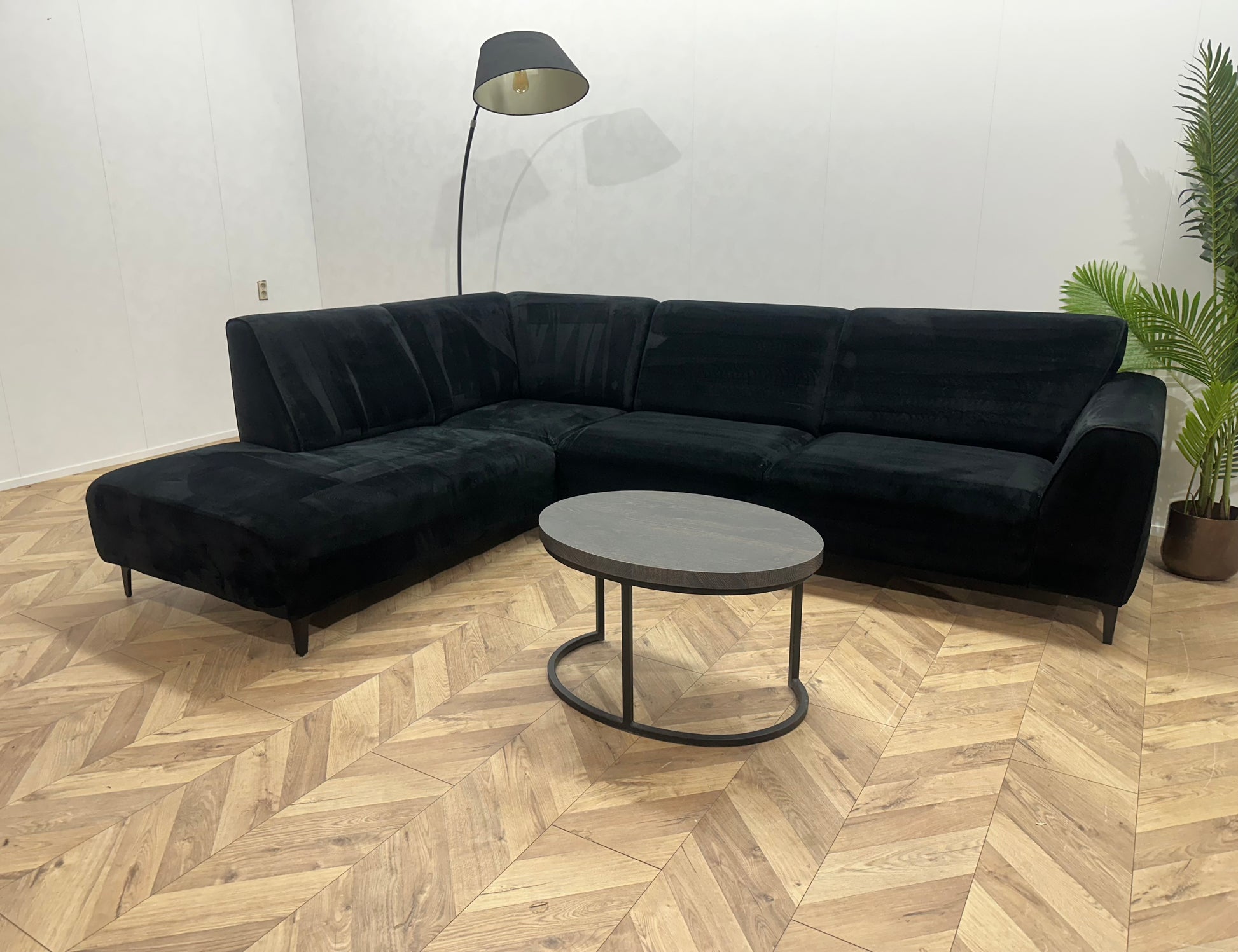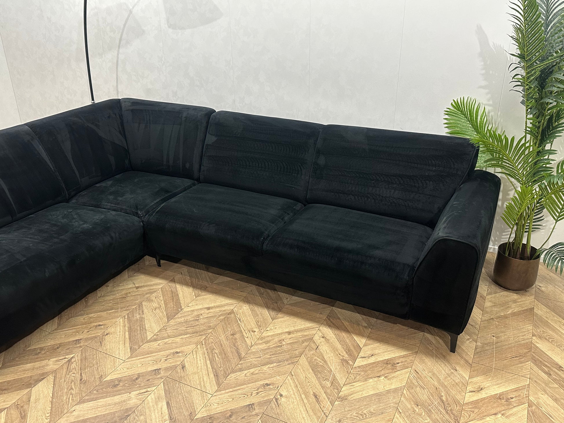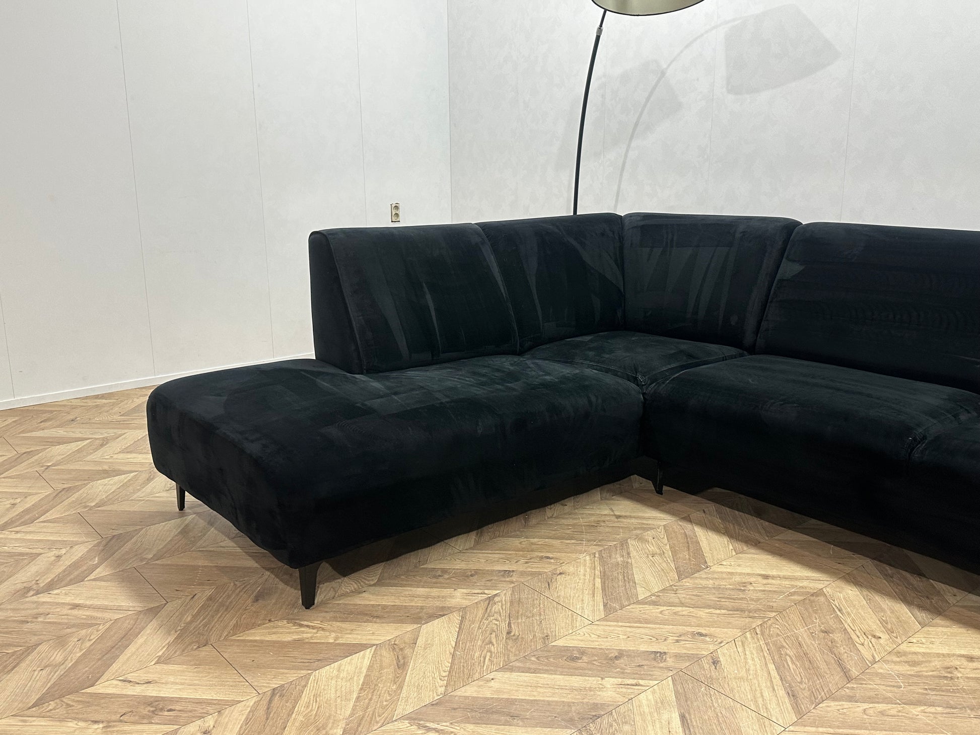Zwart Velvet Hoekbank ~ Vaste Kussens