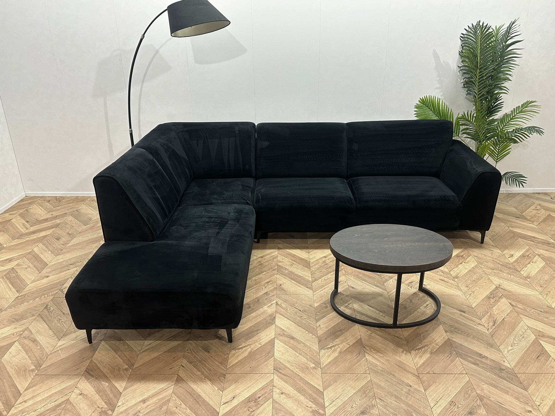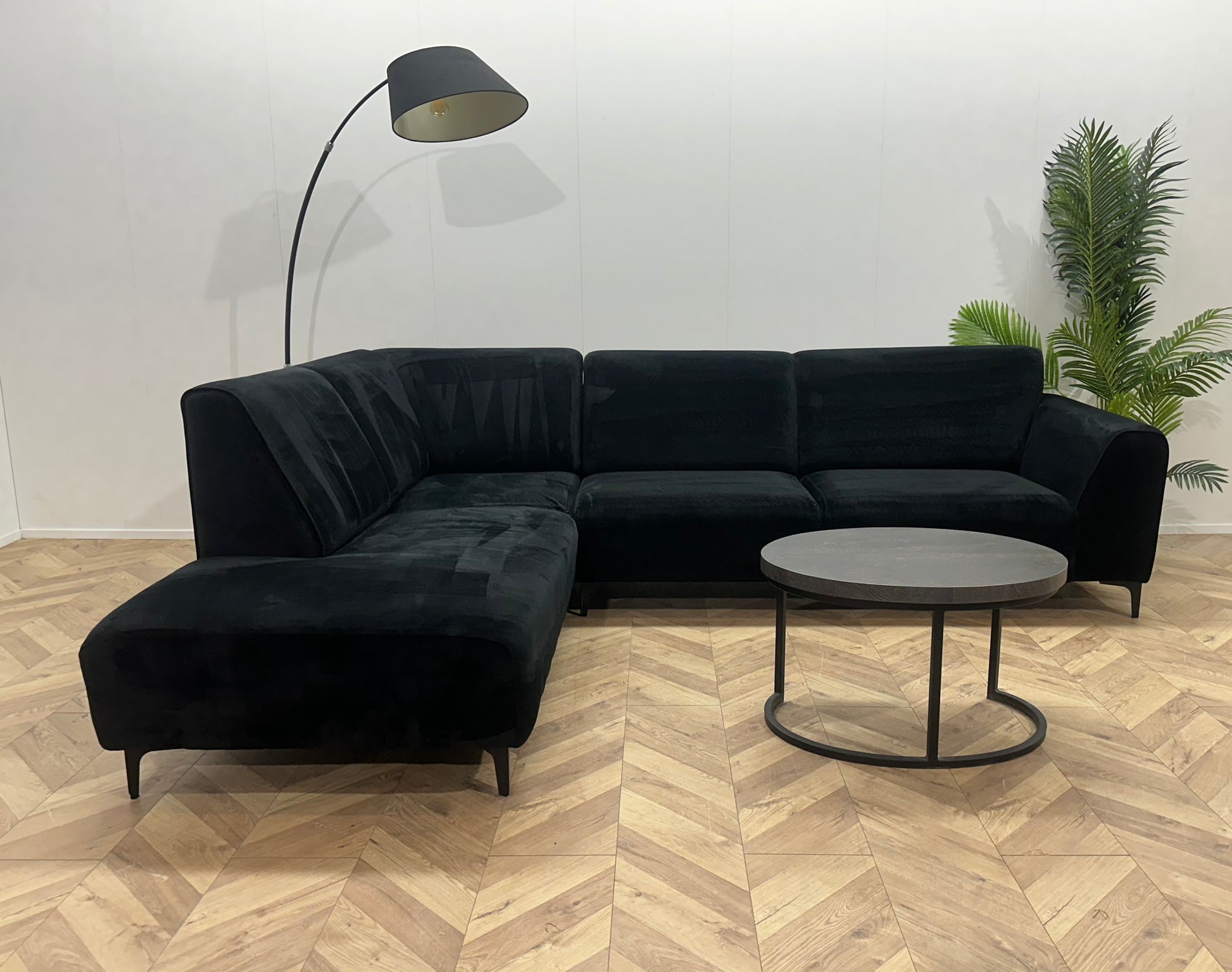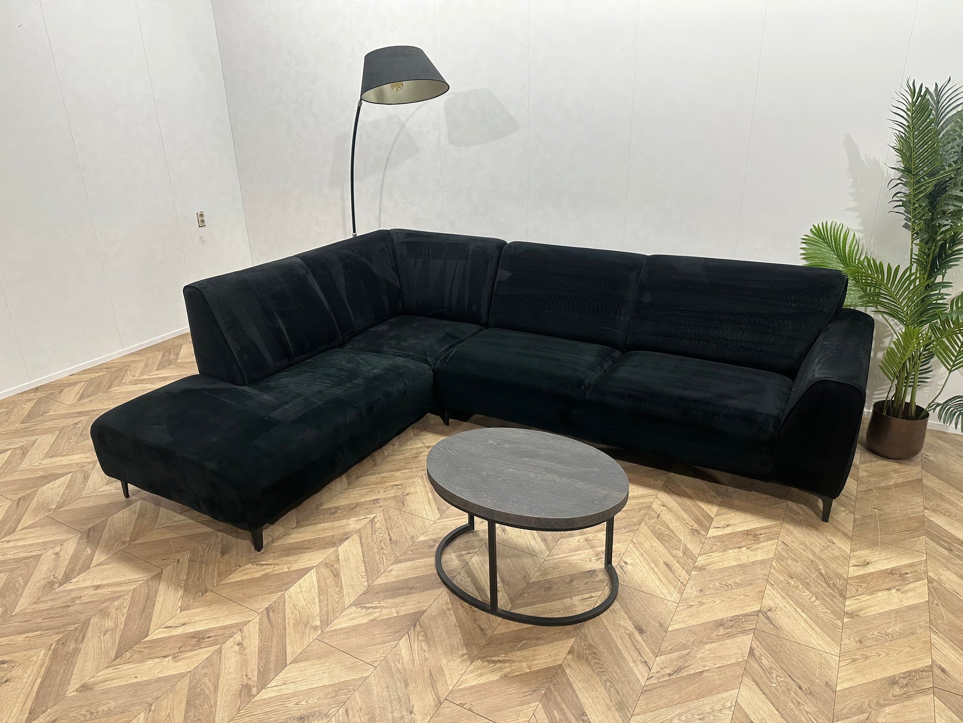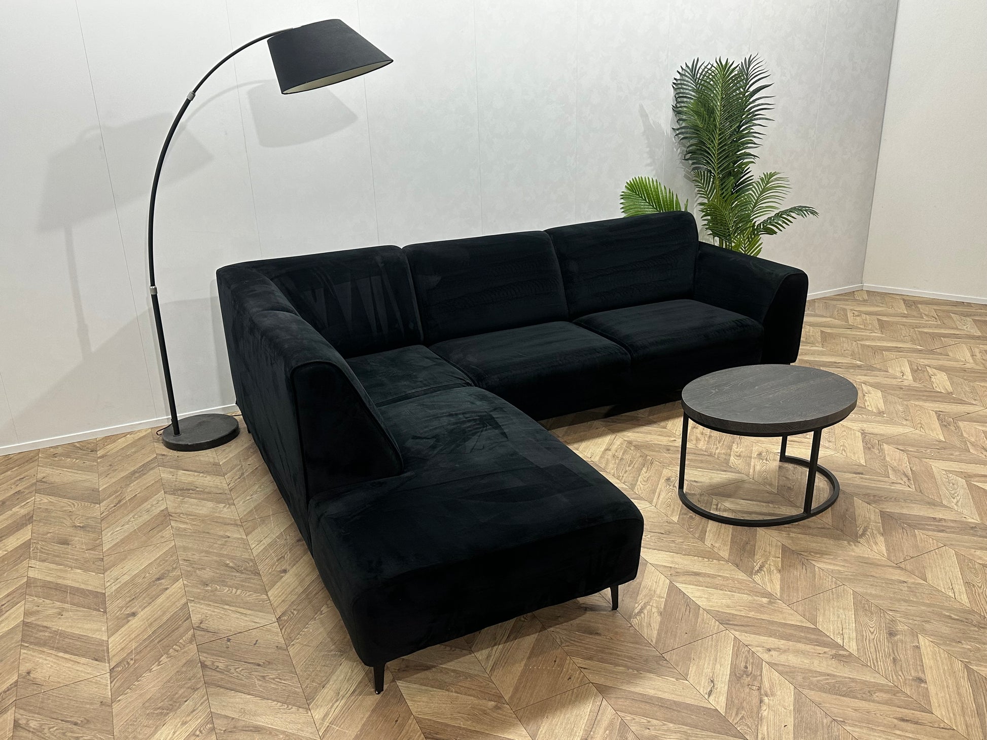 Zwart Velvet Hoekbank ~ Vaste Kussens
