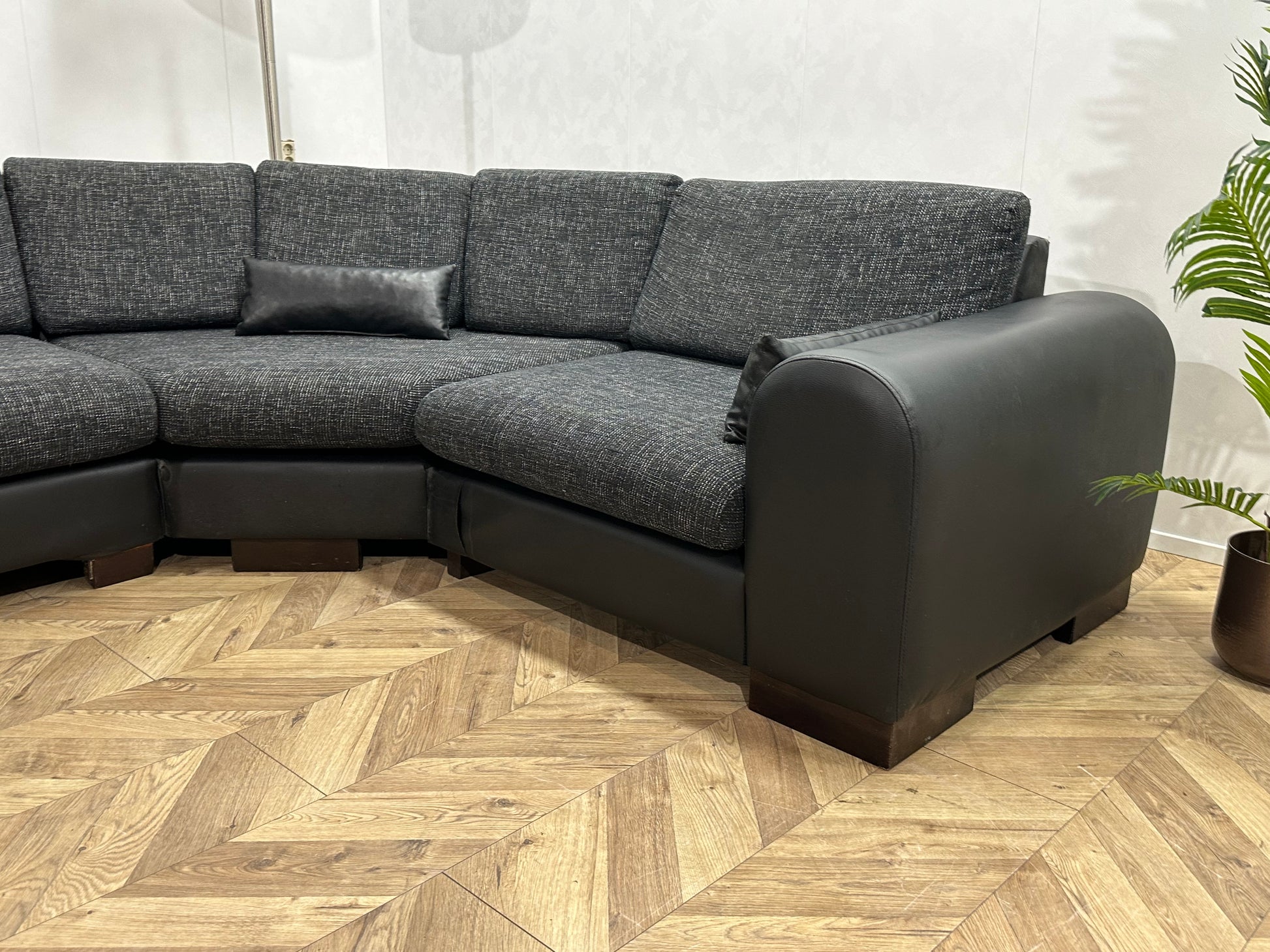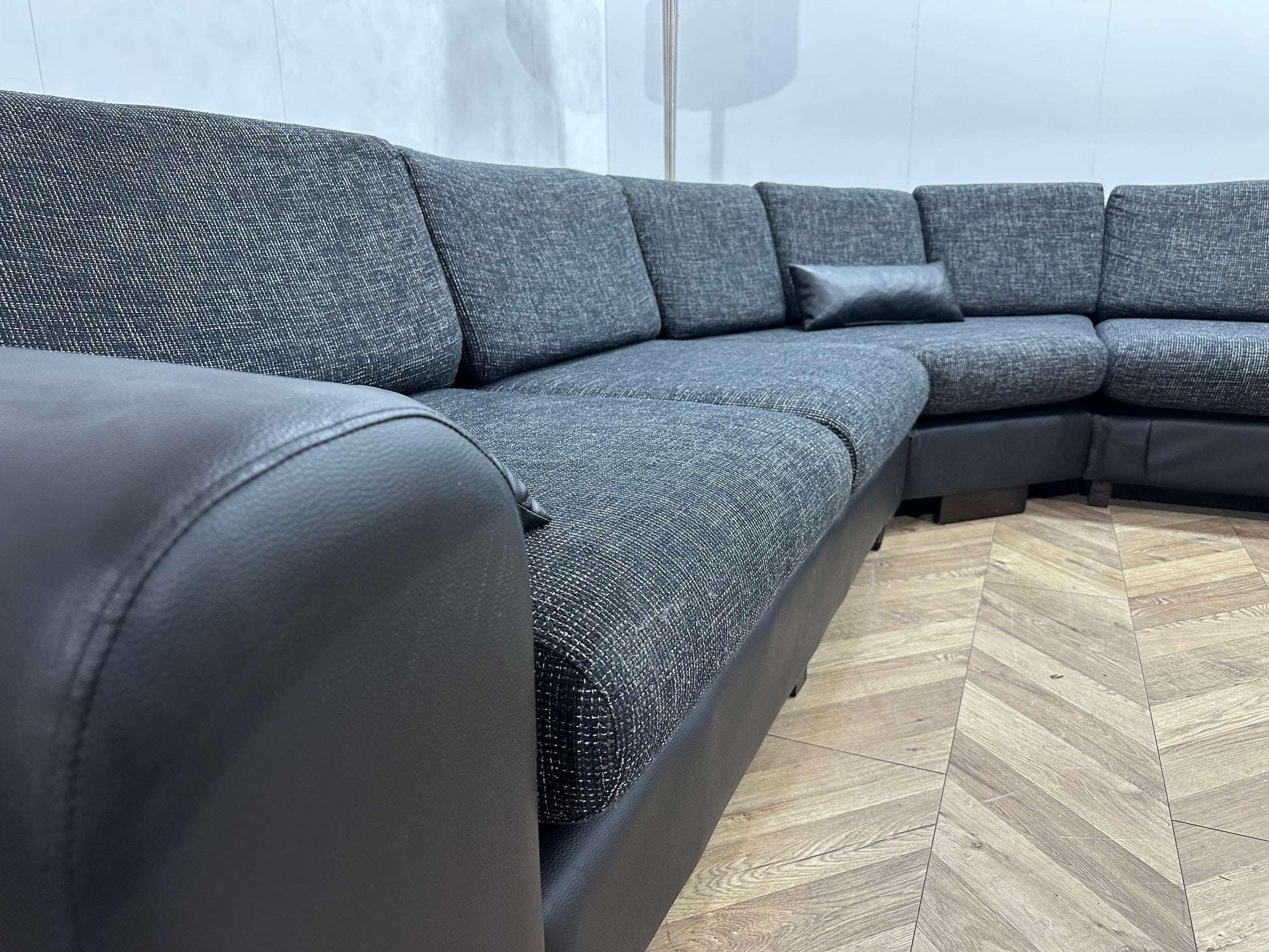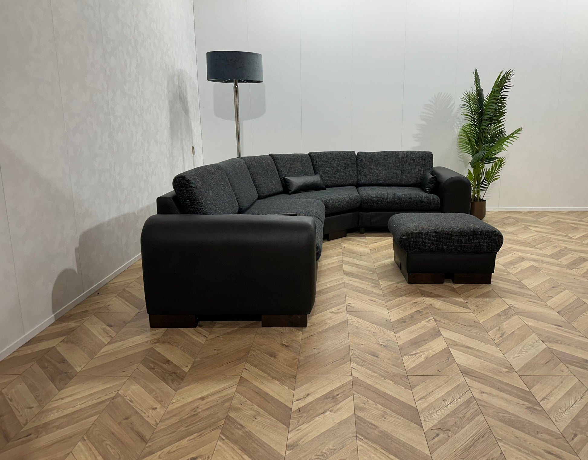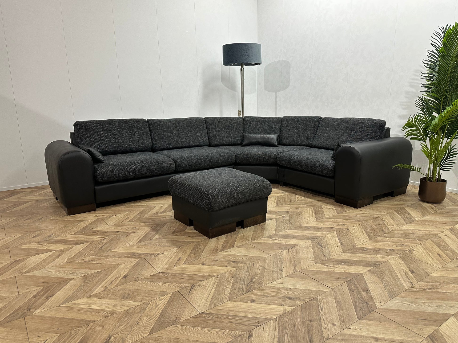 Zwarte/Antraciet Lederen/Stoffen Hoekbank Inc Hocker ~ Losse Kussens Met Afneembare Hoezen