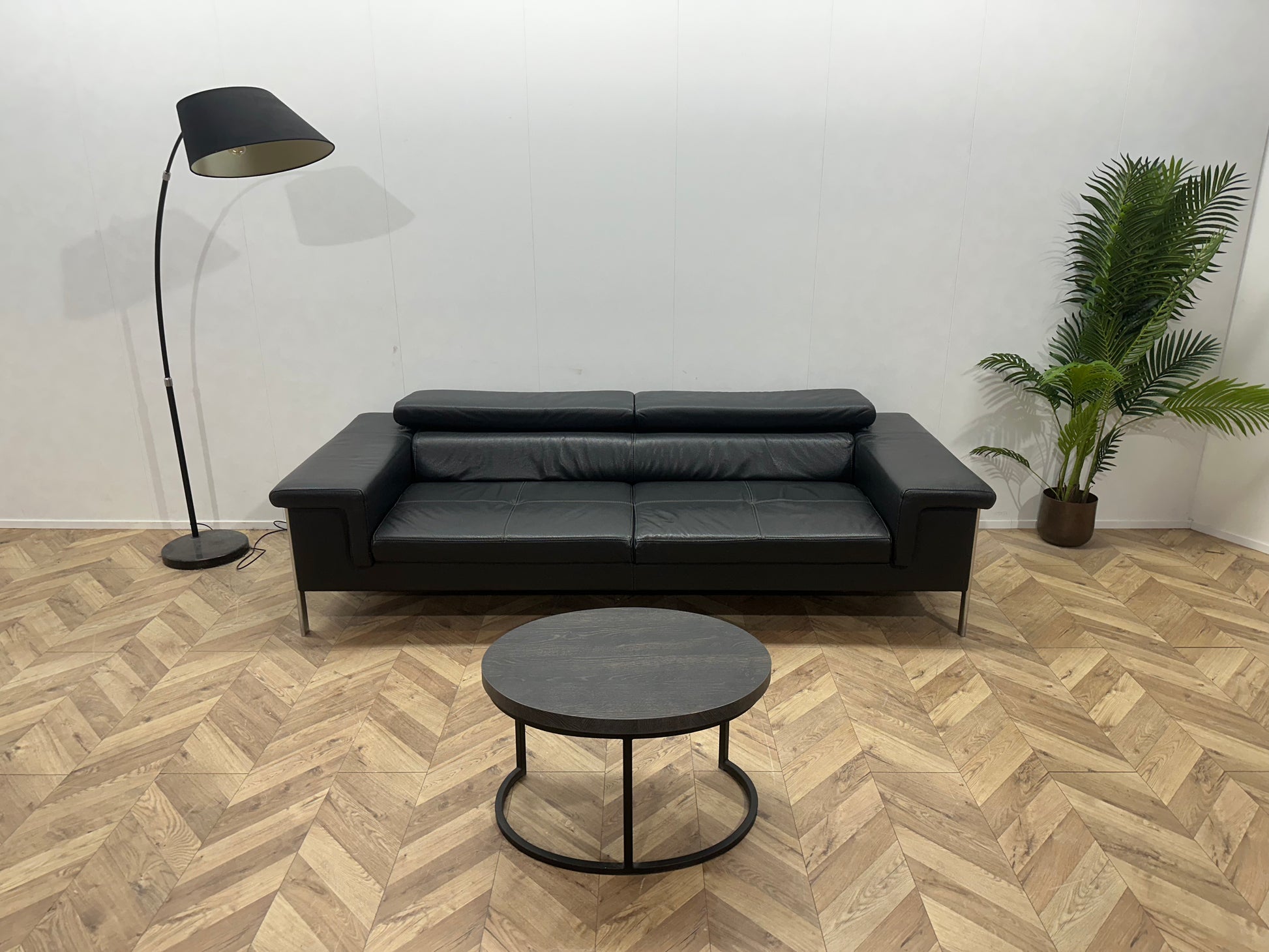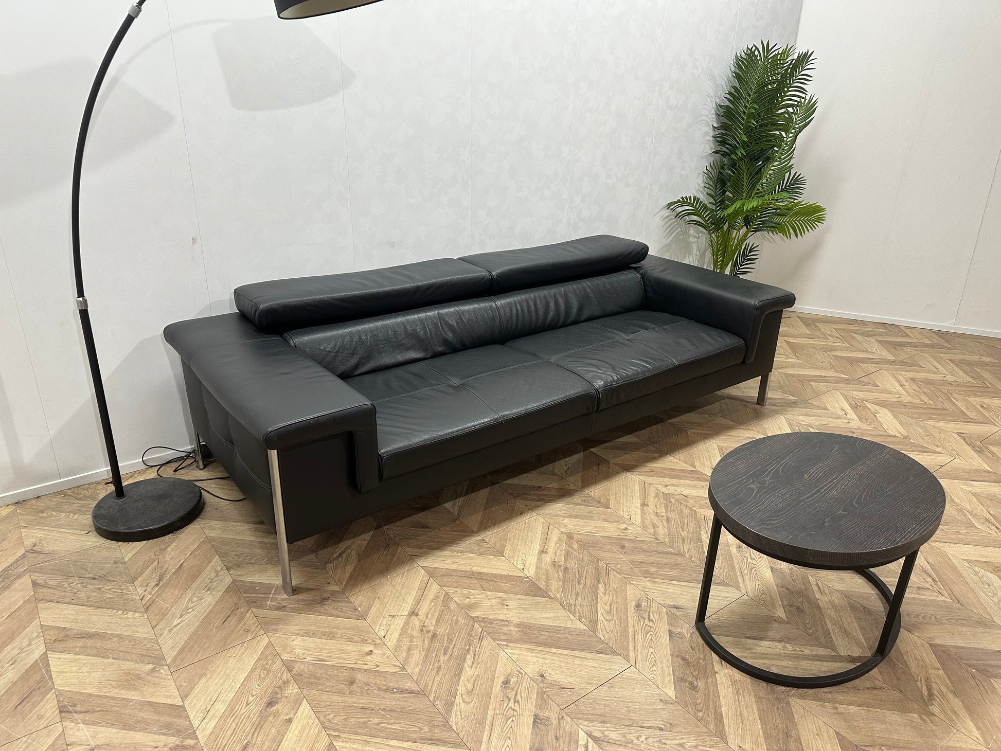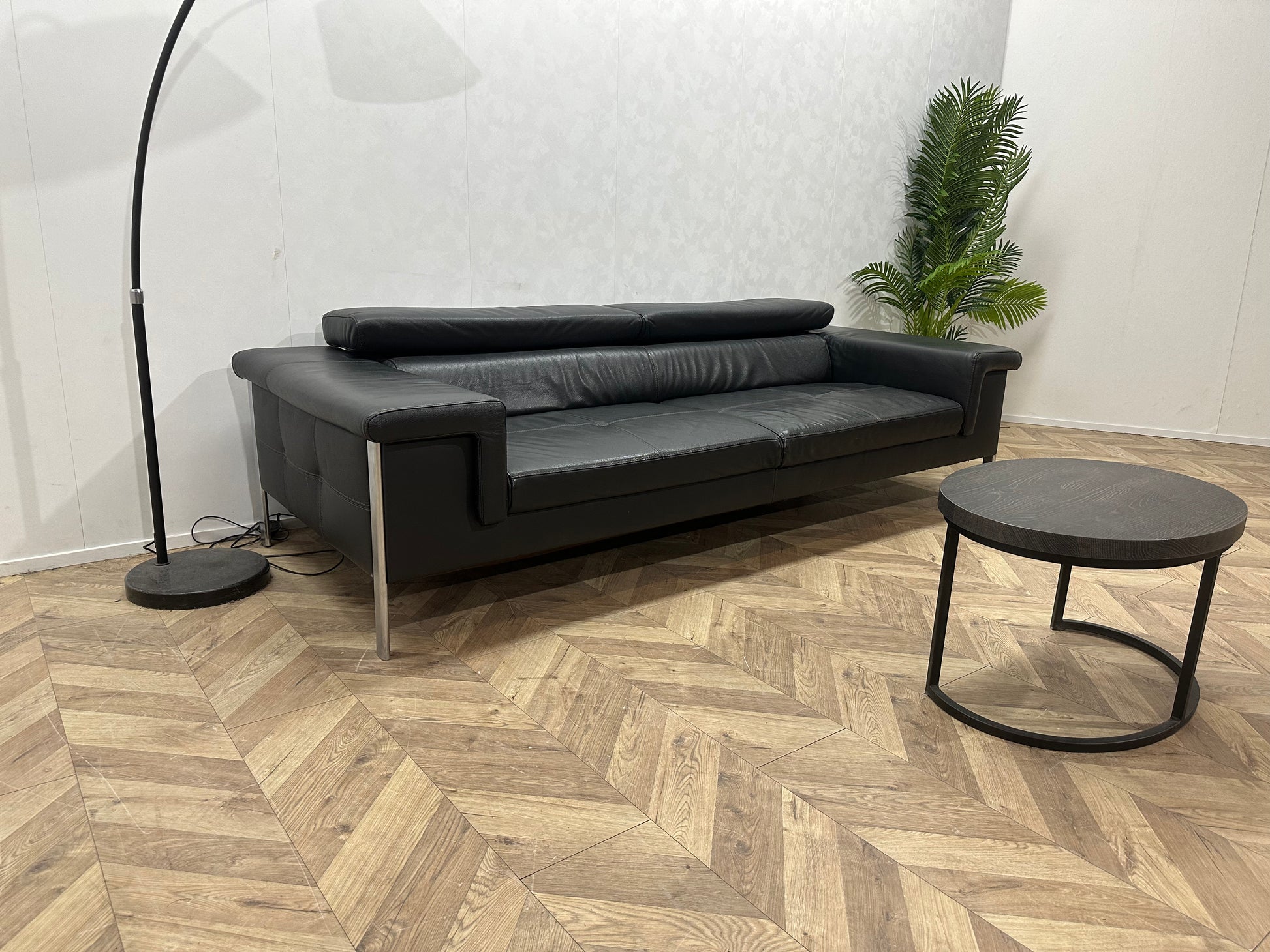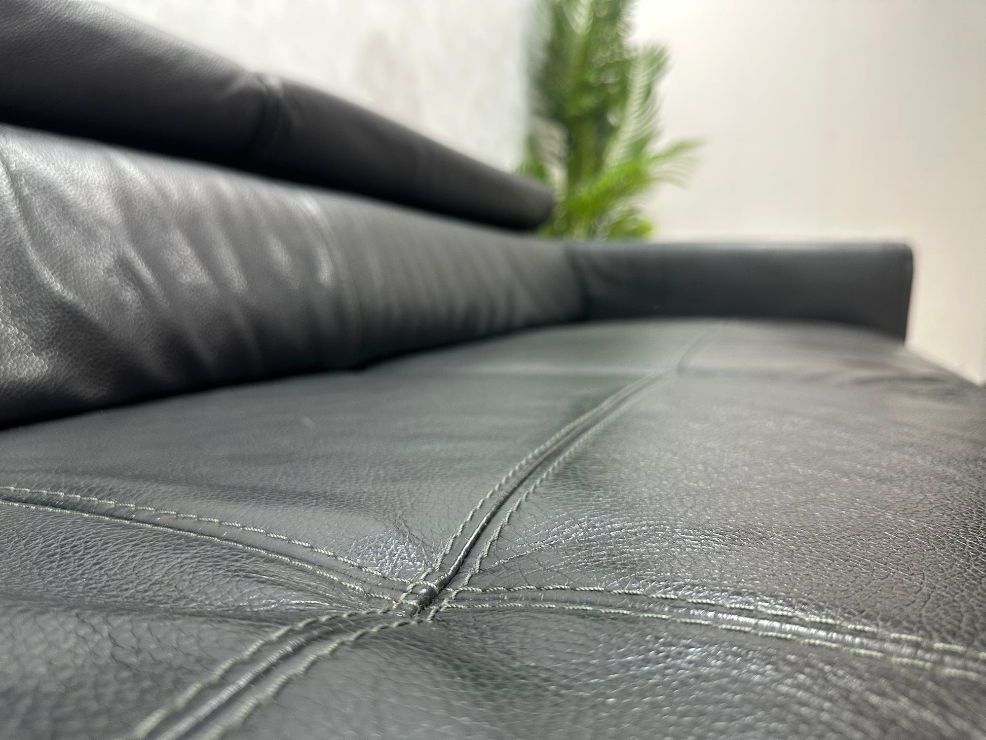 Zwarte Echt Lederen 2,5-zits Bank ~ Verstelbare Hoofdsteunen
