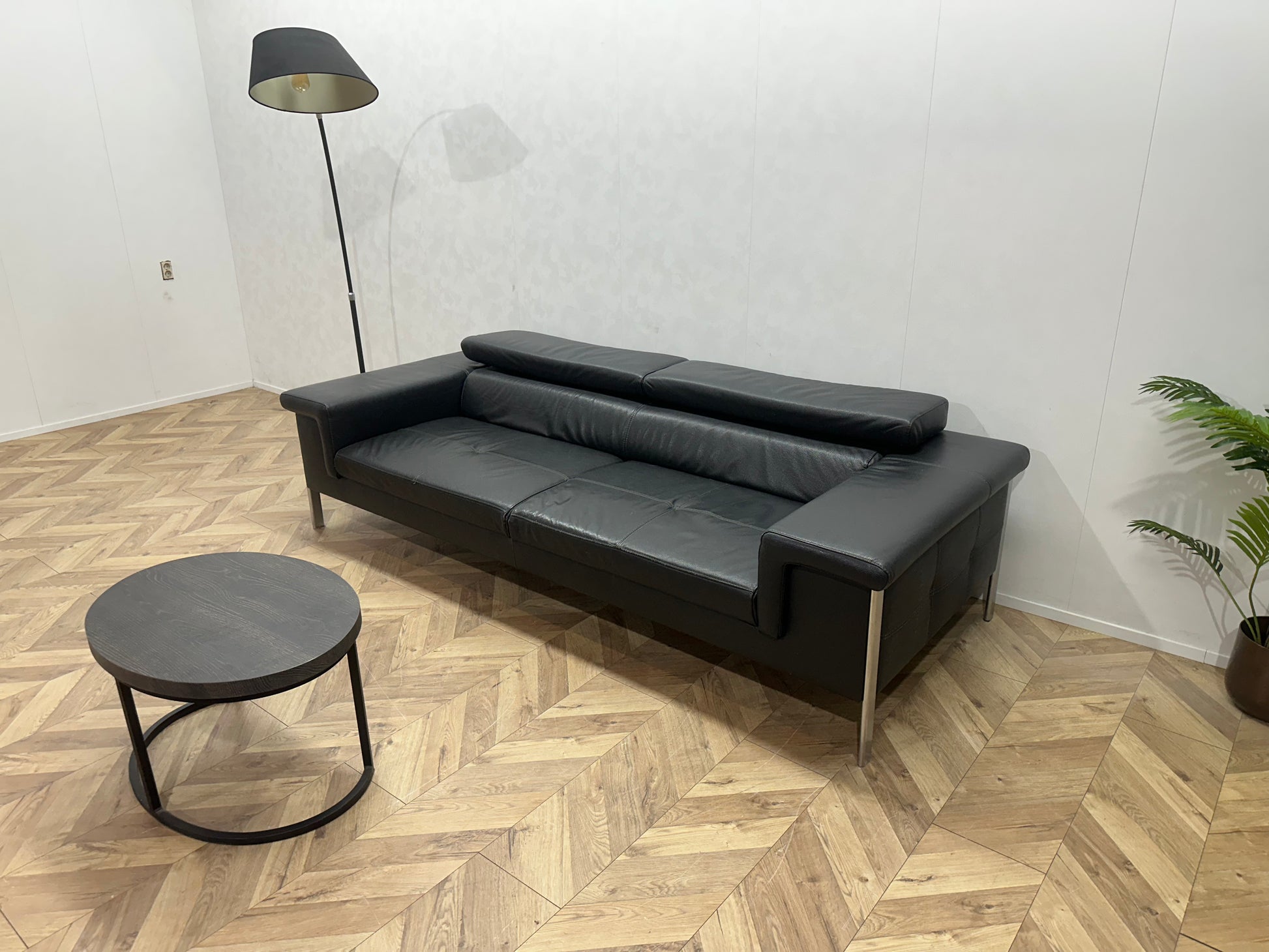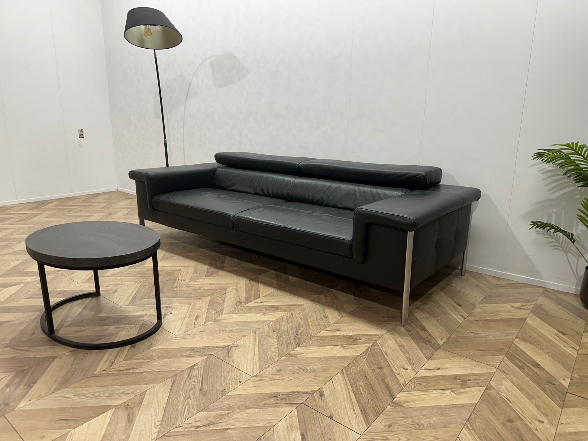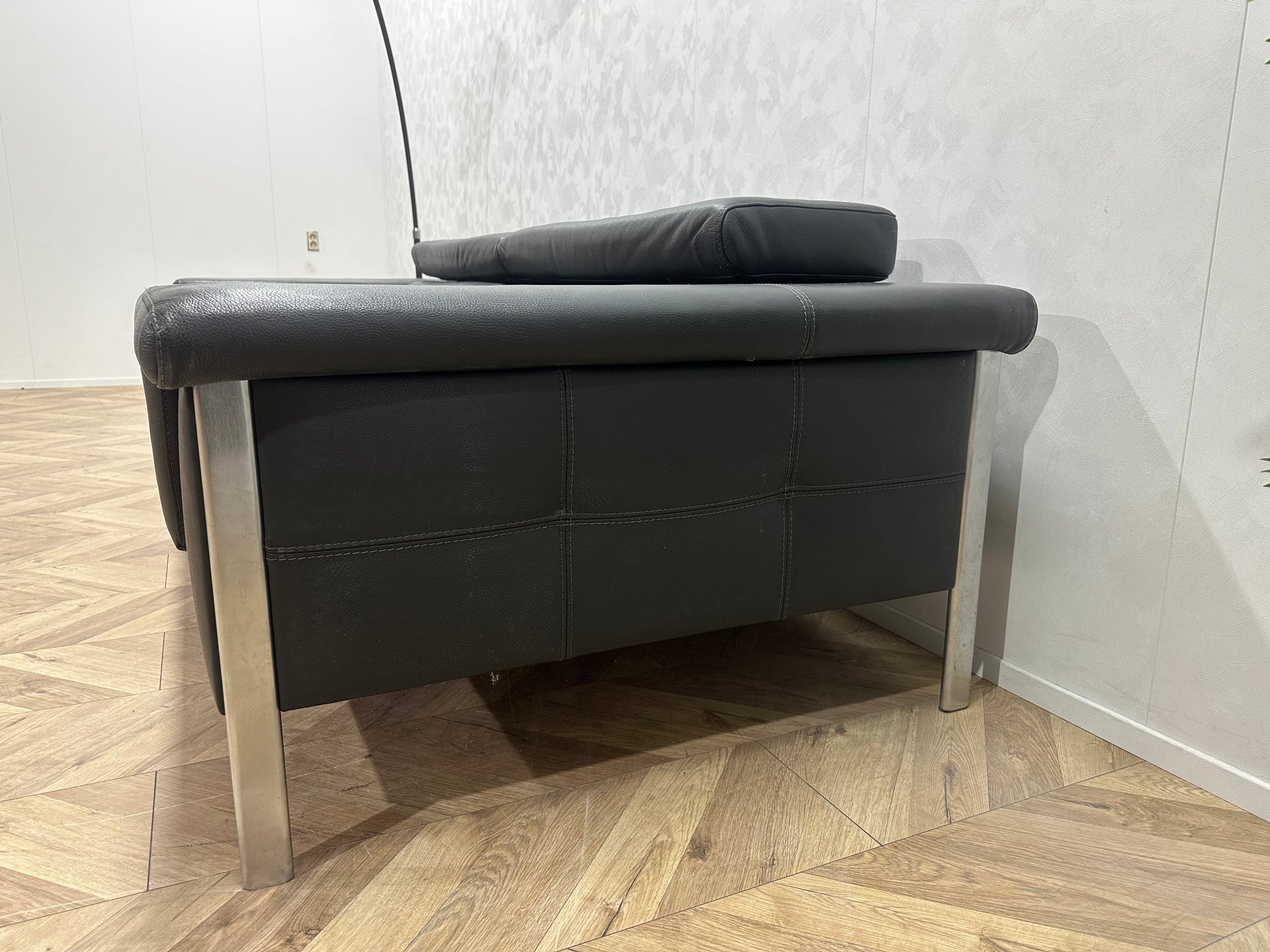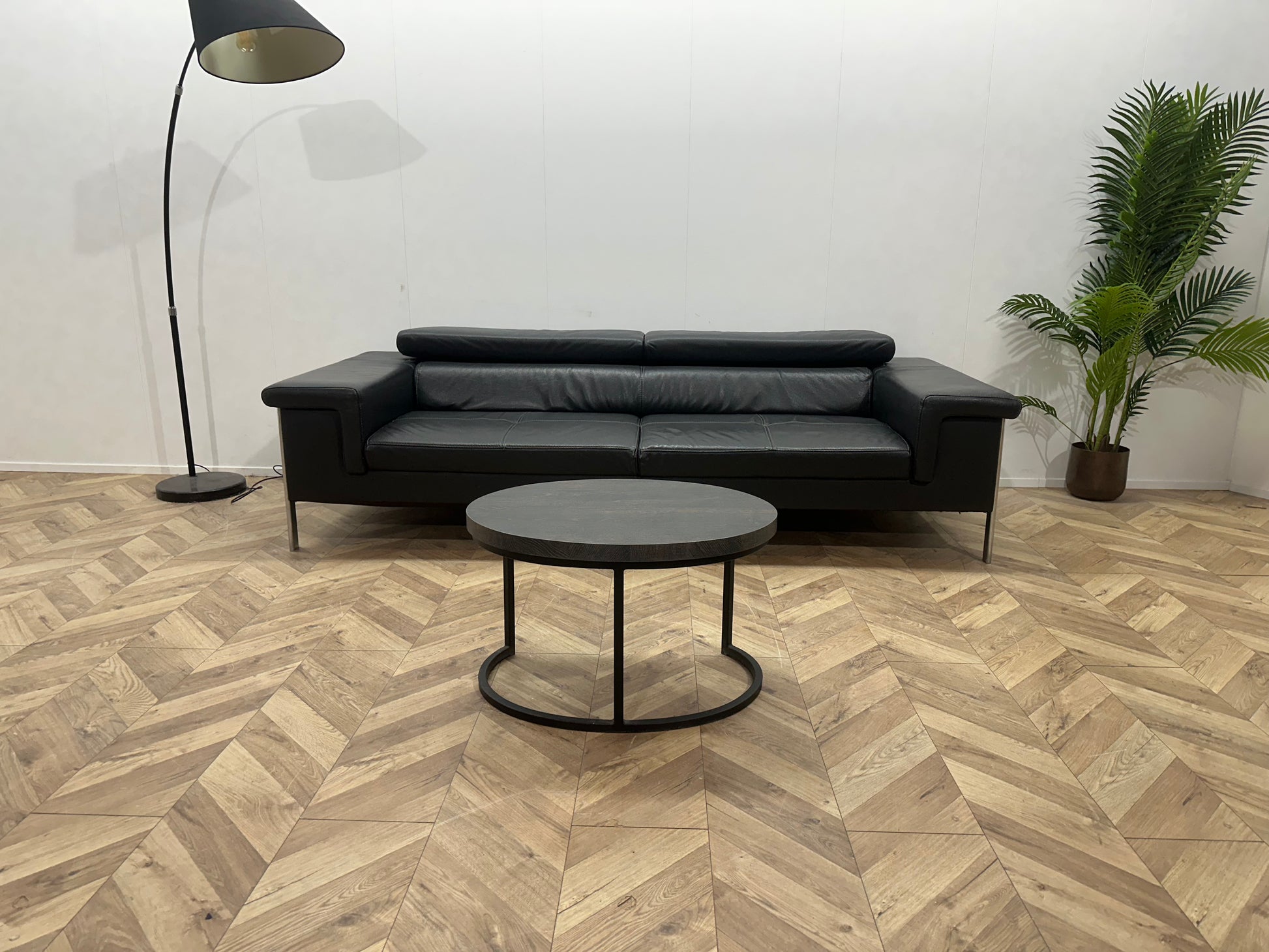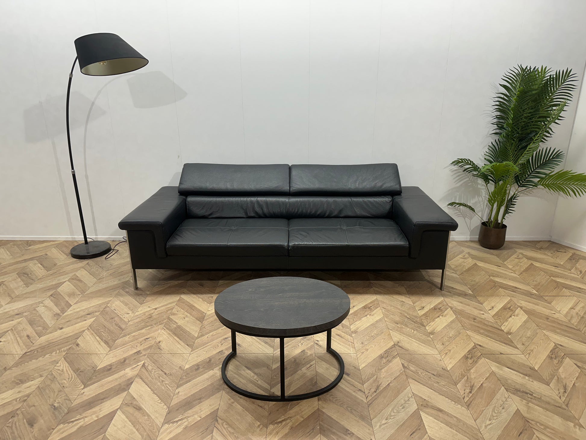Zwarte Echt Lederen 2,5-zits Bank ~ Verstelbare Hoofdsteunen