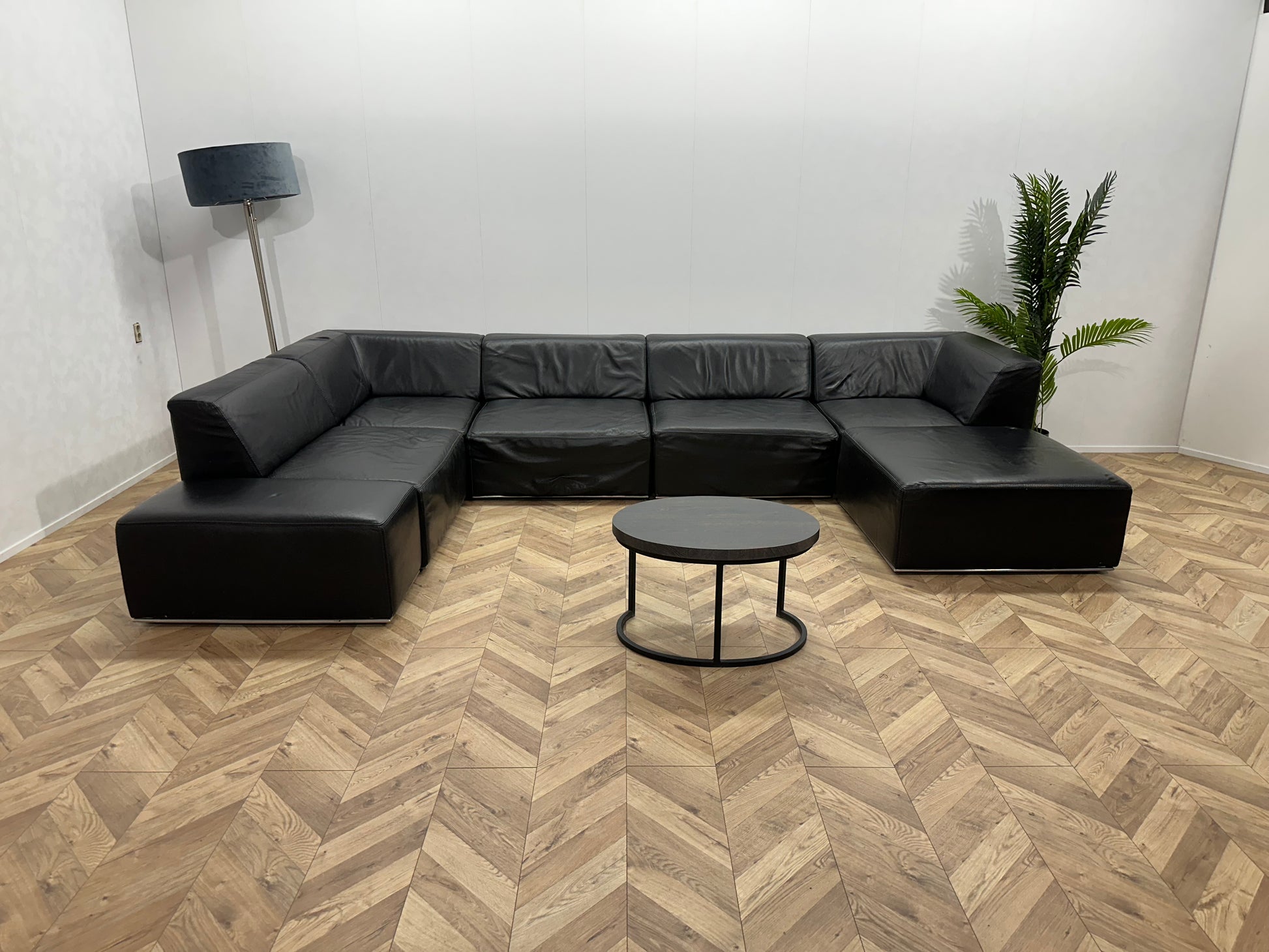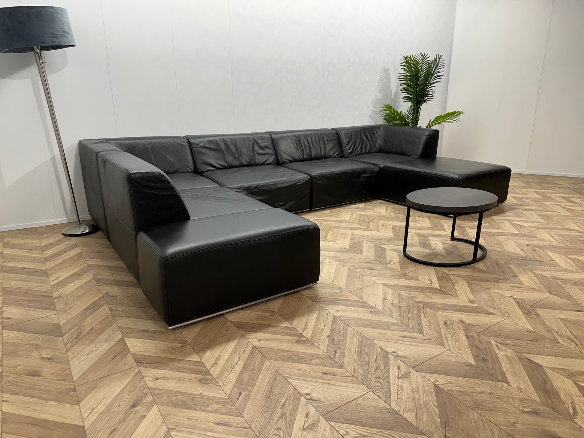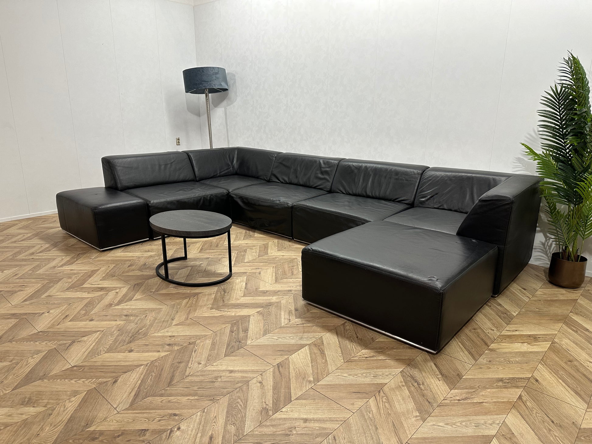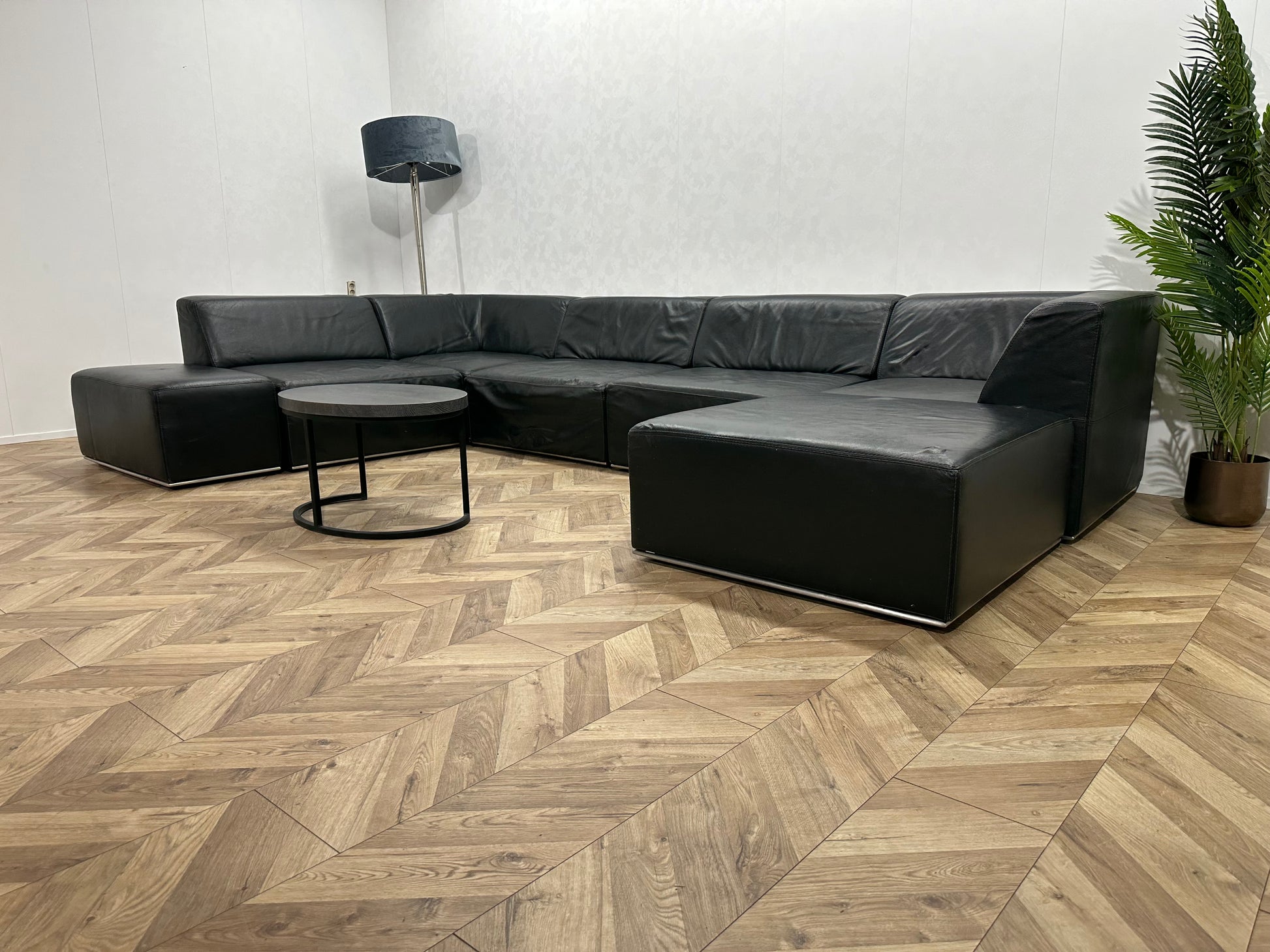 Zwarte Echt Lederen U Bank ~ Vaste Kussens