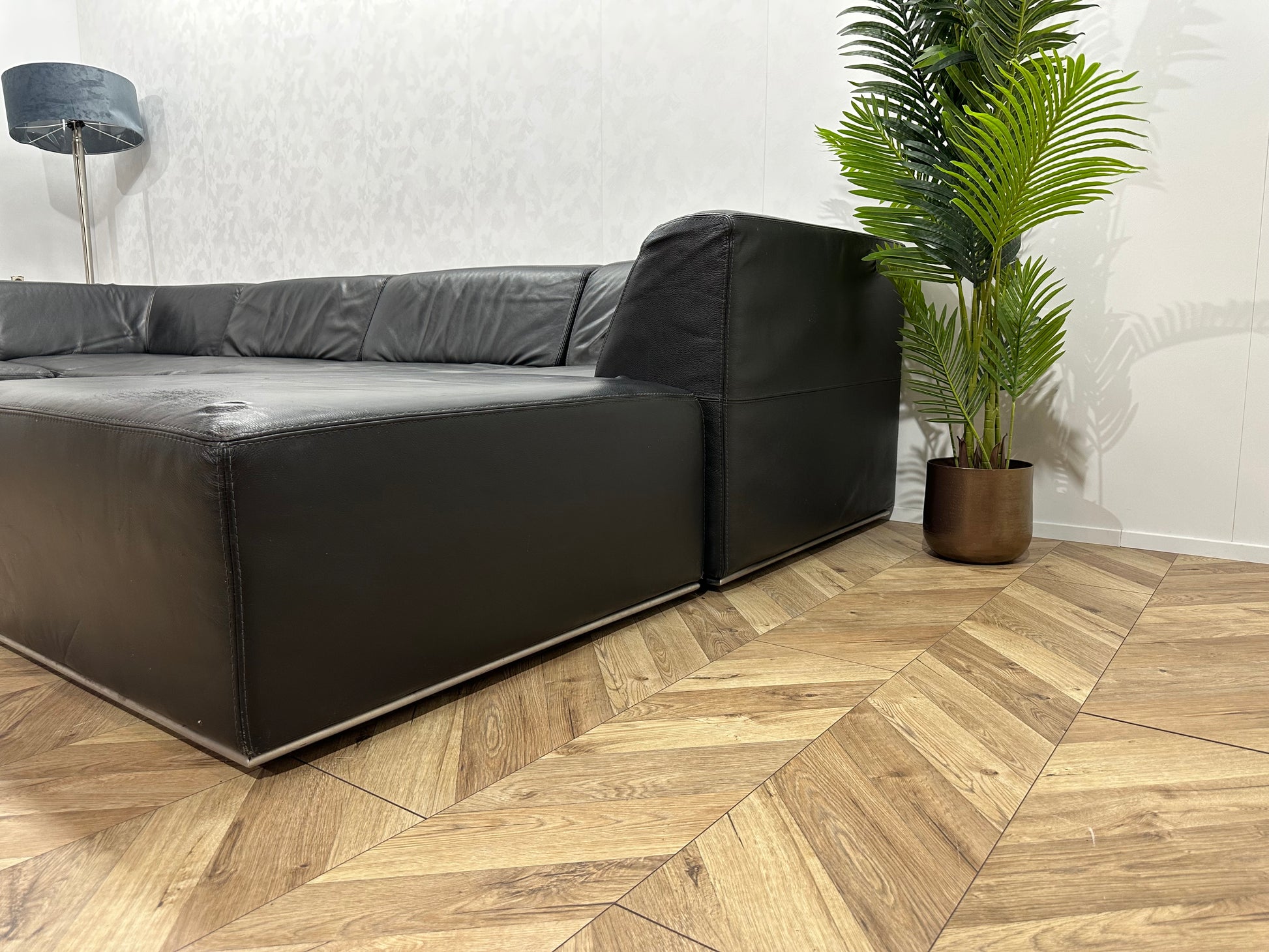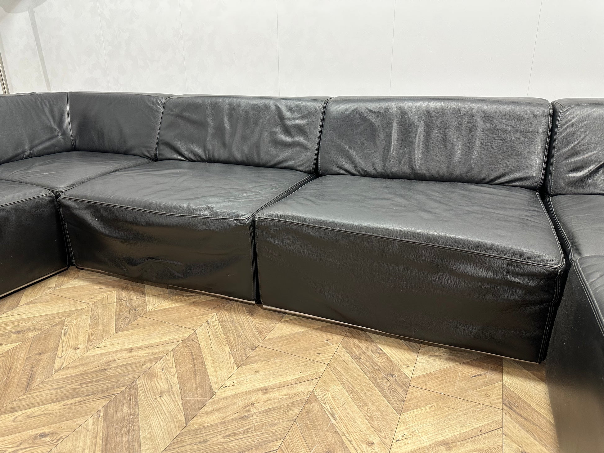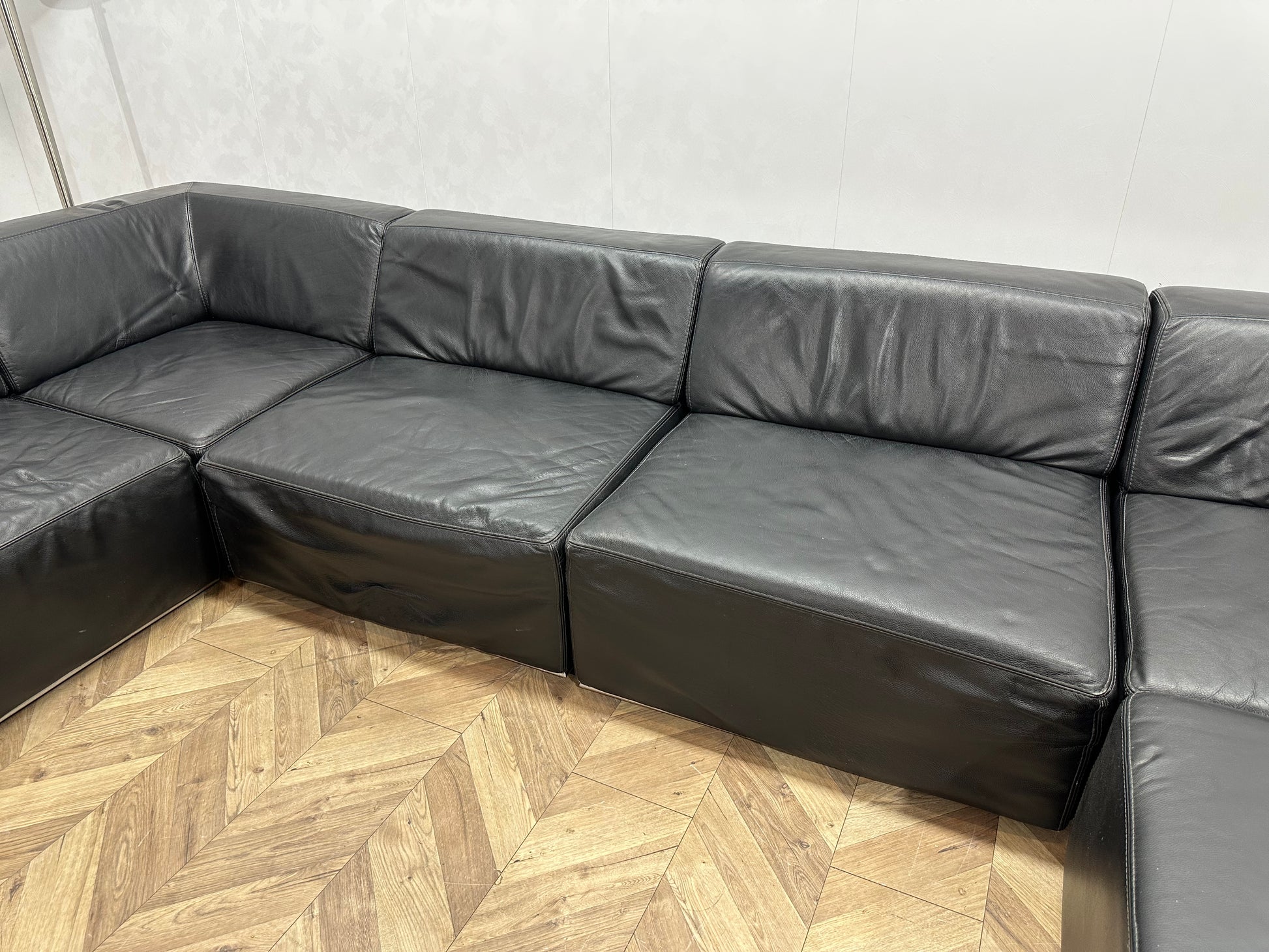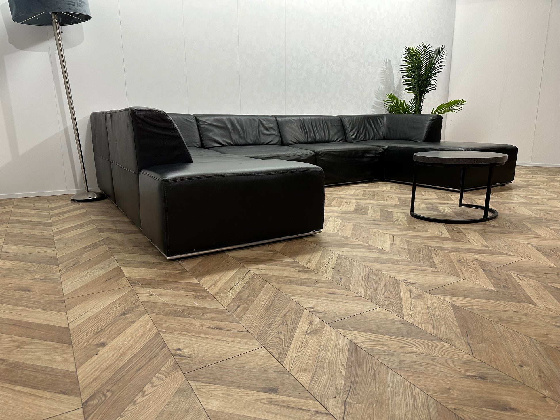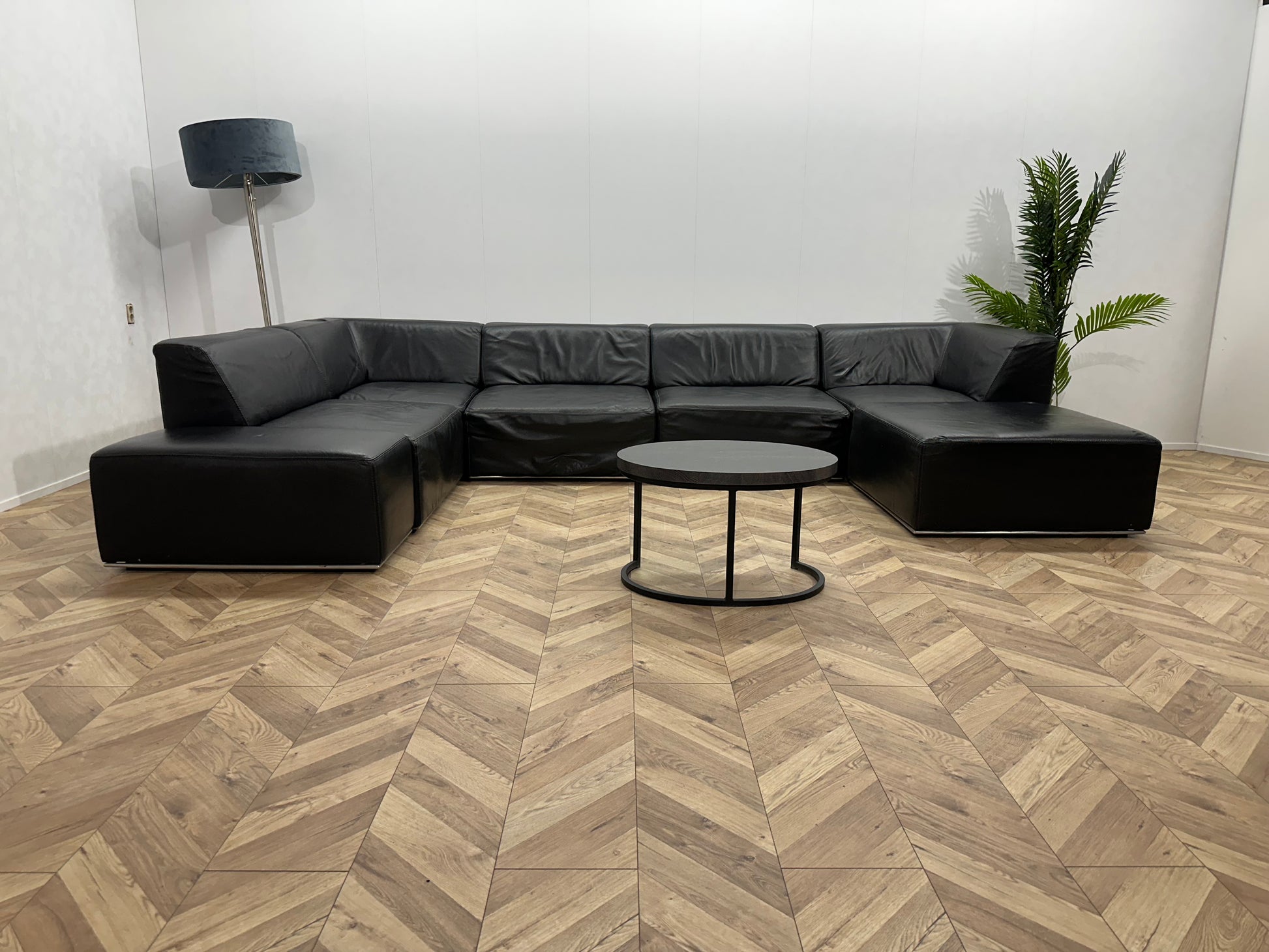 Zwarte Echt Lederen U Bank ~ Vaste Kussens