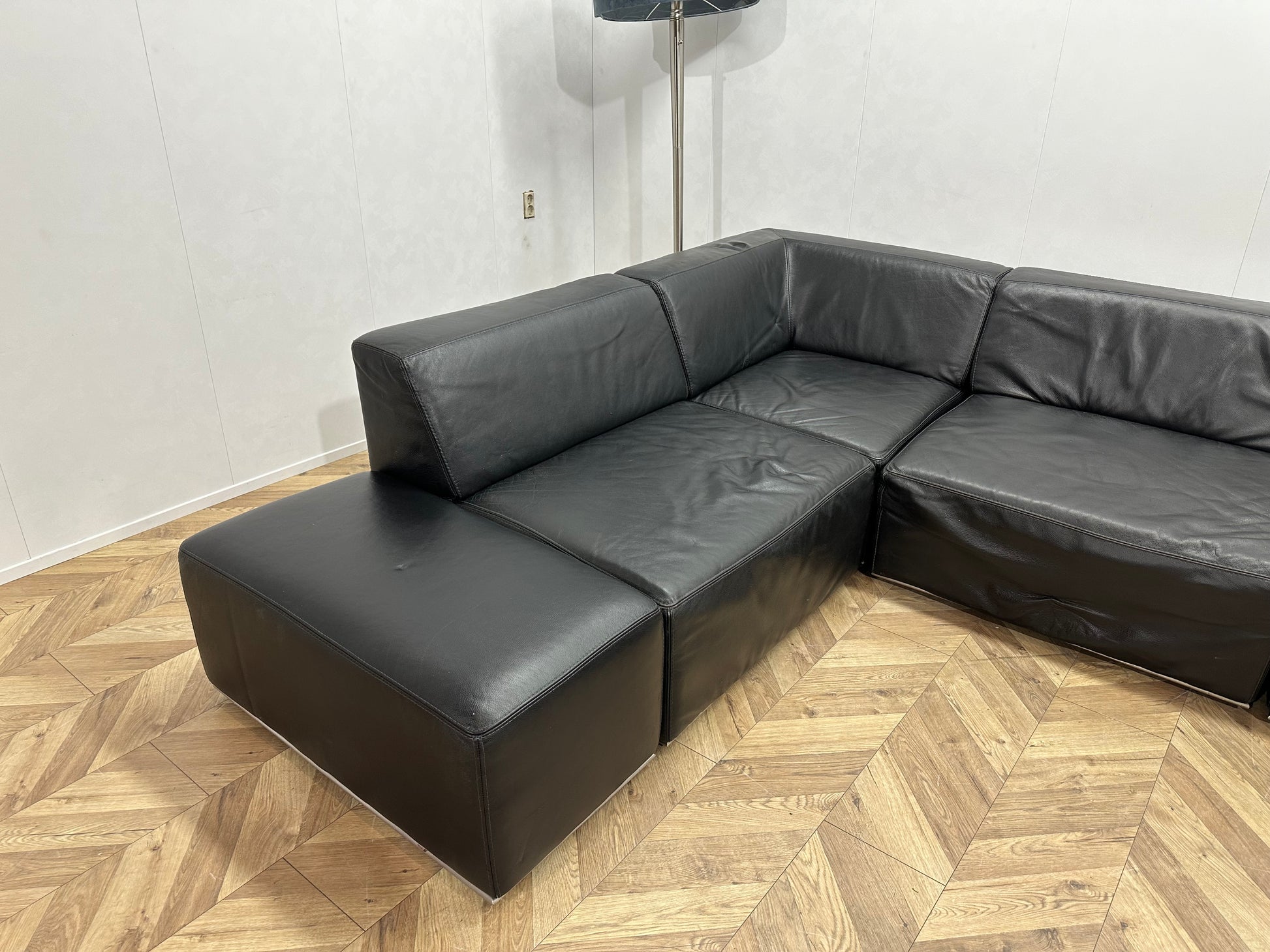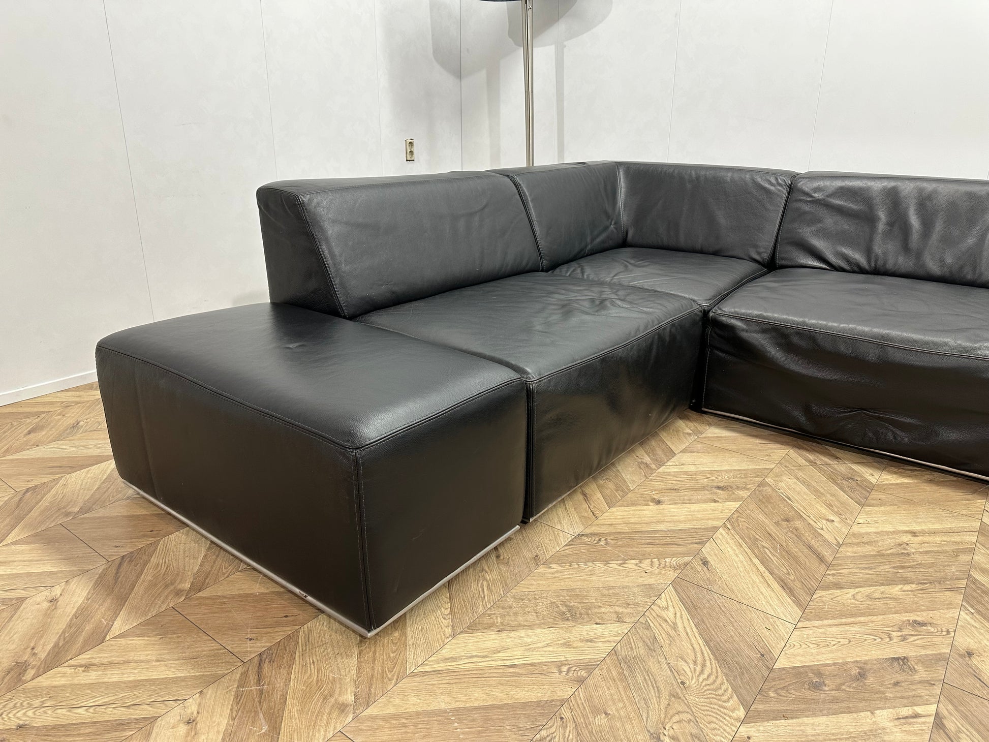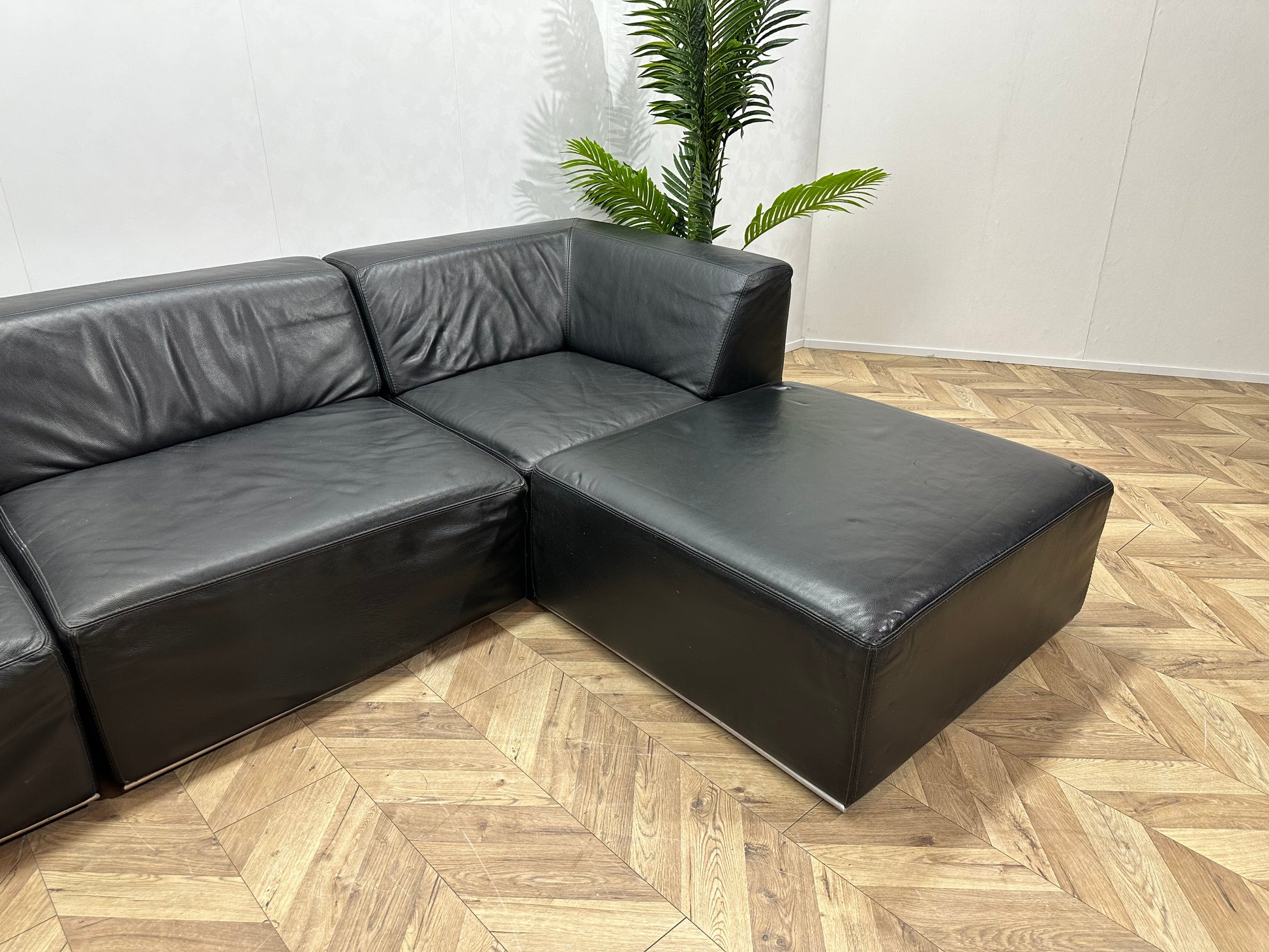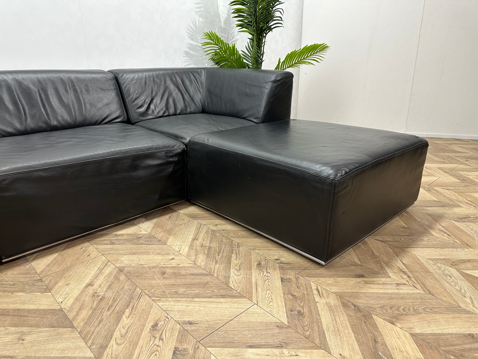 Zwarte Echt Lederen U Bank ~ Vaste Kussens