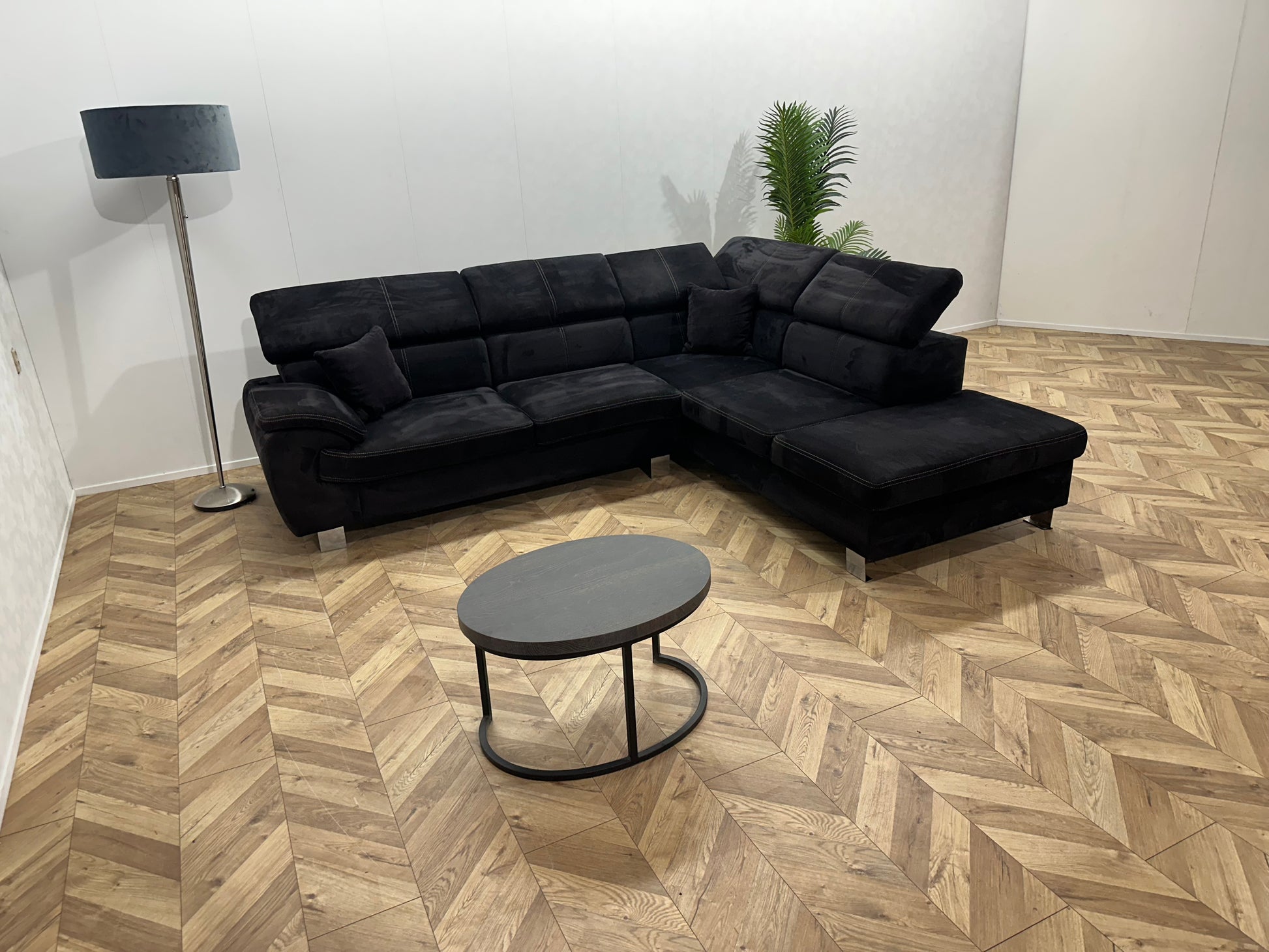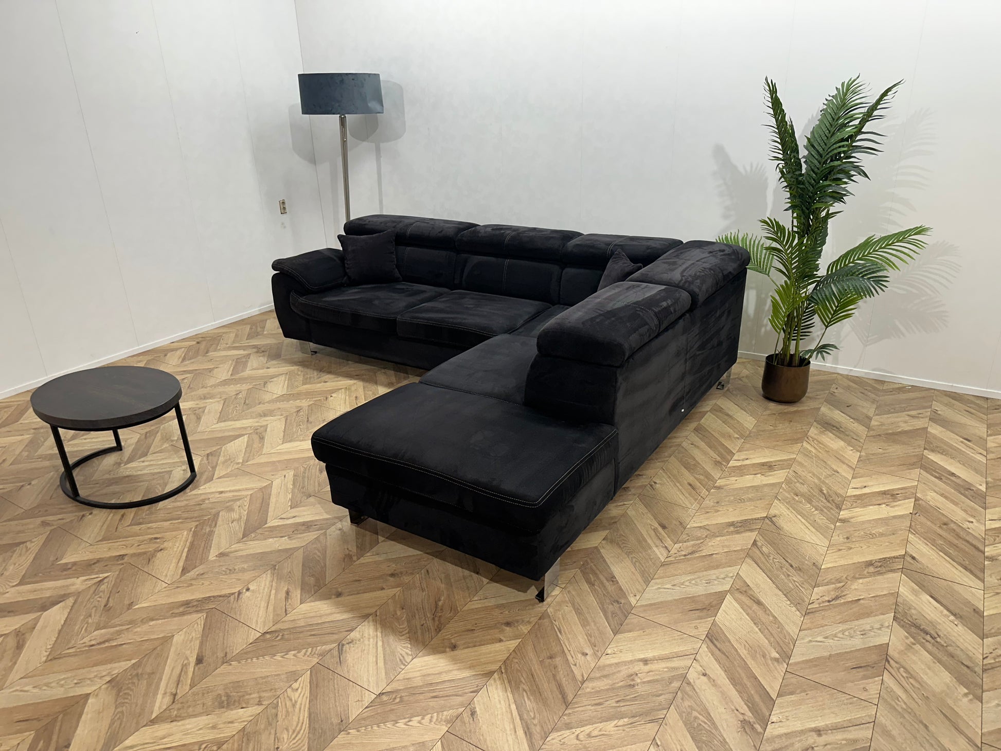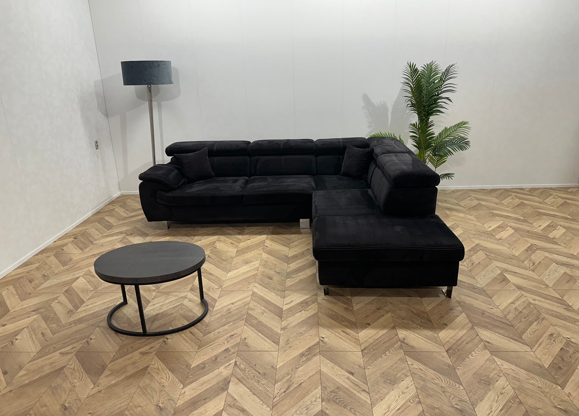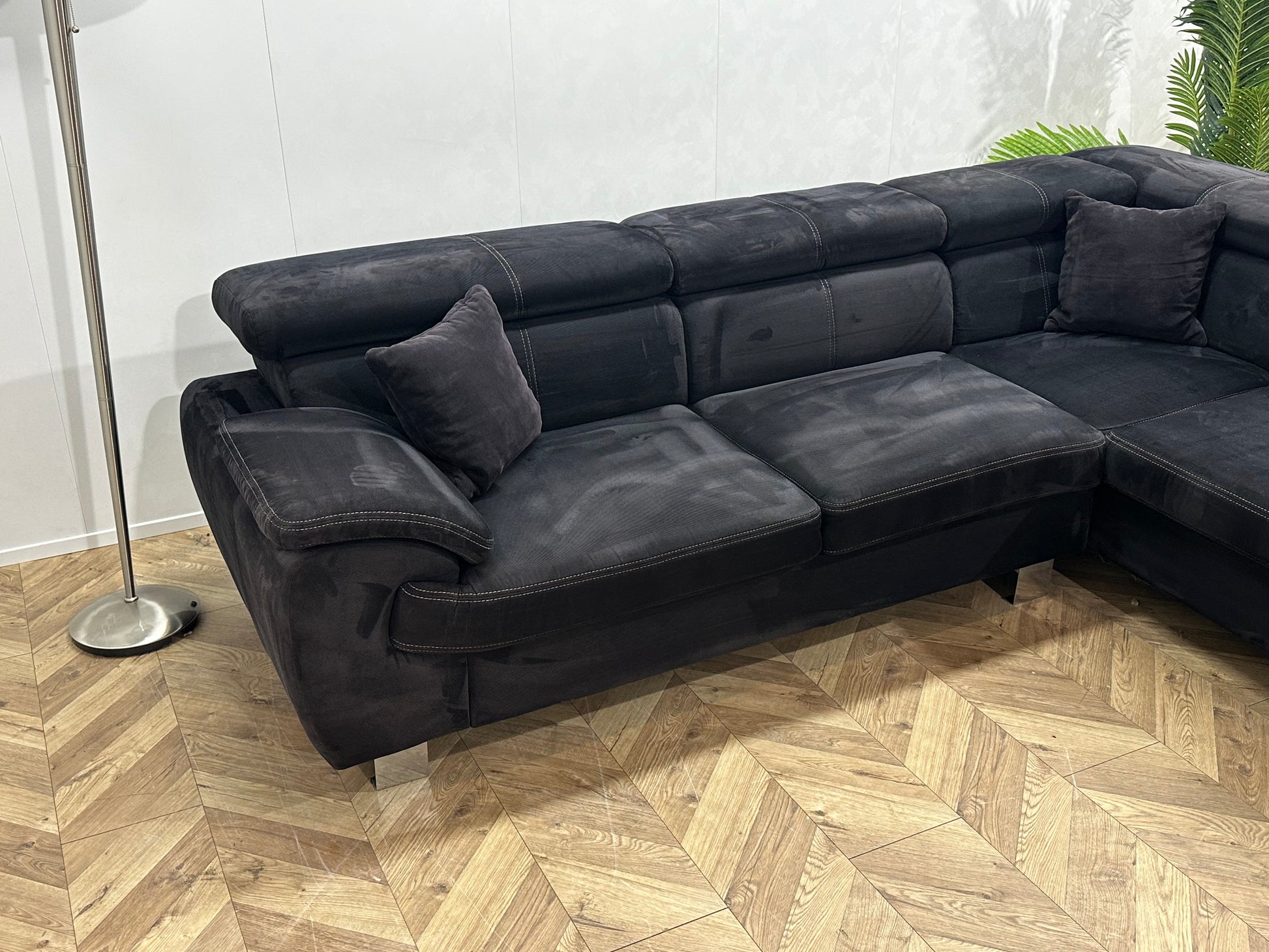 Zwarte Suède Stoffen Hoekbank ~ Verstelbare Hoofdsteunen