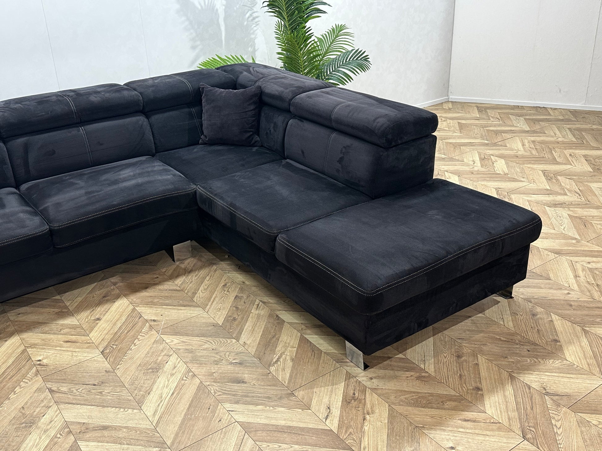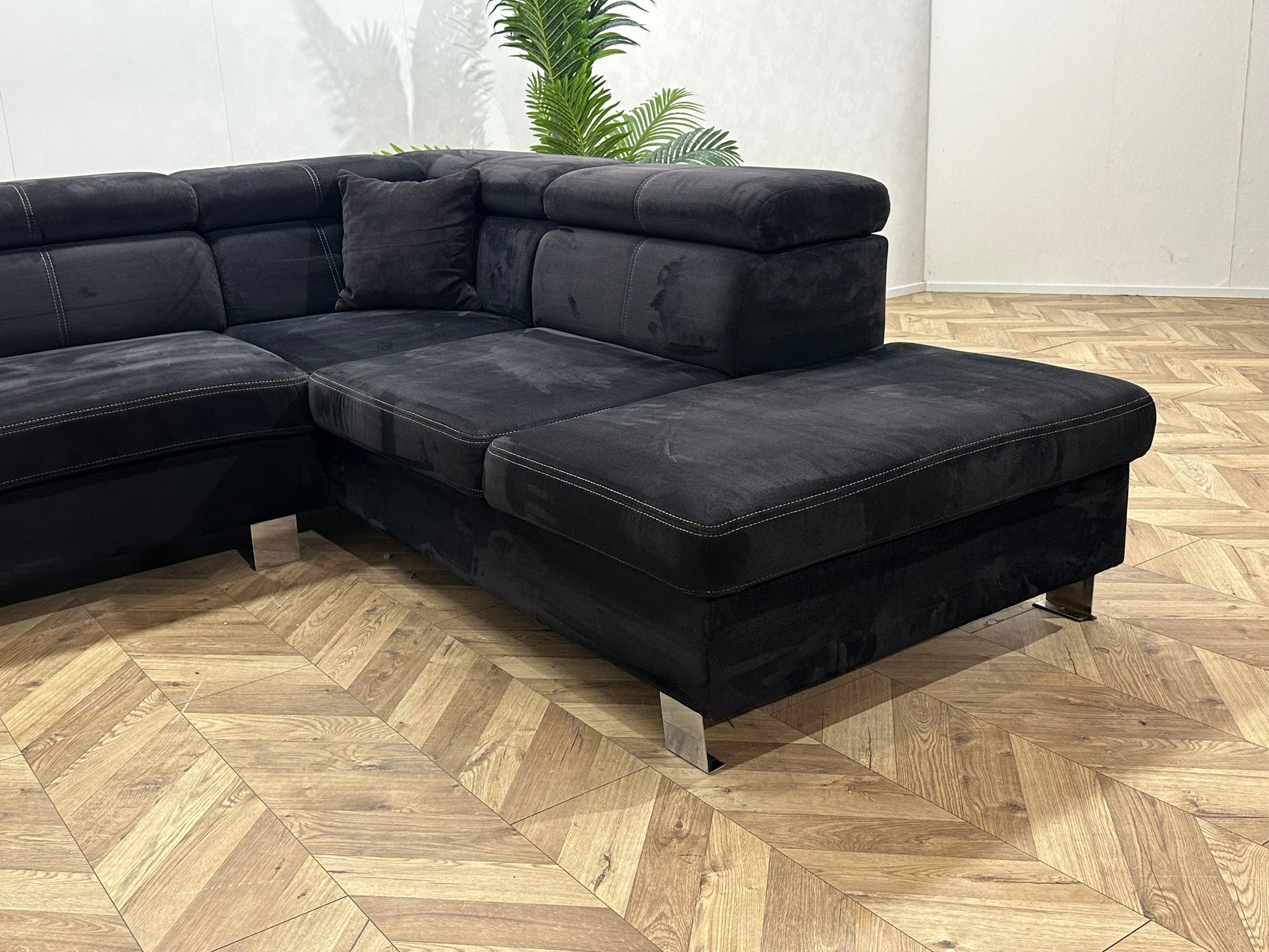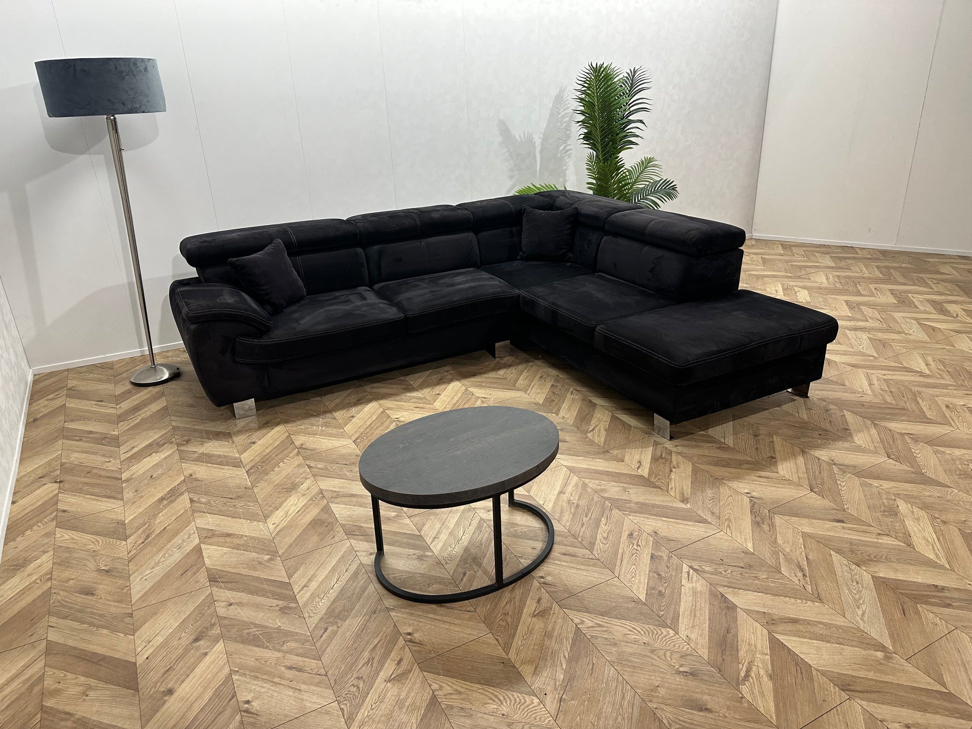Zwarte Suède Stoffen Hoekbank ~ Verstelbare Hoofdsteunen