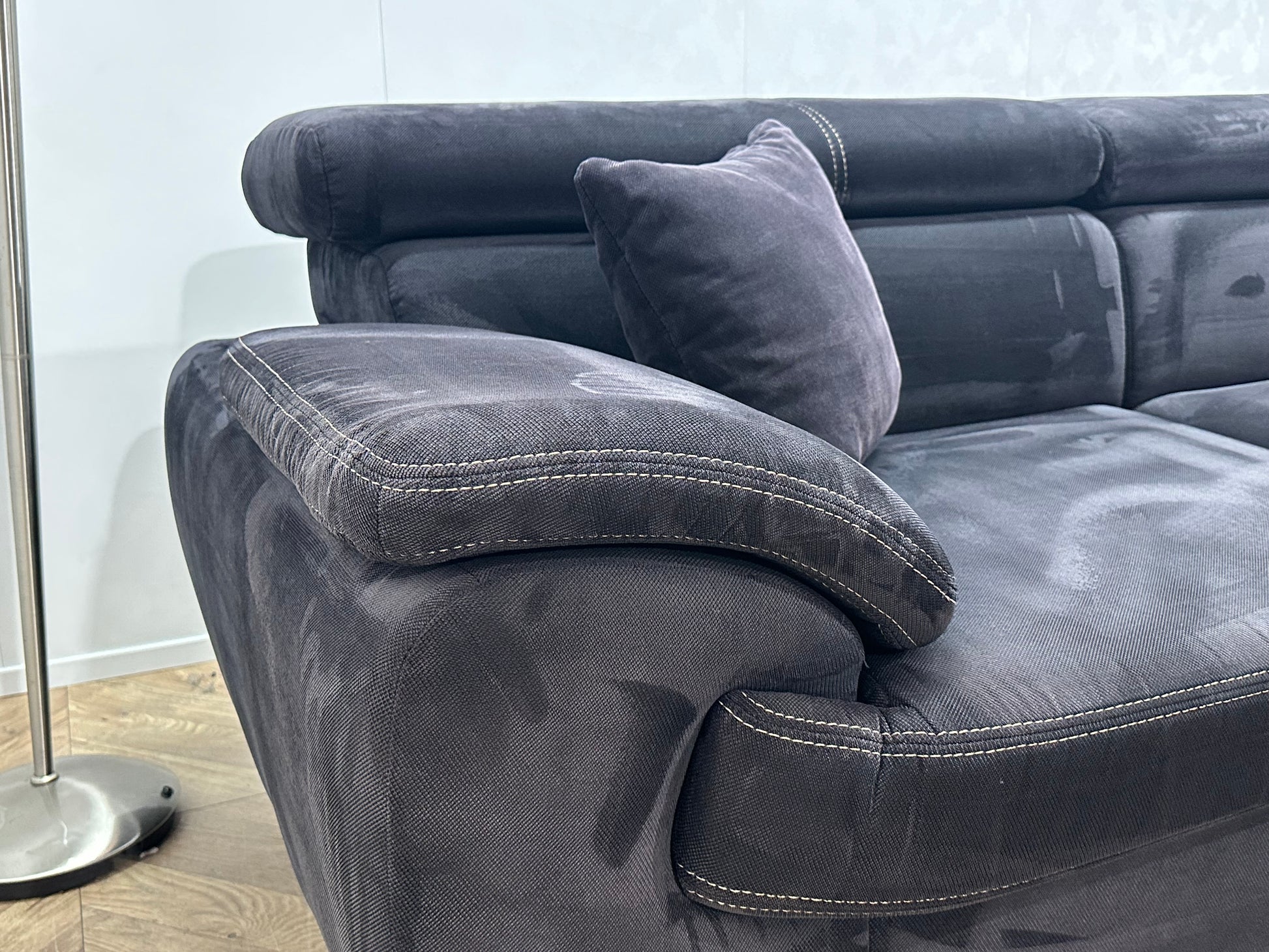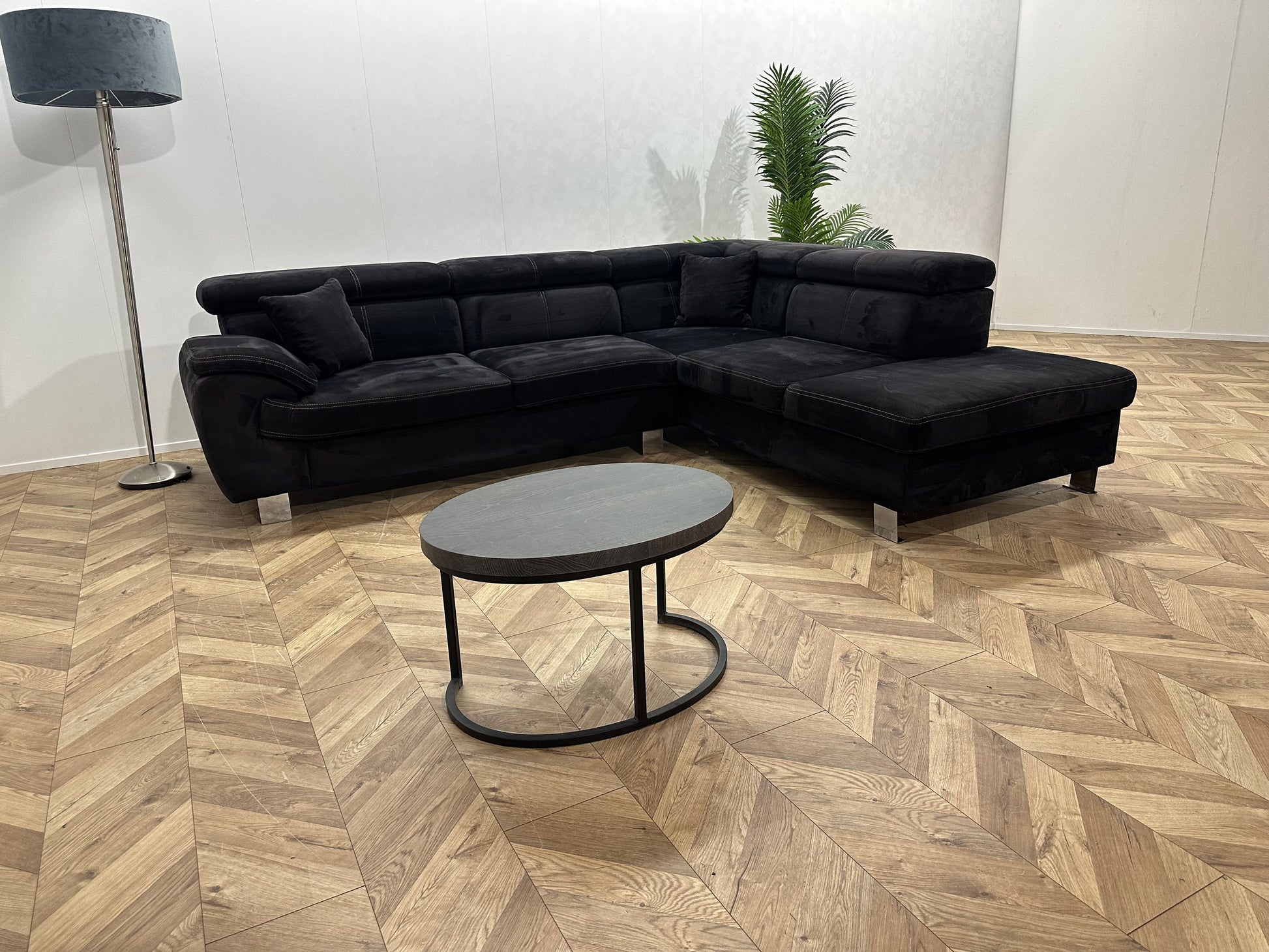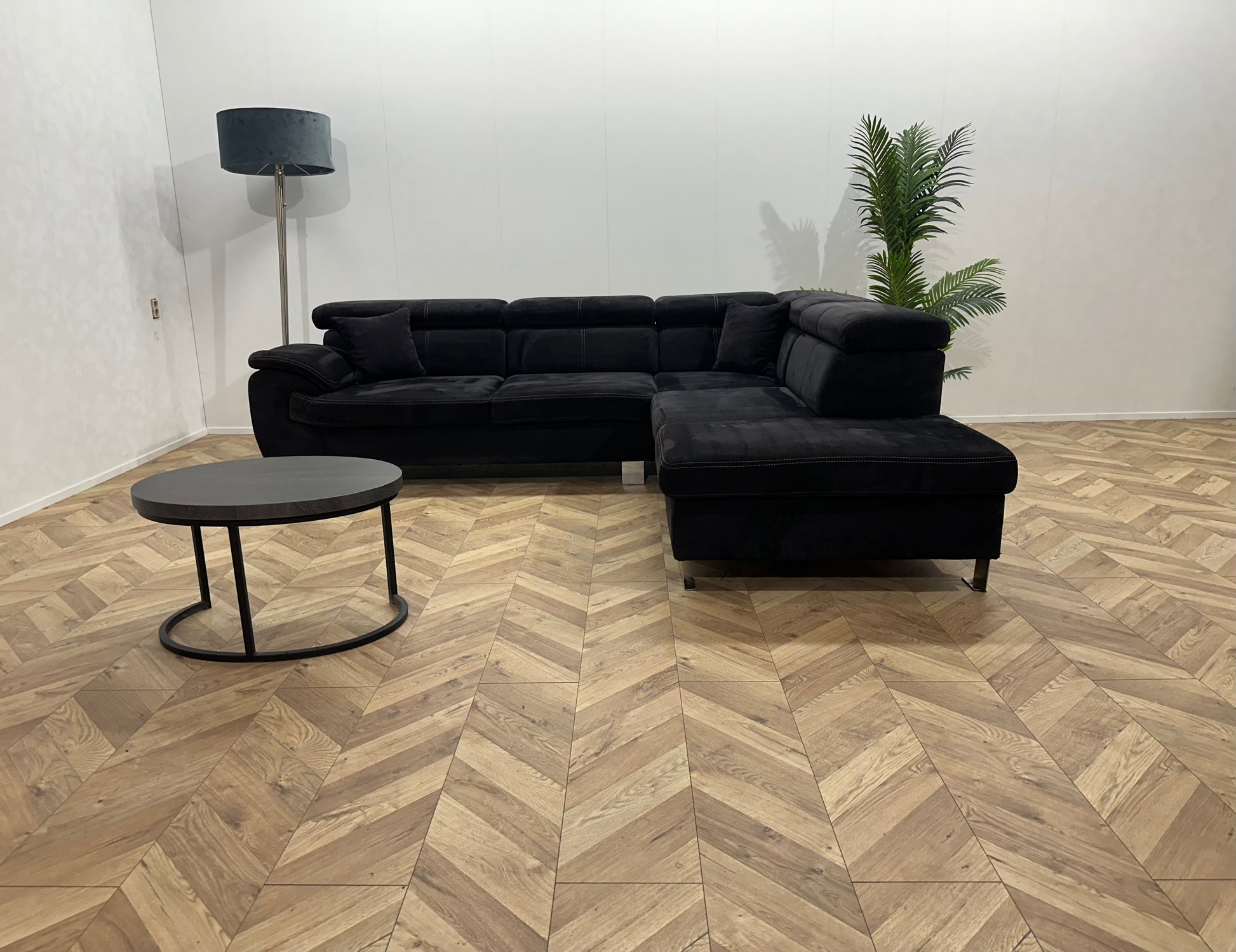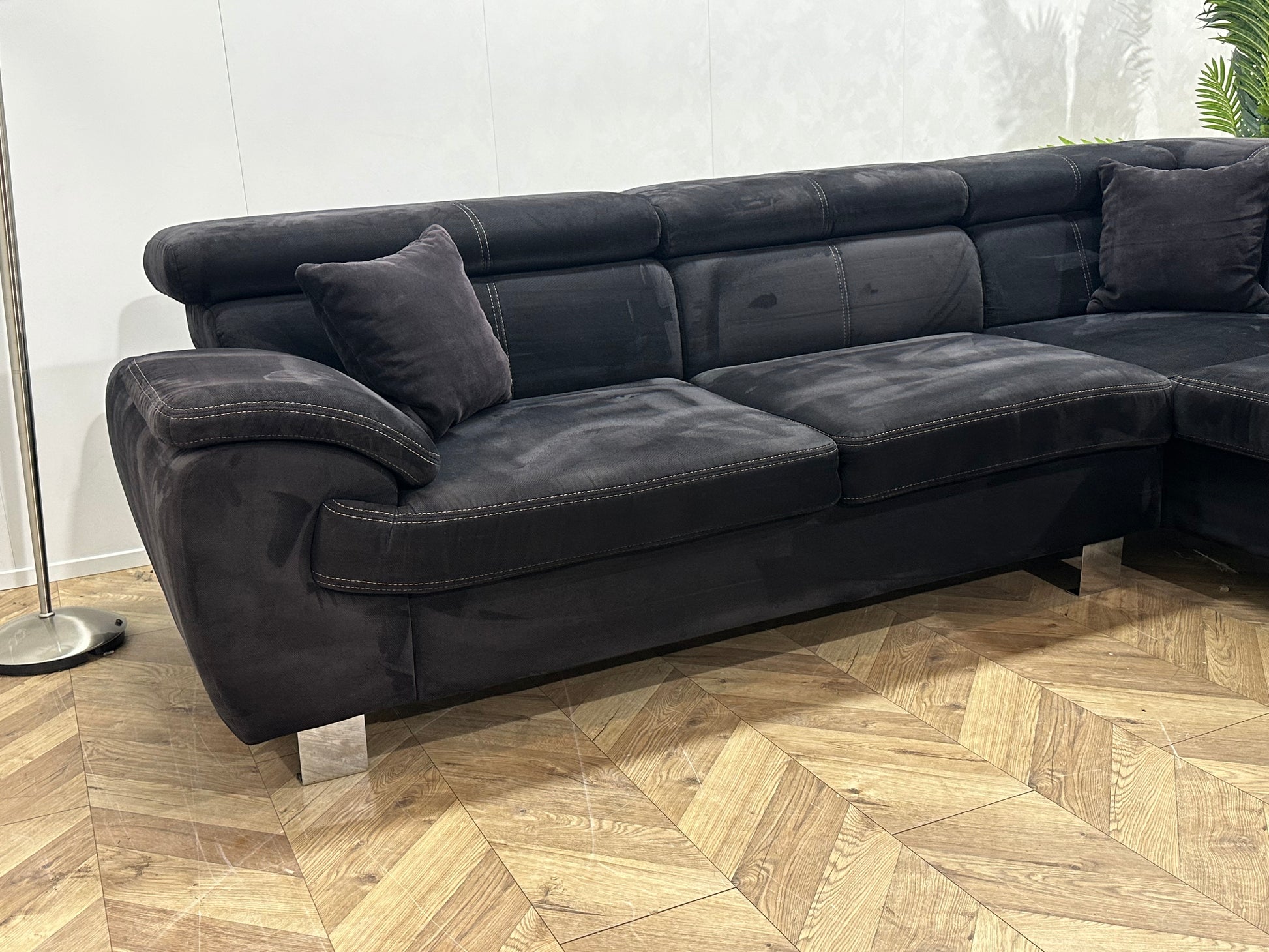 Zwarte Suède Stoffen Hoekbank ~ Verstelbare Hoofdsteunen