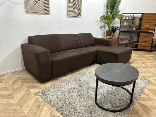 Bruine Ribstof Hoekbank ~ Vaste Kussens