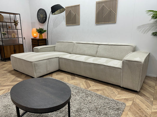 !Showroommodel! Crème Ribstof Hoekbank ~ Vaste Kussens