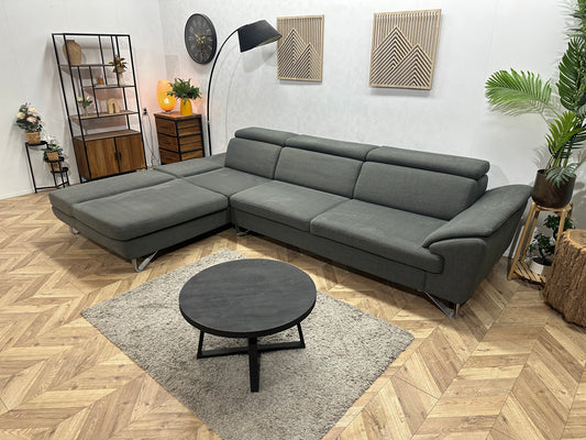 Xooon Antraciet Suède Stoffen Hoekbank ~ Verstelbare Arm/Hoofdsteunen