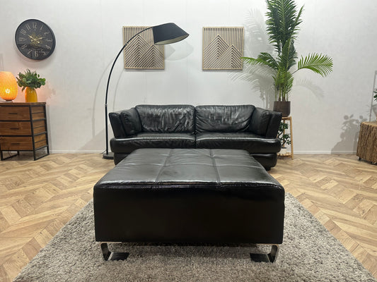 Chateau D’ax Zwarte Echt Lederen 2.5-Zits Bank Inc Hocker ~ Geïmpregneerd