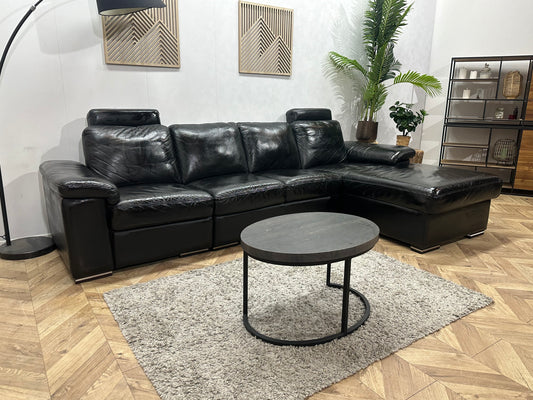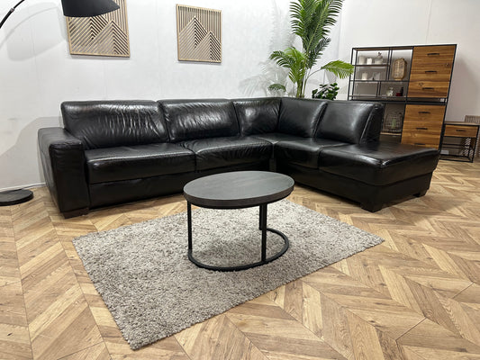 Zwarte Echt Lederen Hoekbank ~ Geïmpregneerd