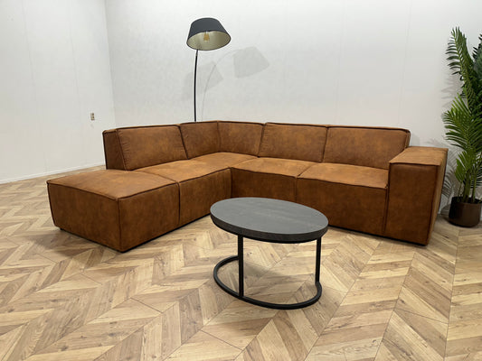!Showroom Model! Cognac Bruine Suède Lederen Hoekbank ~ Vaste Kussens