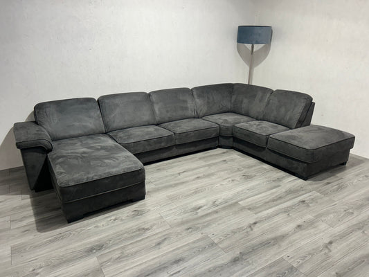 !Showroom Model! Antraciet Suède Lederen U Bank ~ Opbergruimte