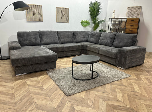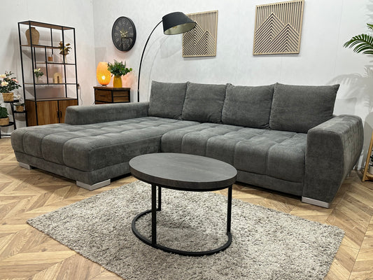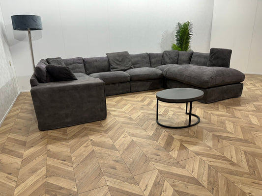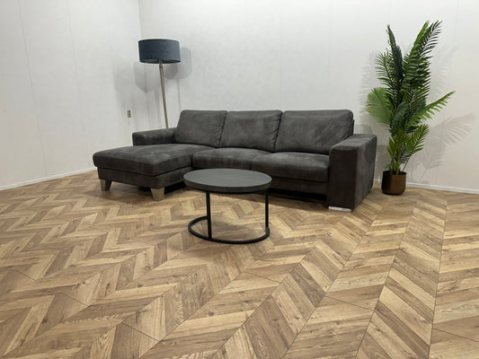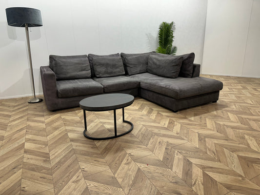 Antraciet Ruime Suede Stoffen Hoekbank ~ Nieuwstaat