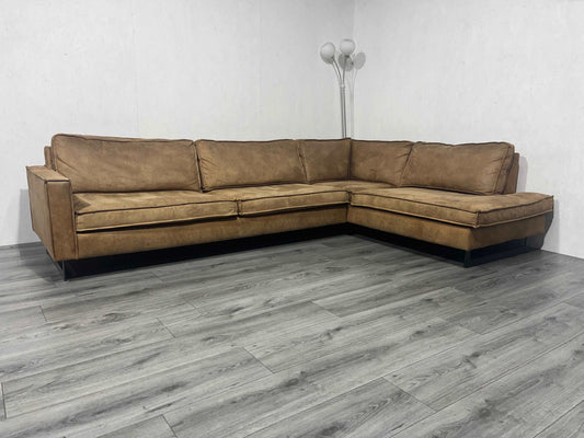Cognac Bruine Suède Stof Hoekbank ~ Nieuwstaat