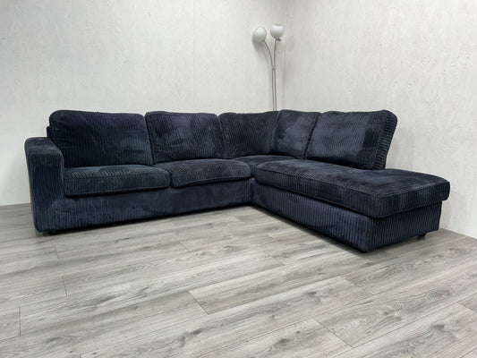 Donker Blauwe Ribstof Hoekbank ~ Nieuwstaat