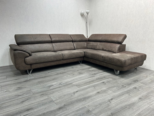 Bruine Hoekbank ~ Verstelbare Hoofdsteunen - Tweedehands Bank