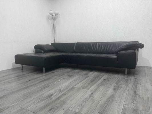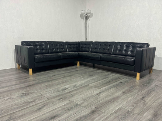 Zwarte Echt Lederen Hoekbank in Uitstekende Staat - Tweedehands Hoekbank!