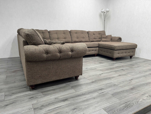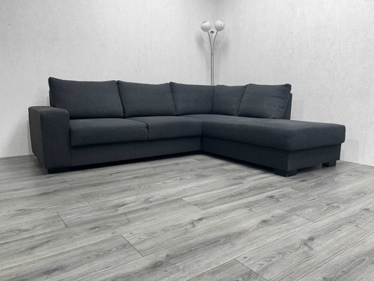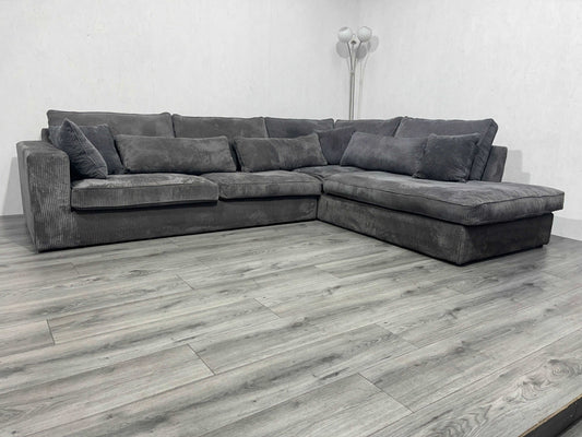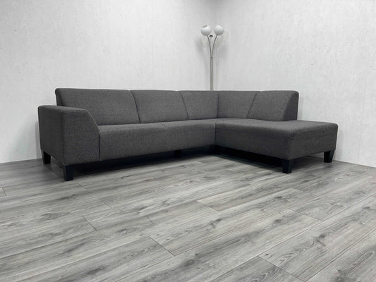 Verkocht Ruime Antraciet Ribstof Hoekbank in Nieuwstaat! - Tweedehands Hoekbank!