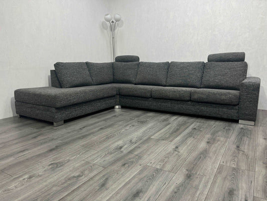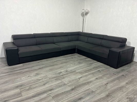 Grote Echt Lederen / Stoffen Antraciet Hoekbank ~ Verstelbare Hoofdsteunen ~ Hoek Beide Kanten Mogelijk!