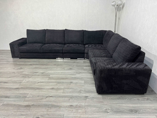 Zwarte Ribstof Grote Hoekbank ~ Hoek Beide Kanten Mogelijk!