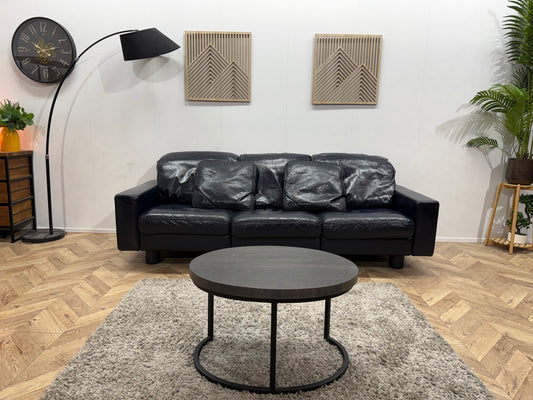 H&H Zwart Lederen Banken Set Incl Hocker ~ Vaste Kussens