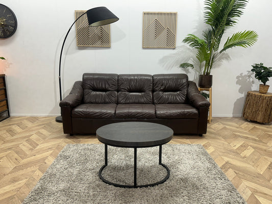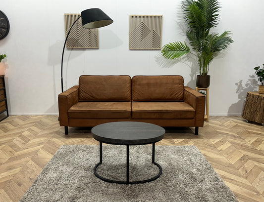 Bruine Echt Lederen 3-Zits Bank ~ Vaste Kussens