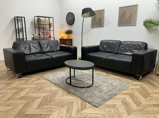 Zwart Echt Lederen Banken Set ~ Vaste Kussens