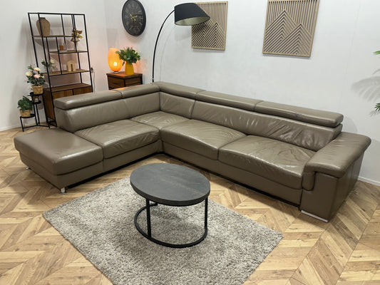 Licht Bruine Echt Lederen Hoekbank ~ Verstelbare Hoofdsteunen