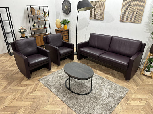 Leolux Paarse Echt Lederen Banken Set ~ Uitschuifbare Zittingen