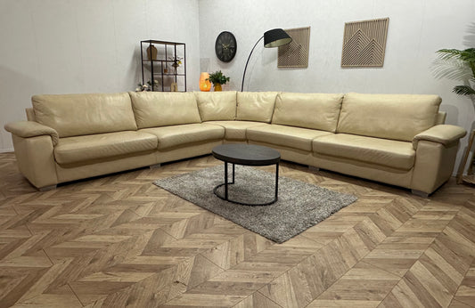 Crème Echt Lederen Hoekbank ~ Vaste Kussens