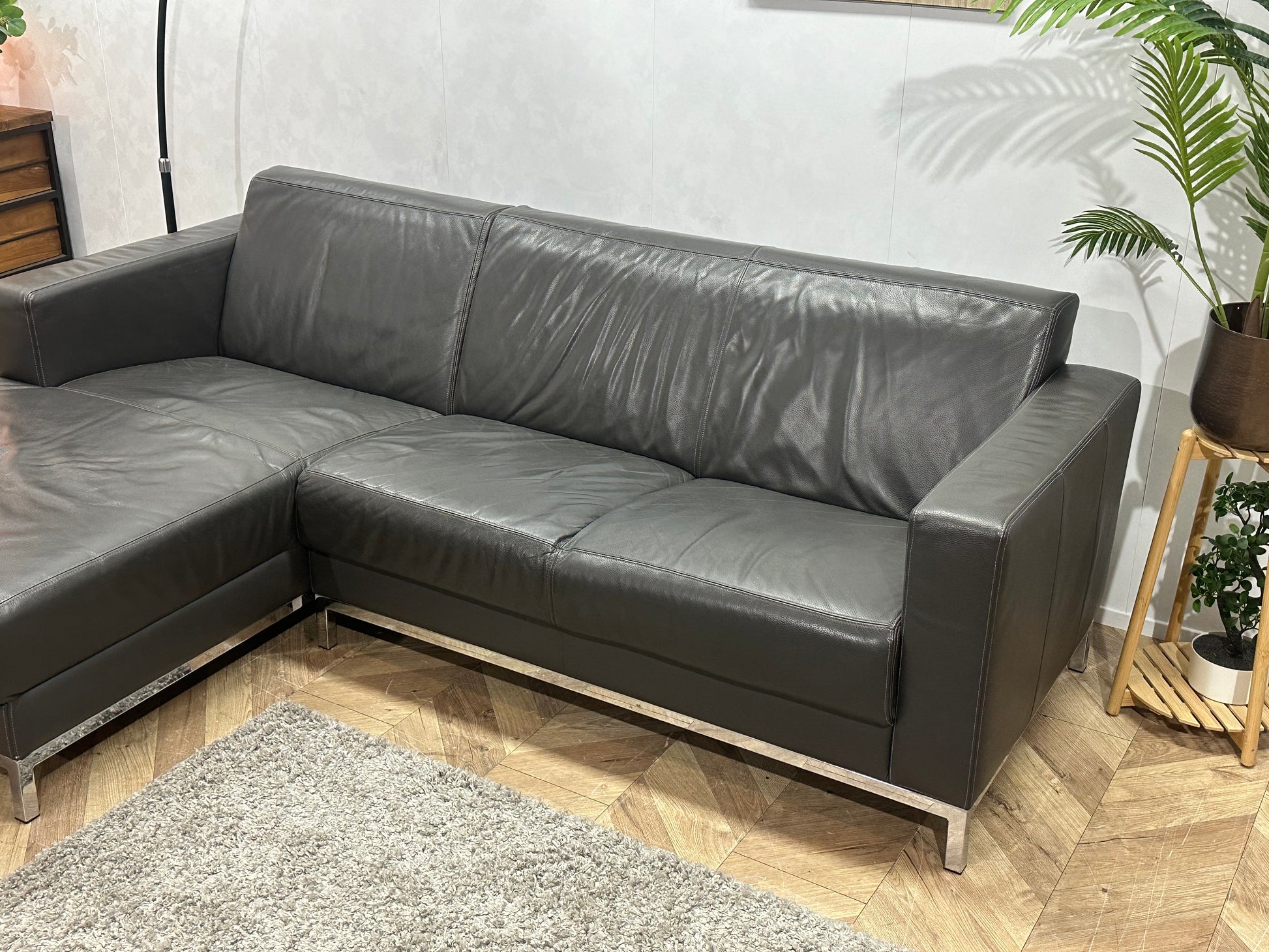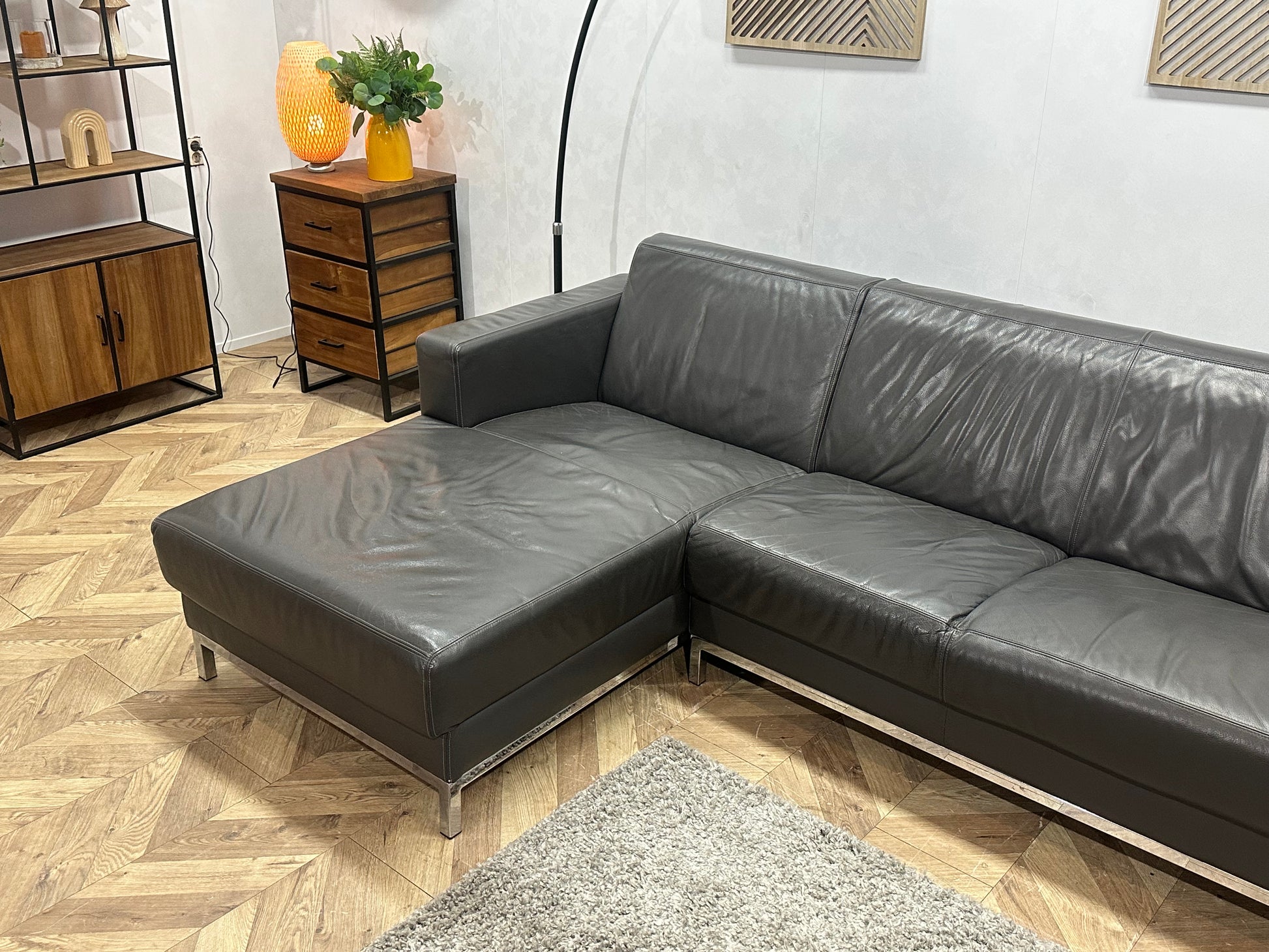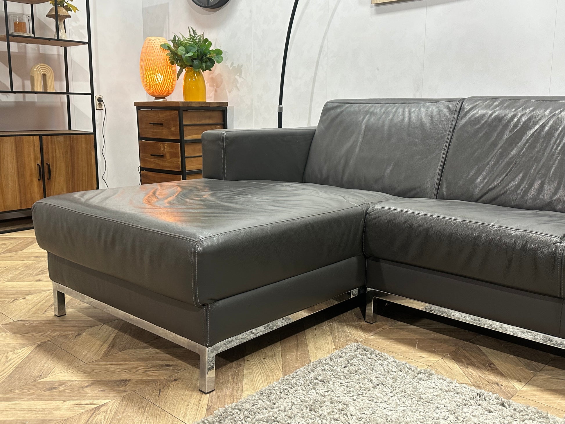 Montèl Antraciet Echt Lederen Hoekbank ~ Vaste Kussens