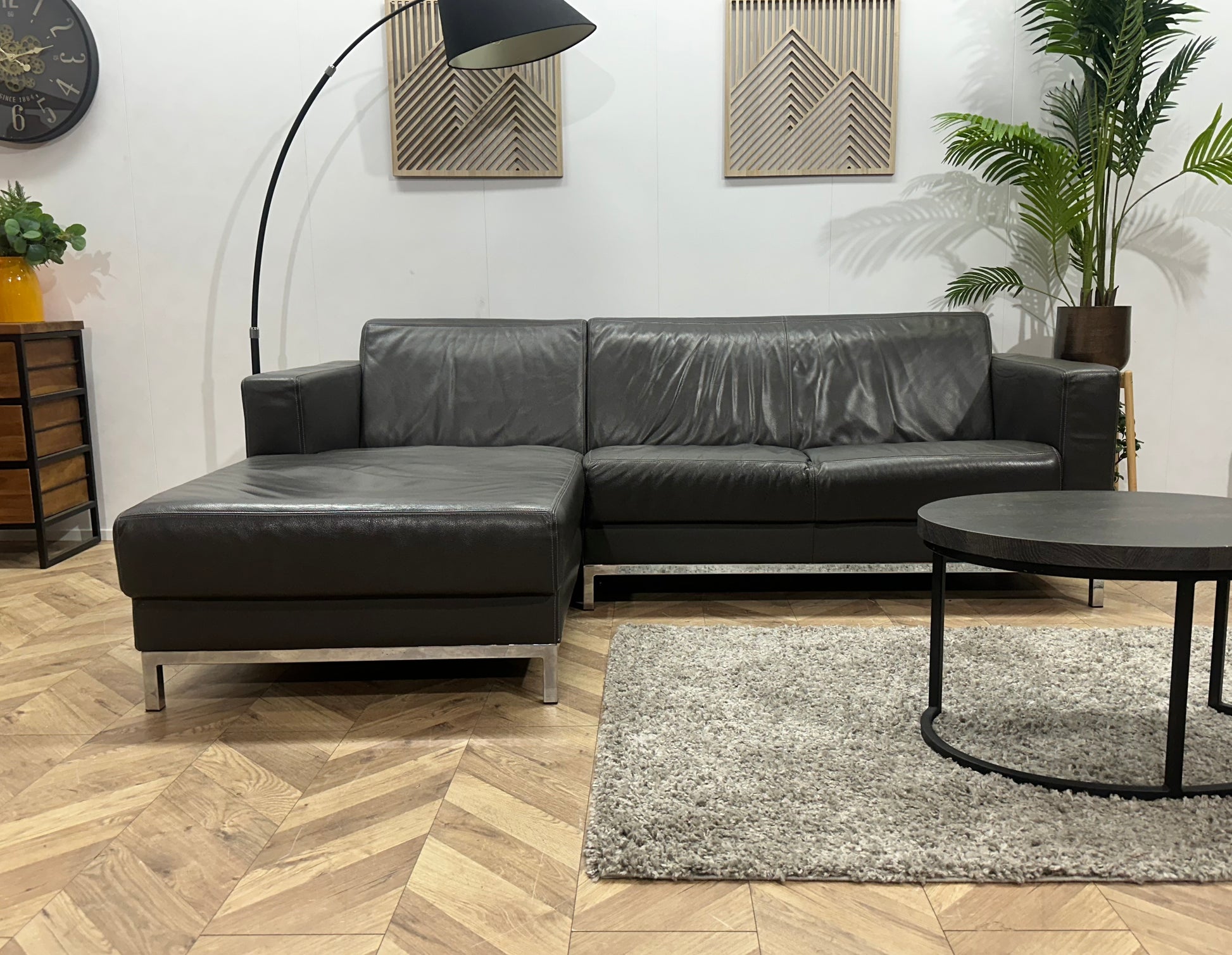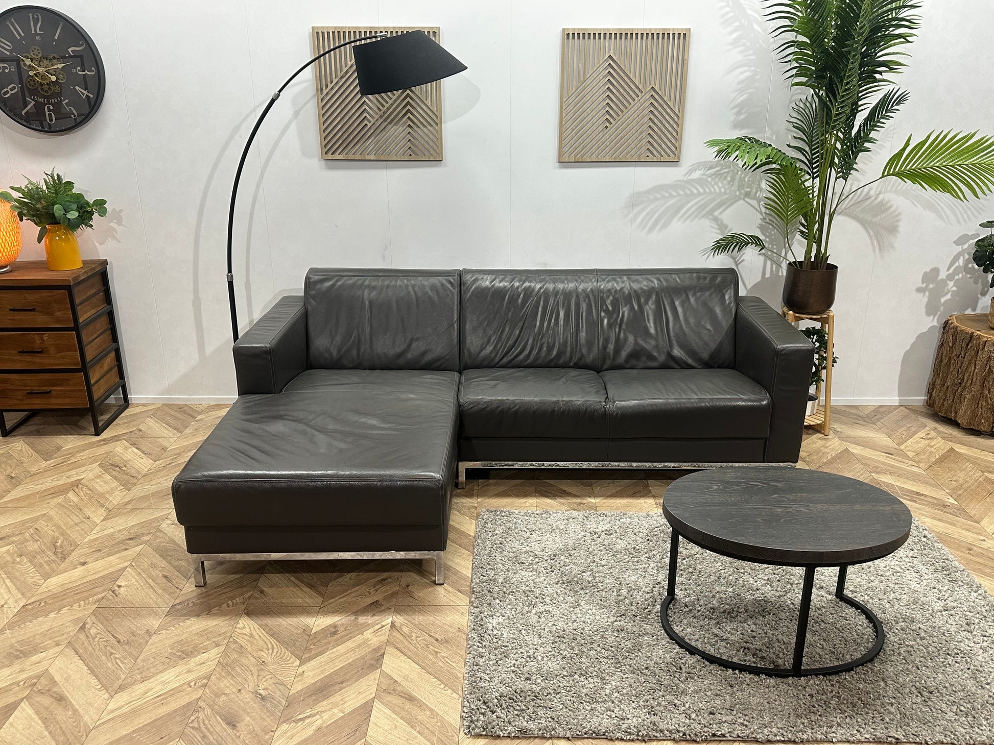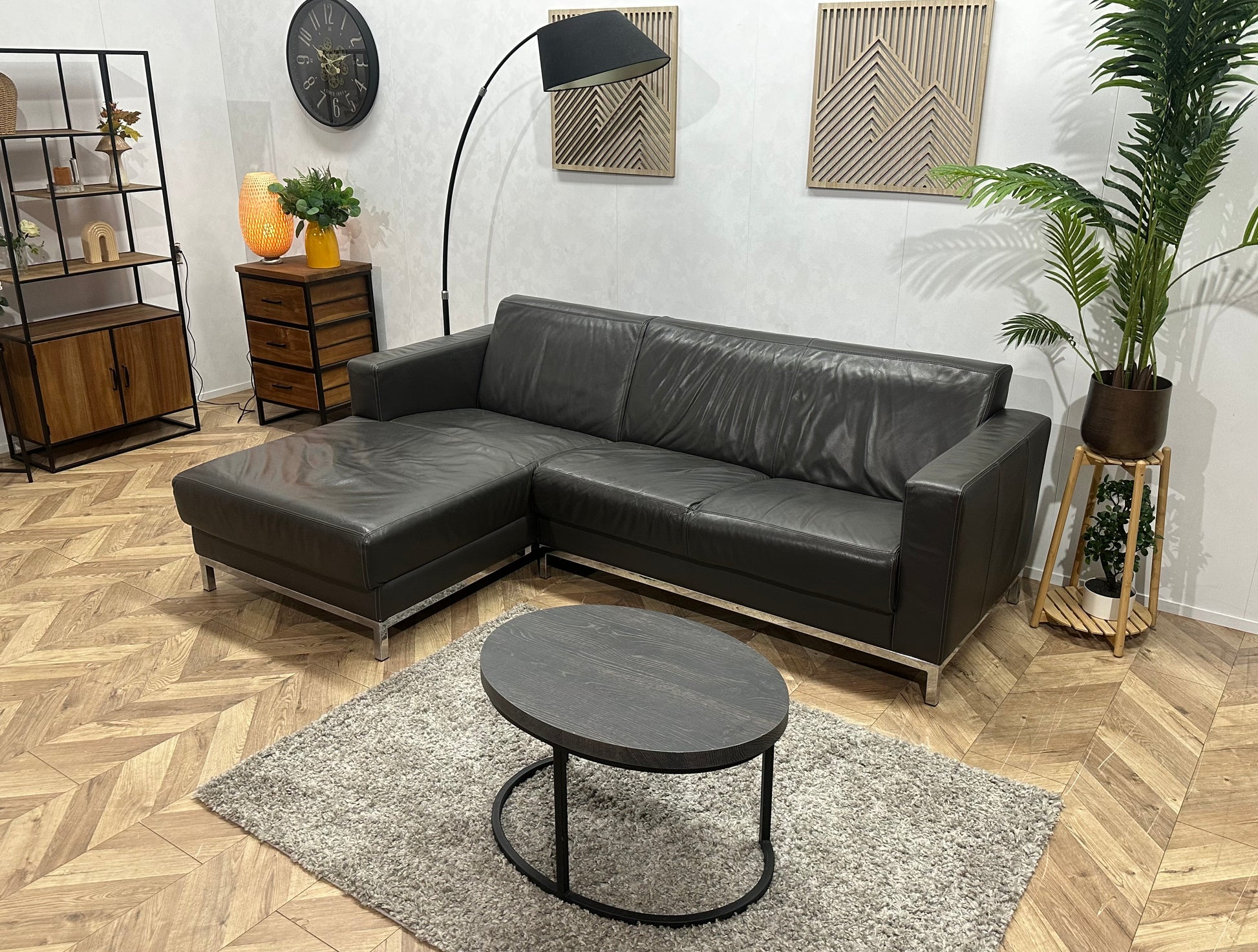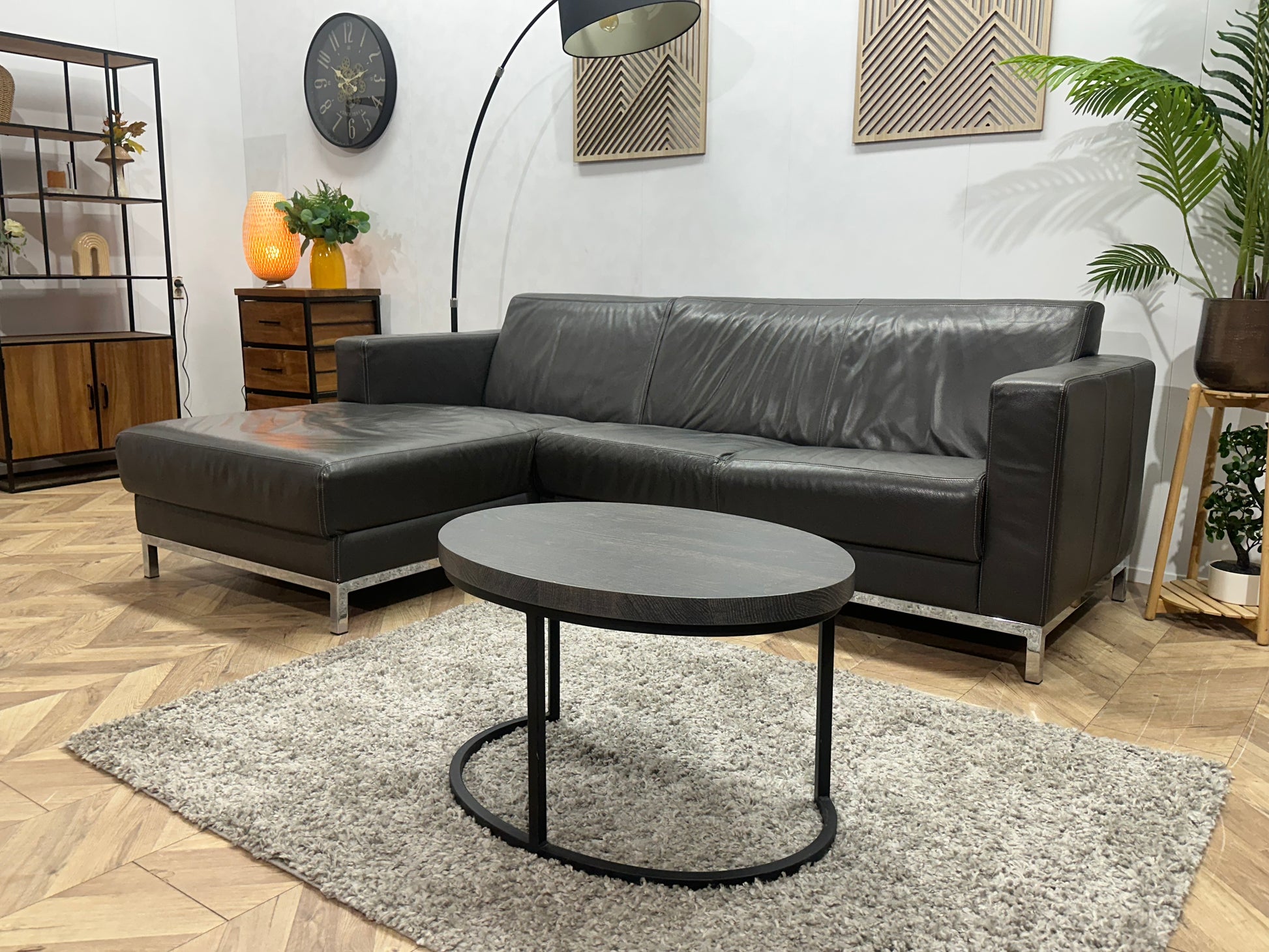 Montèl Antraciet Echt Lederen Hoekbank ~ Vaste Kussens