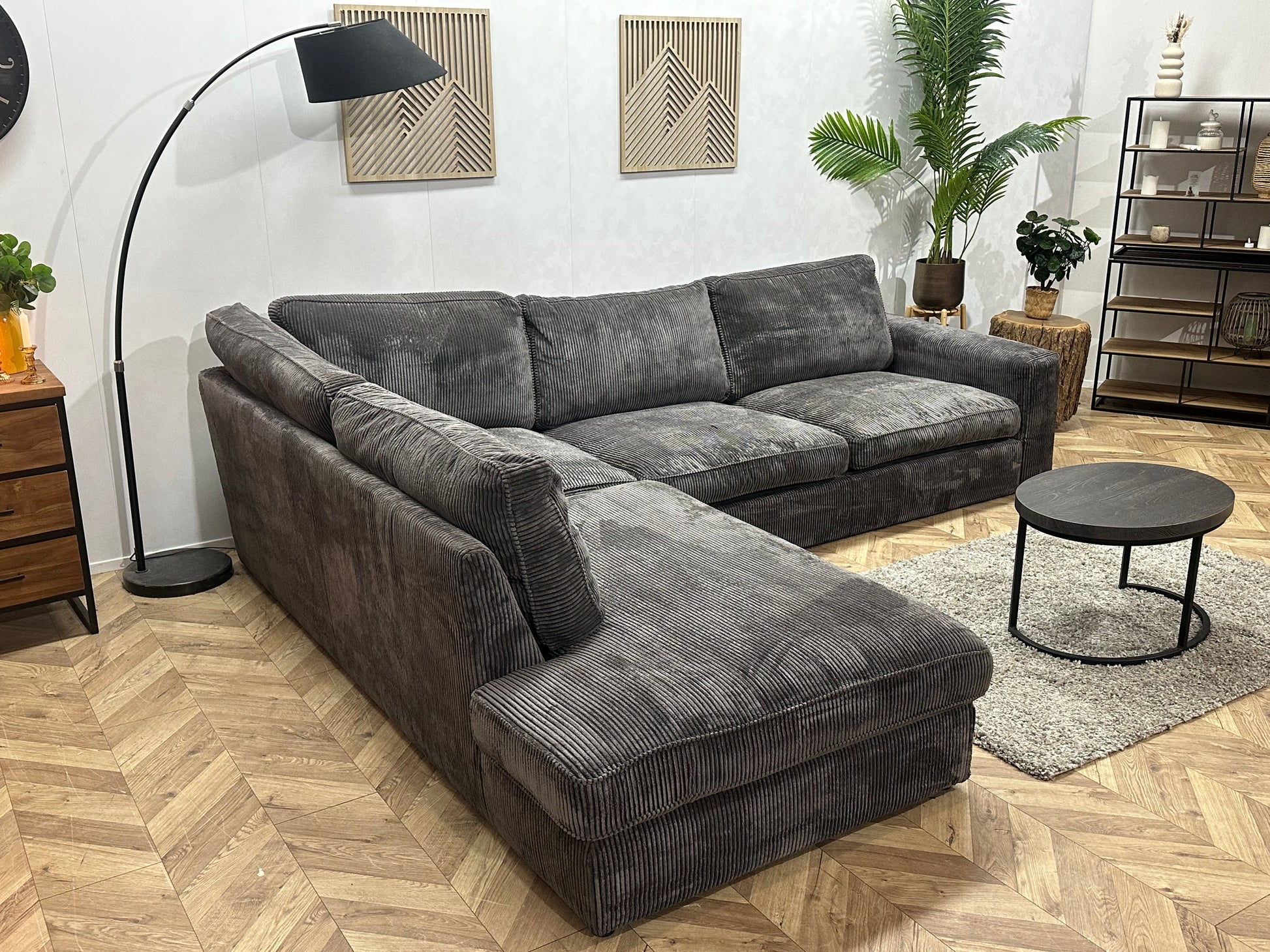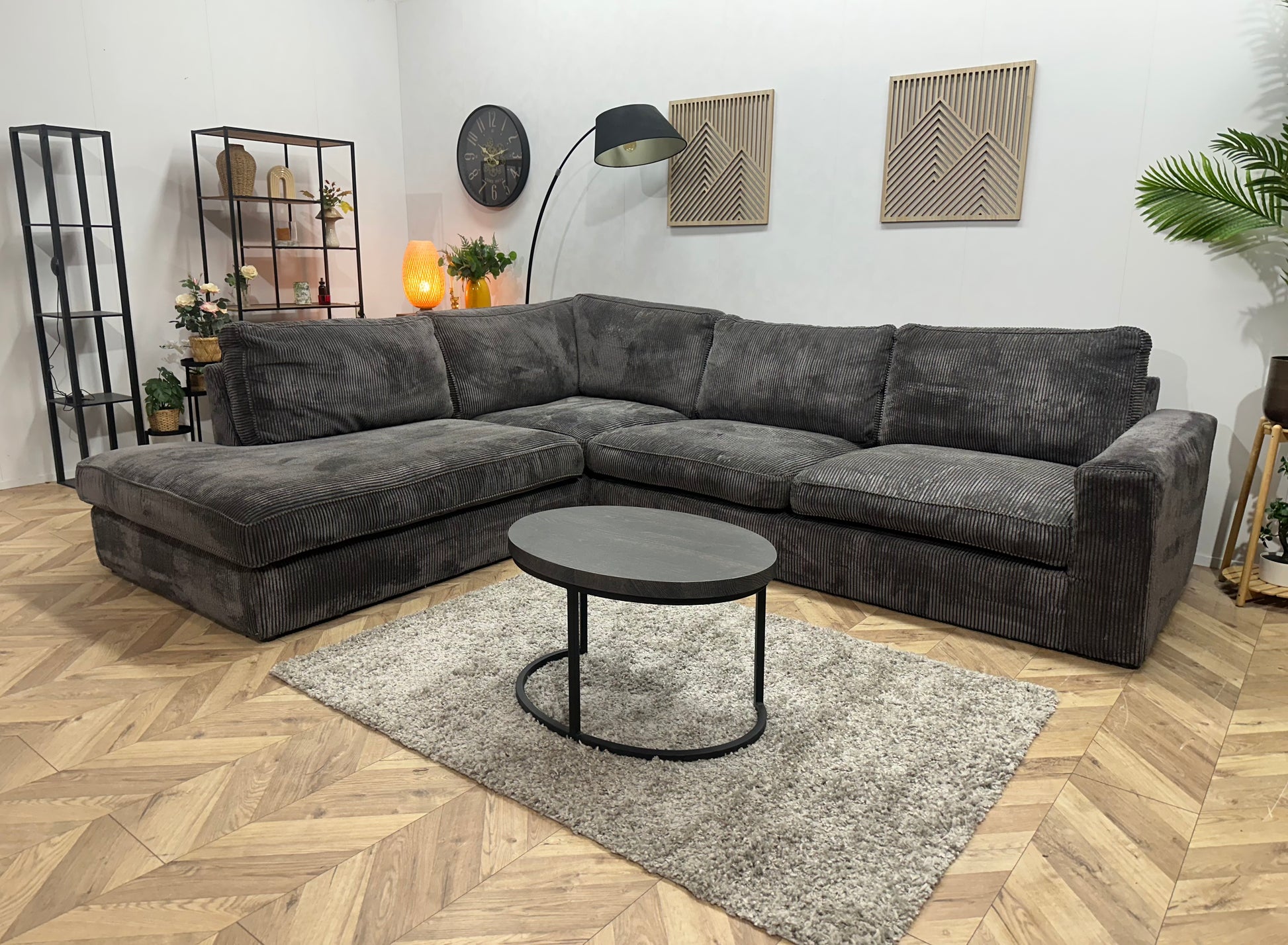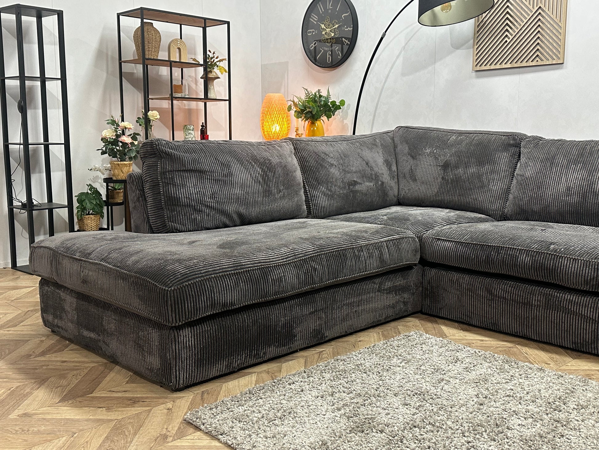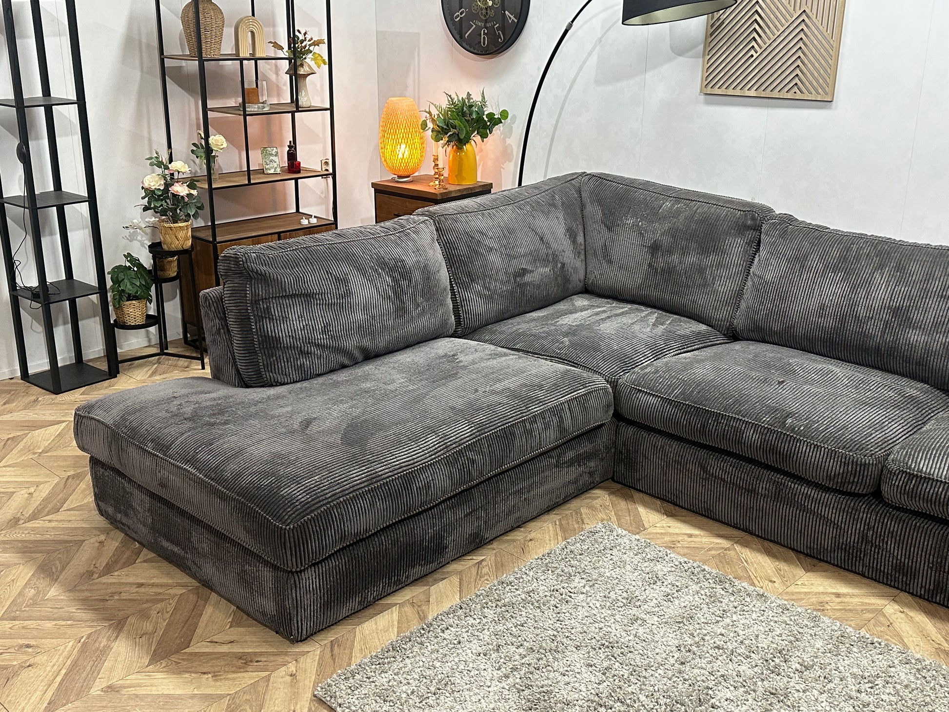 Antraciet Ribstof Hoekbank ~ Losse Kussens Met Afneembare Hoezen