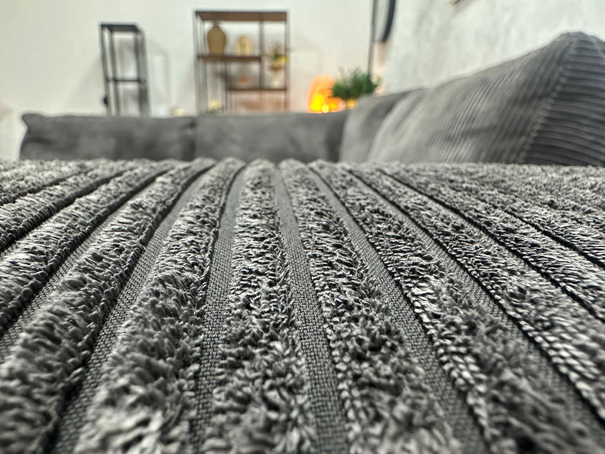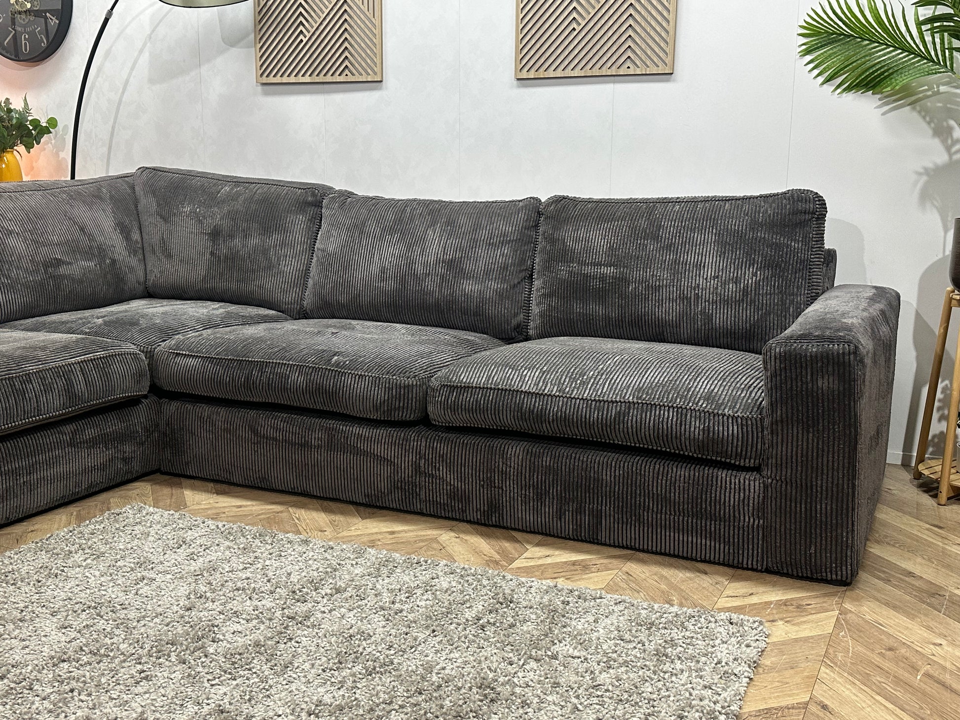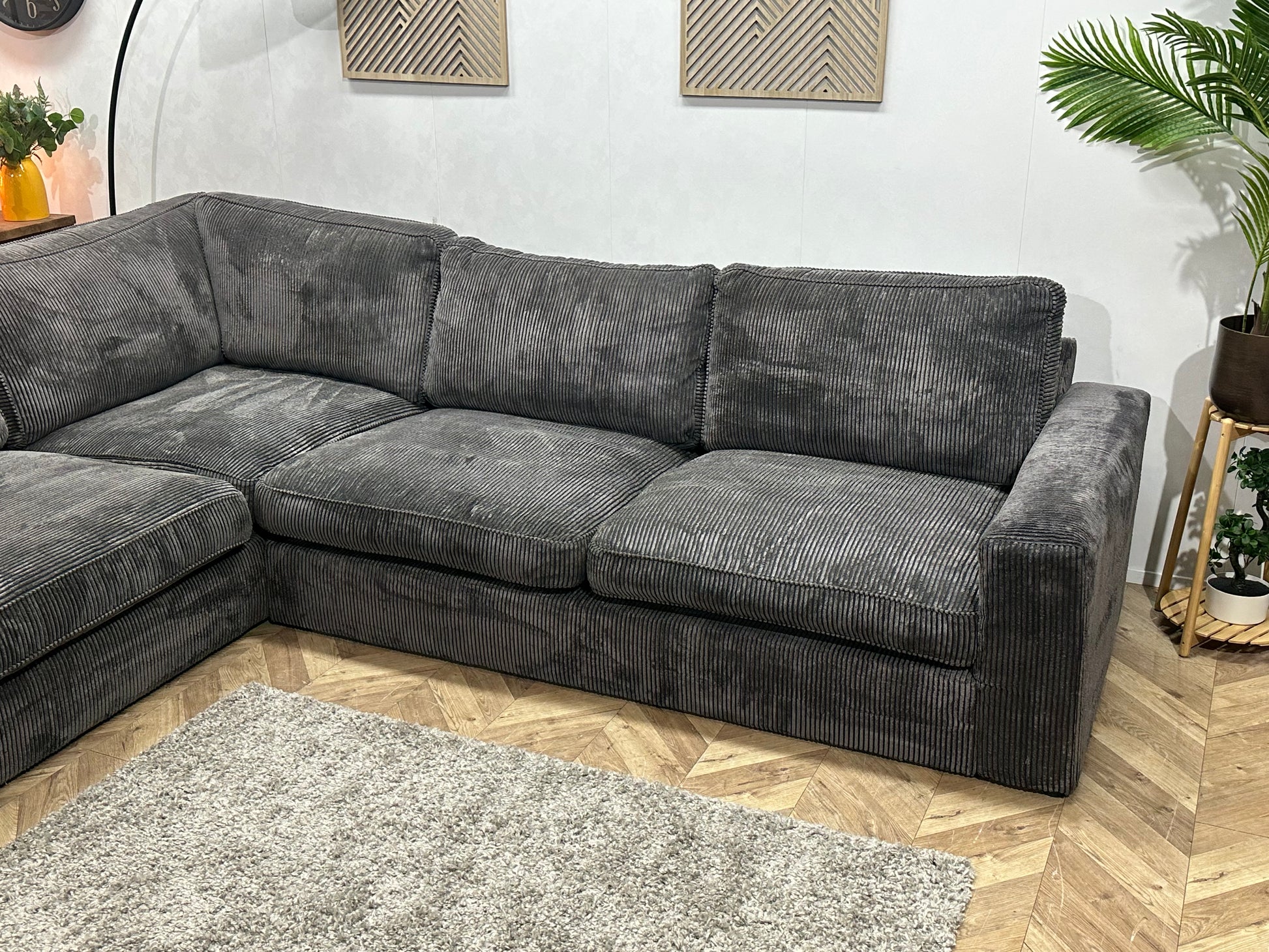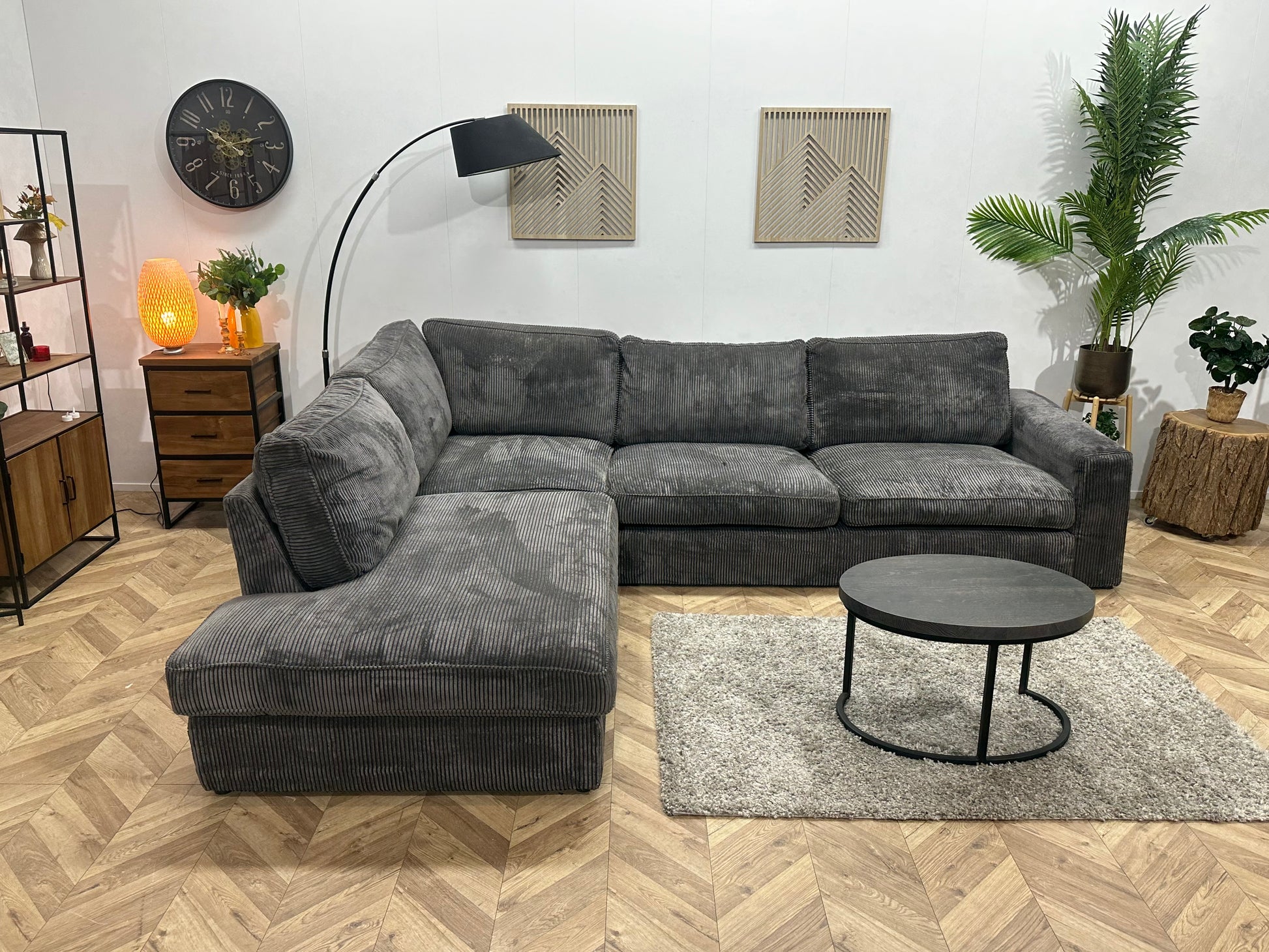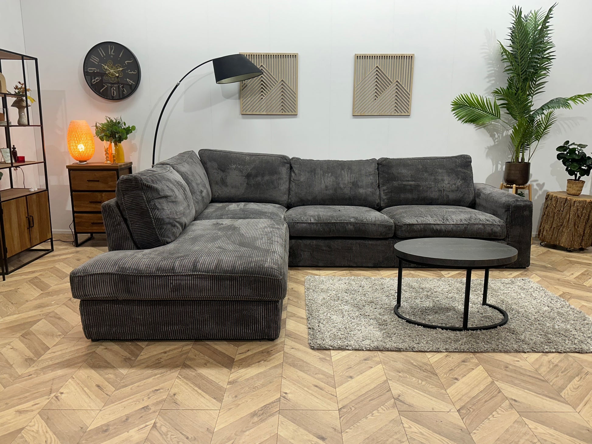 Antraciet Ribstof Hoekbank ~ Losse Kussens Met Afneembare Hoezen