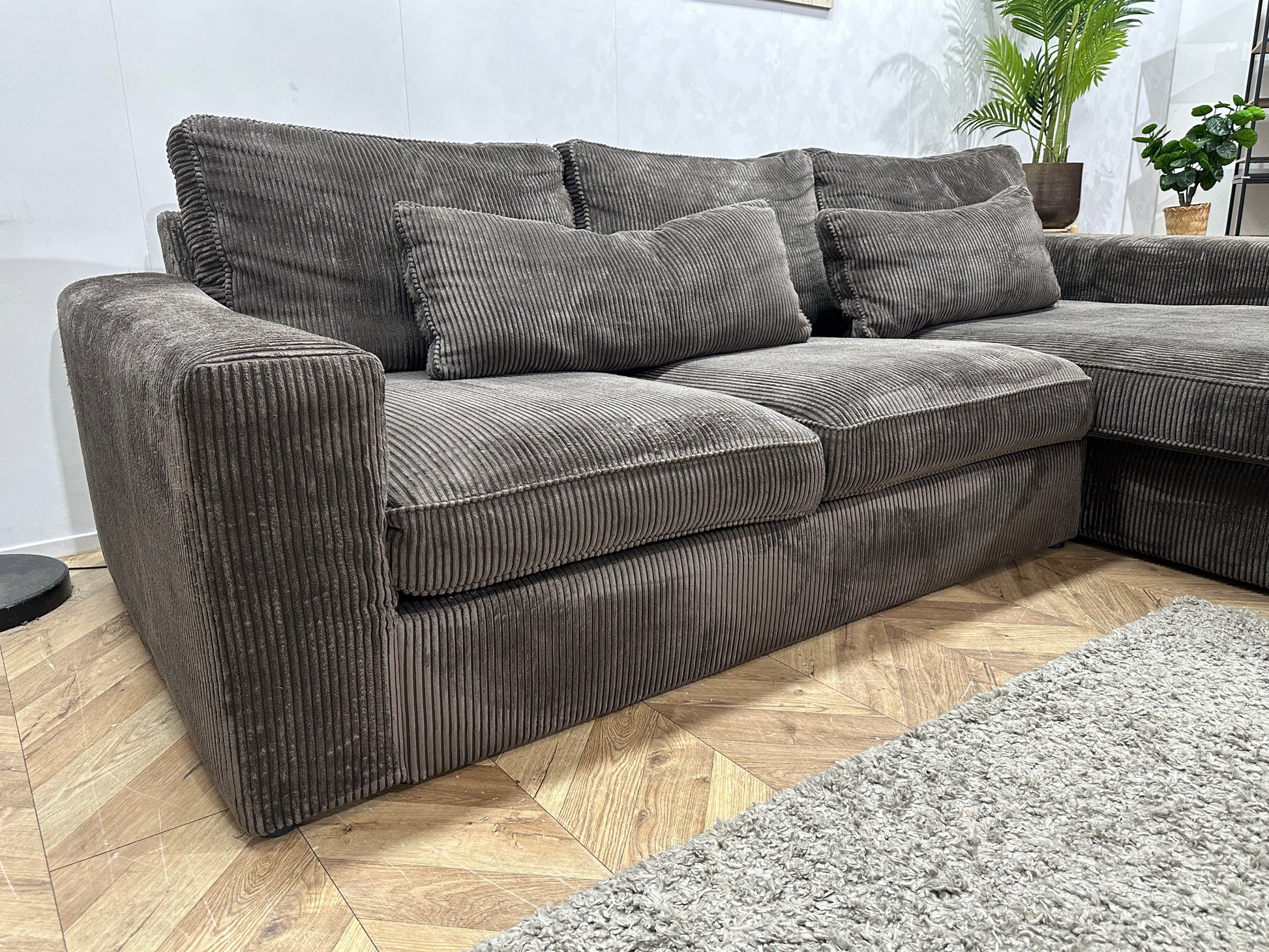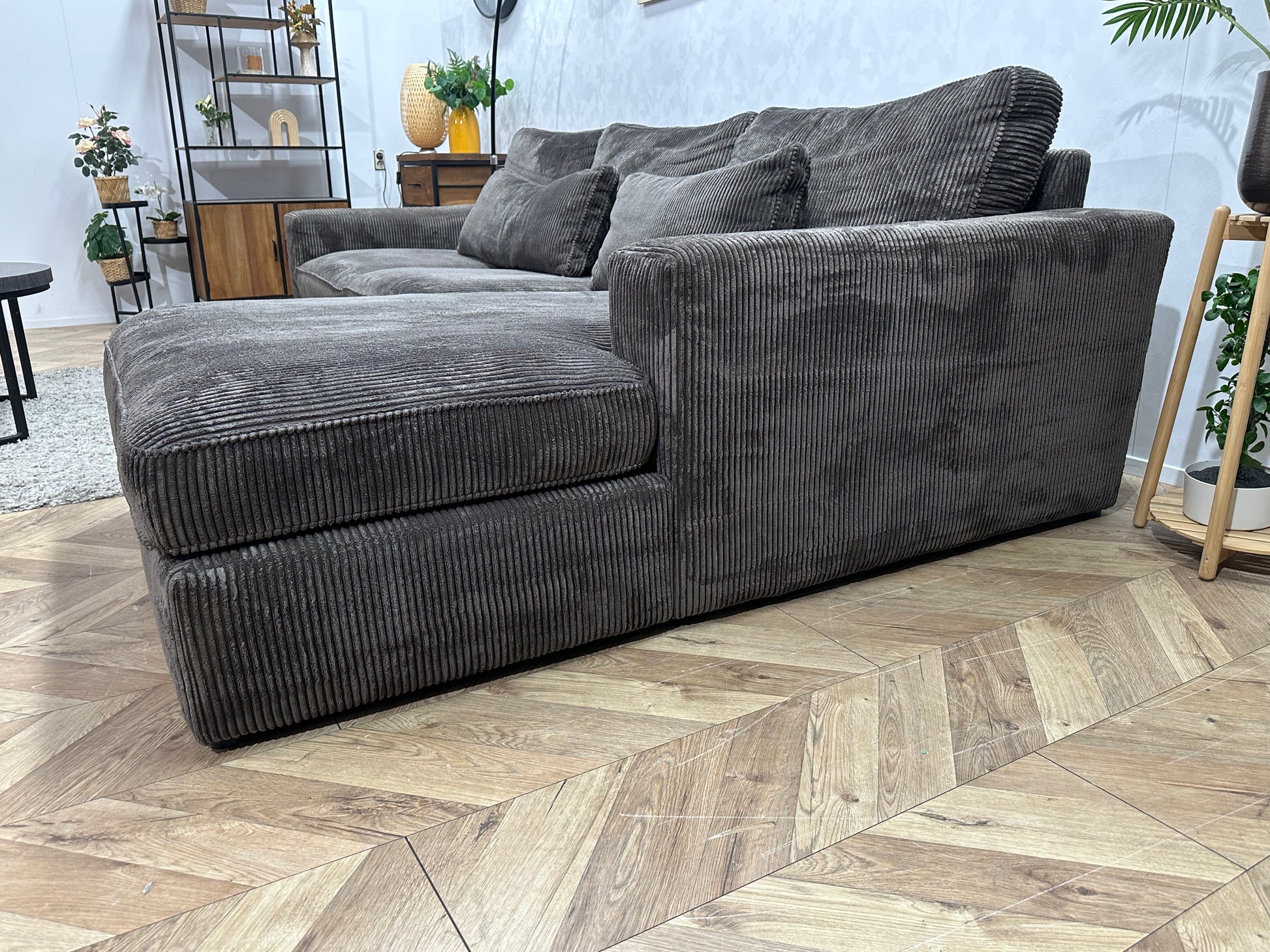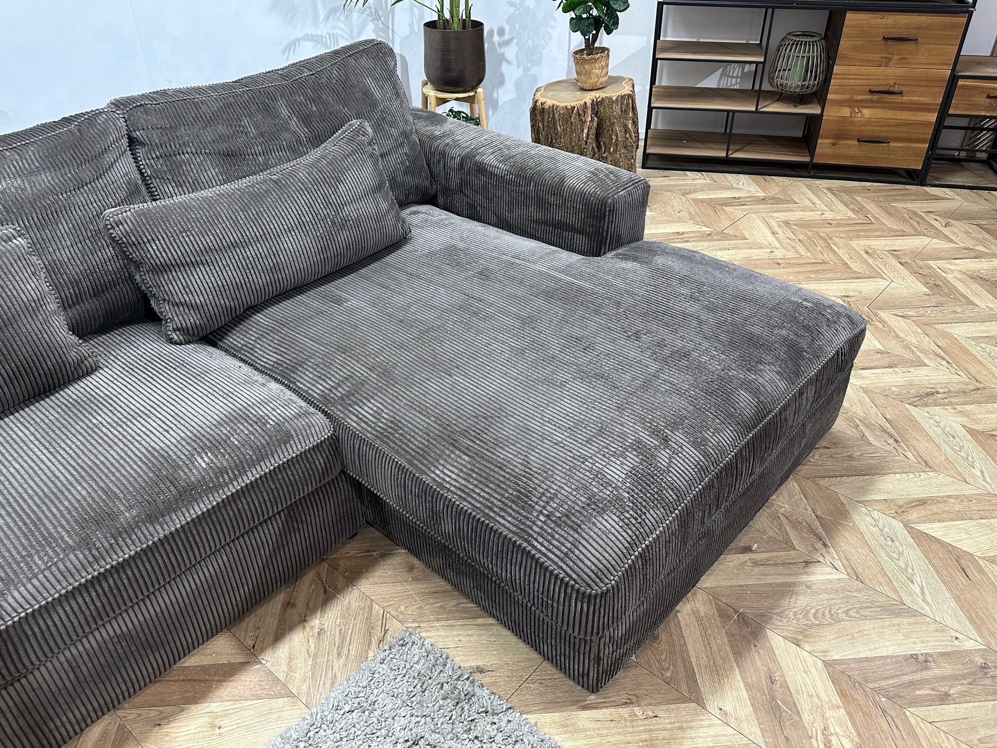 Antraciet Ribstof Hoekbank ~ Losse Kussens Met Afneembare Hoezen