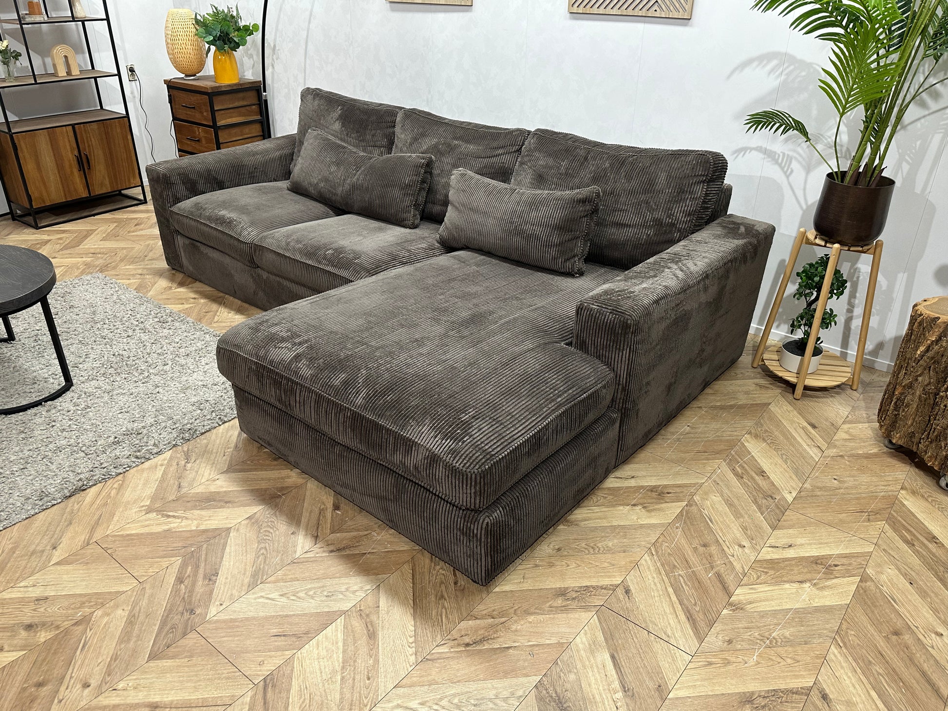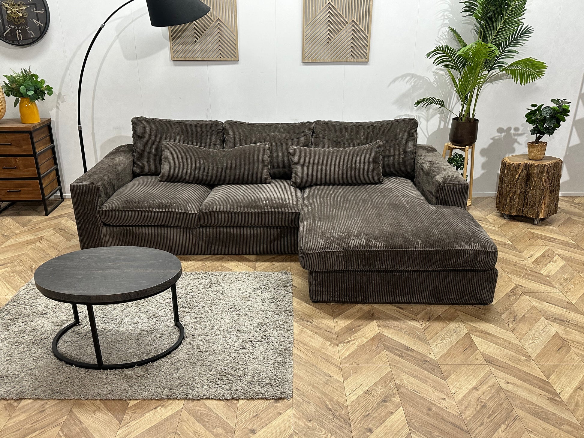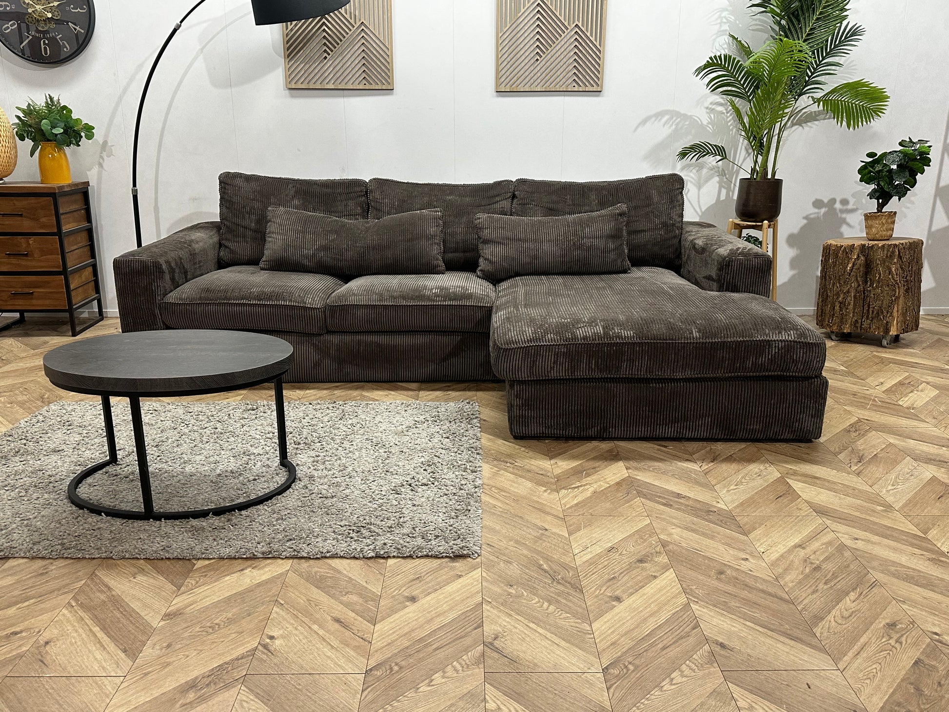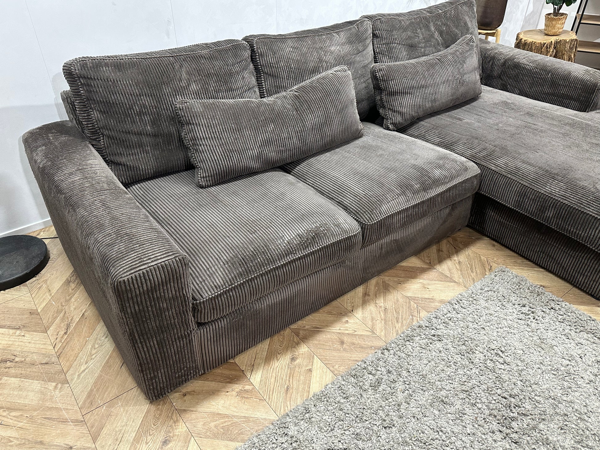Antraciet Ribstof Hoekbank ~ Losse Kussens Met Afneembare Hoezen