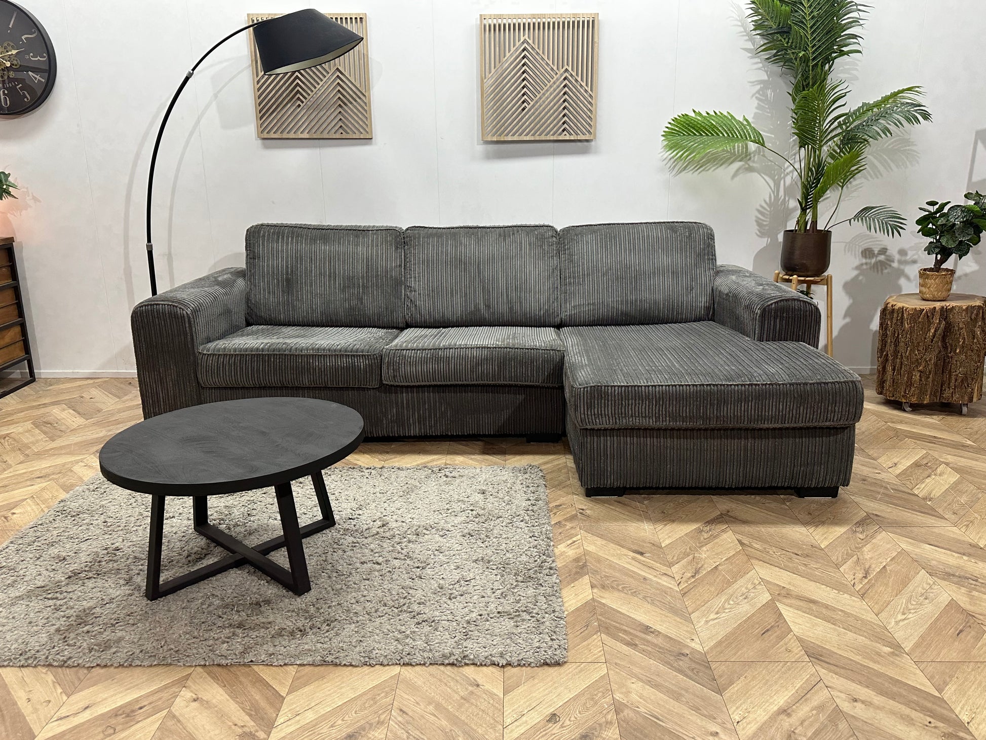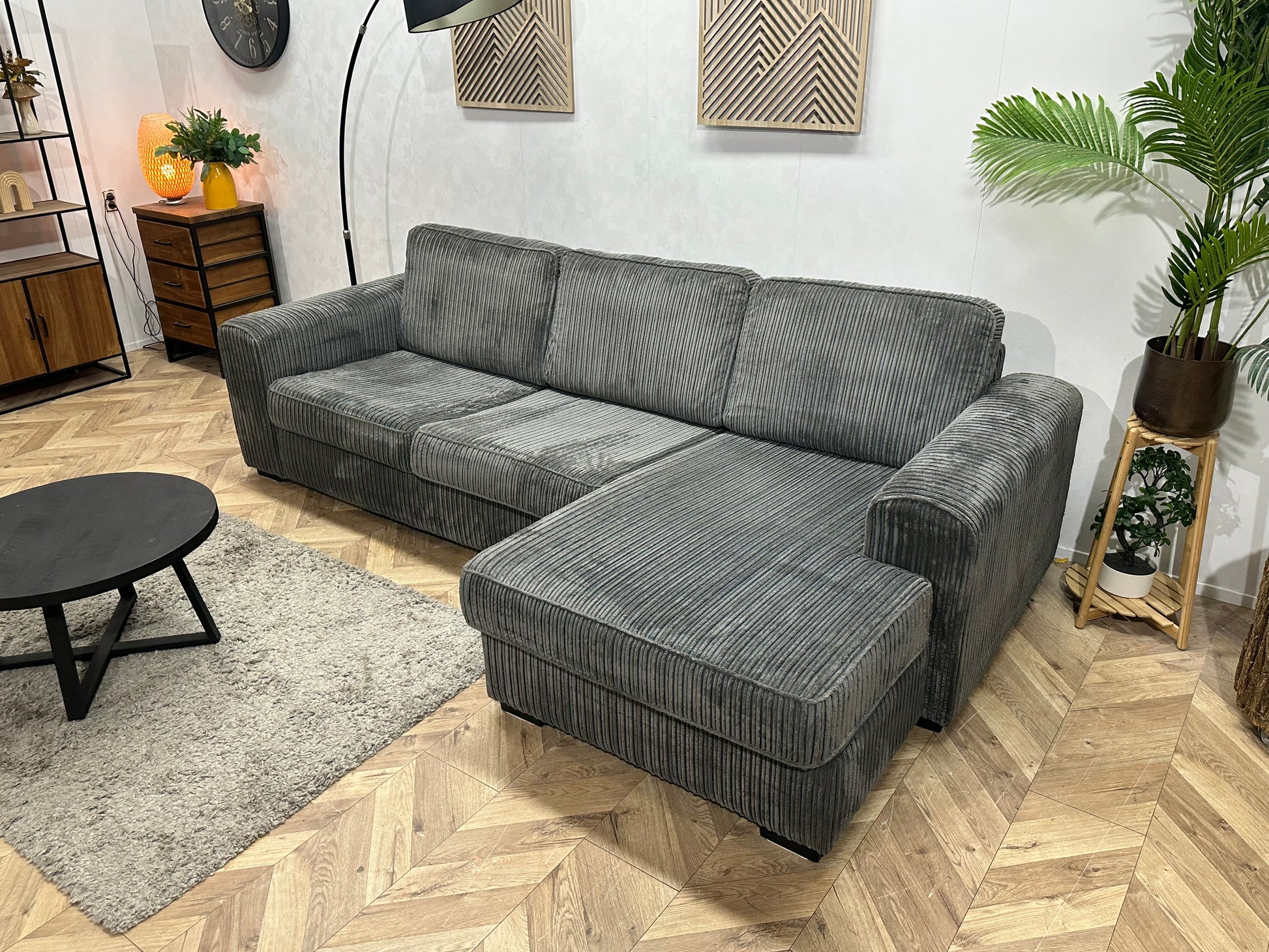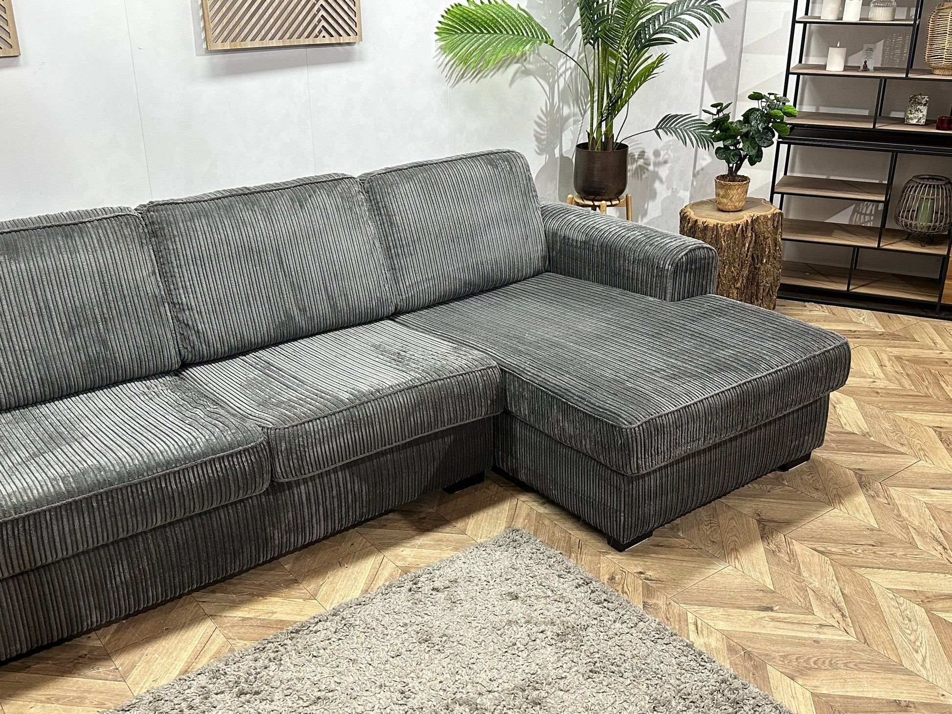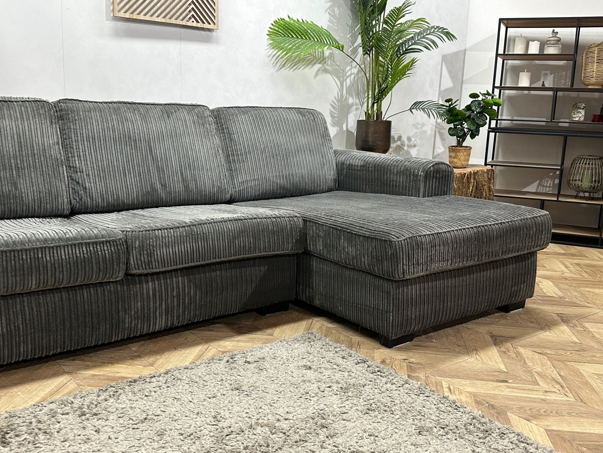 Antraciet Ribstof Hoekbank ~ Losse Kussens Met Afneembare Hoezen