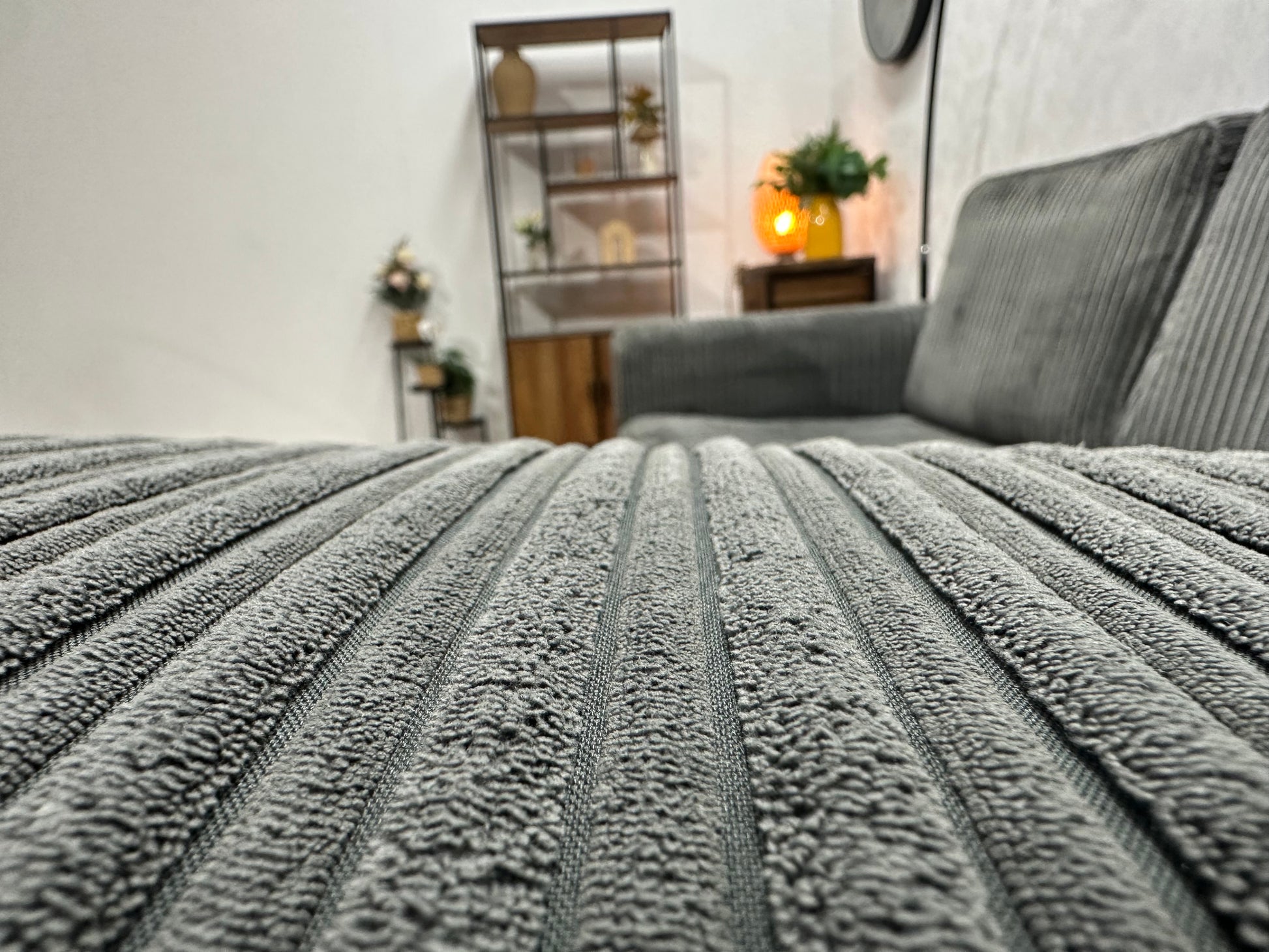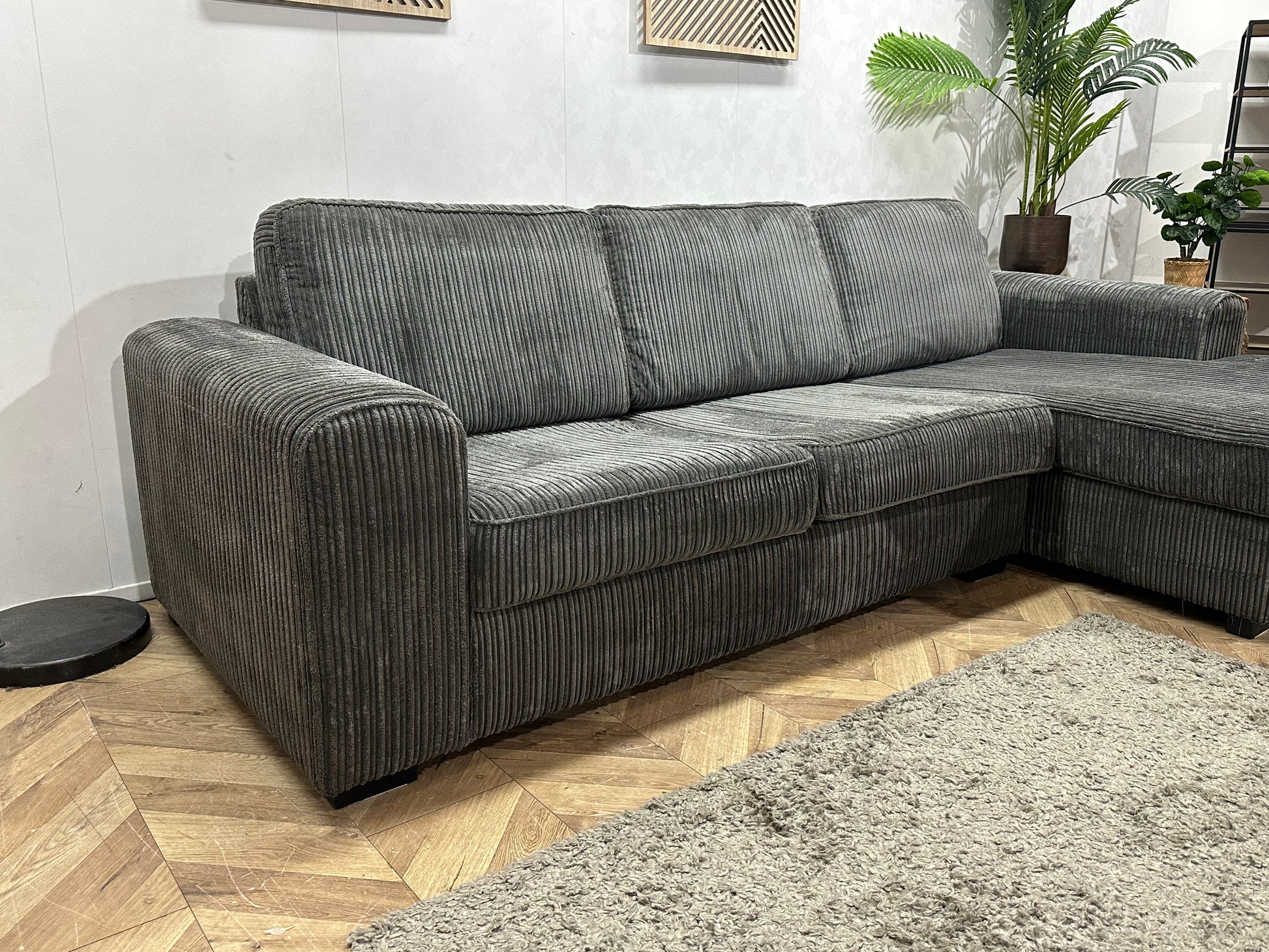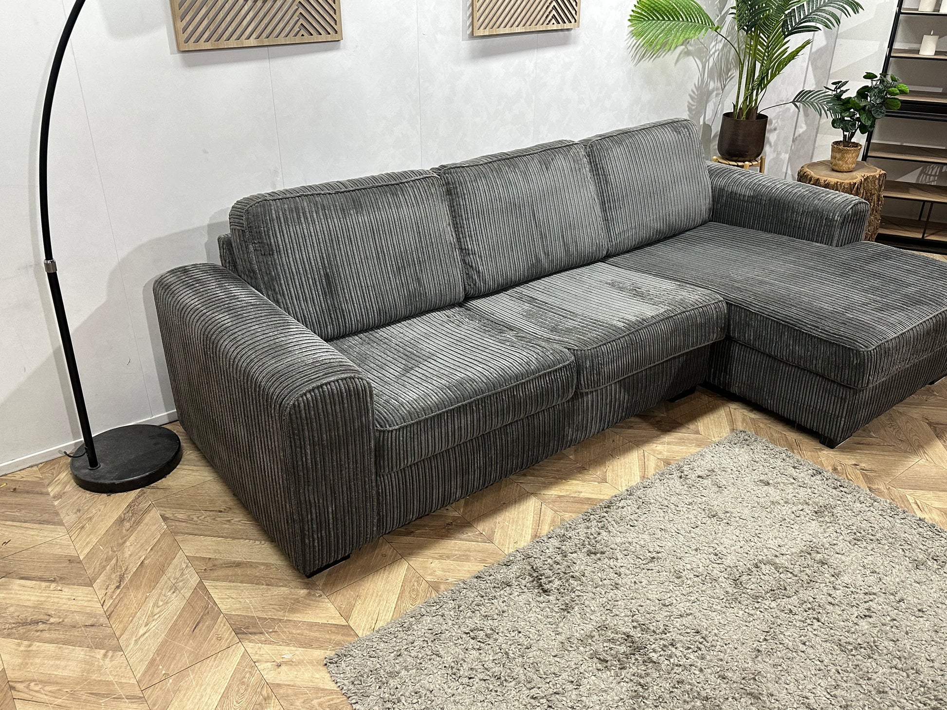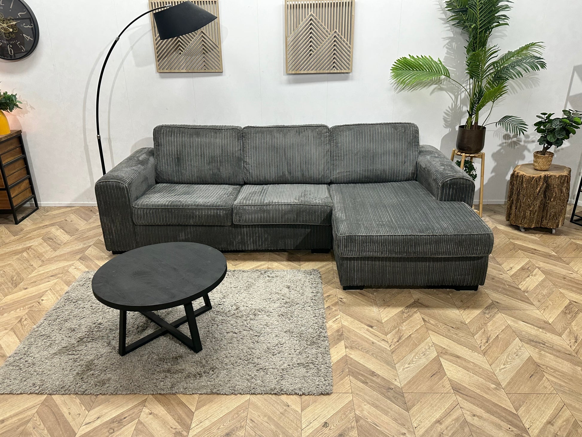 Antraciet Ribstof Hoekbank ~ Losse Kussens Met Afneembare Hoezen