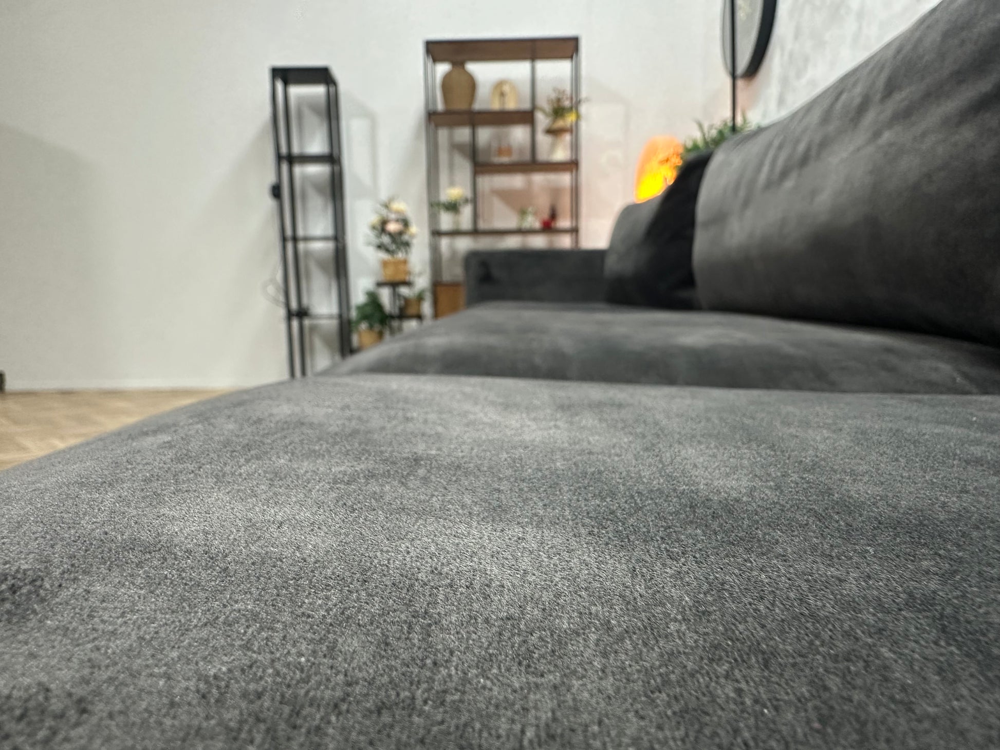 Antraciet Ruime Velvet 3-Zits Bank Inc Hocker ~ Losse Kussens Met Afneembare Hoezen