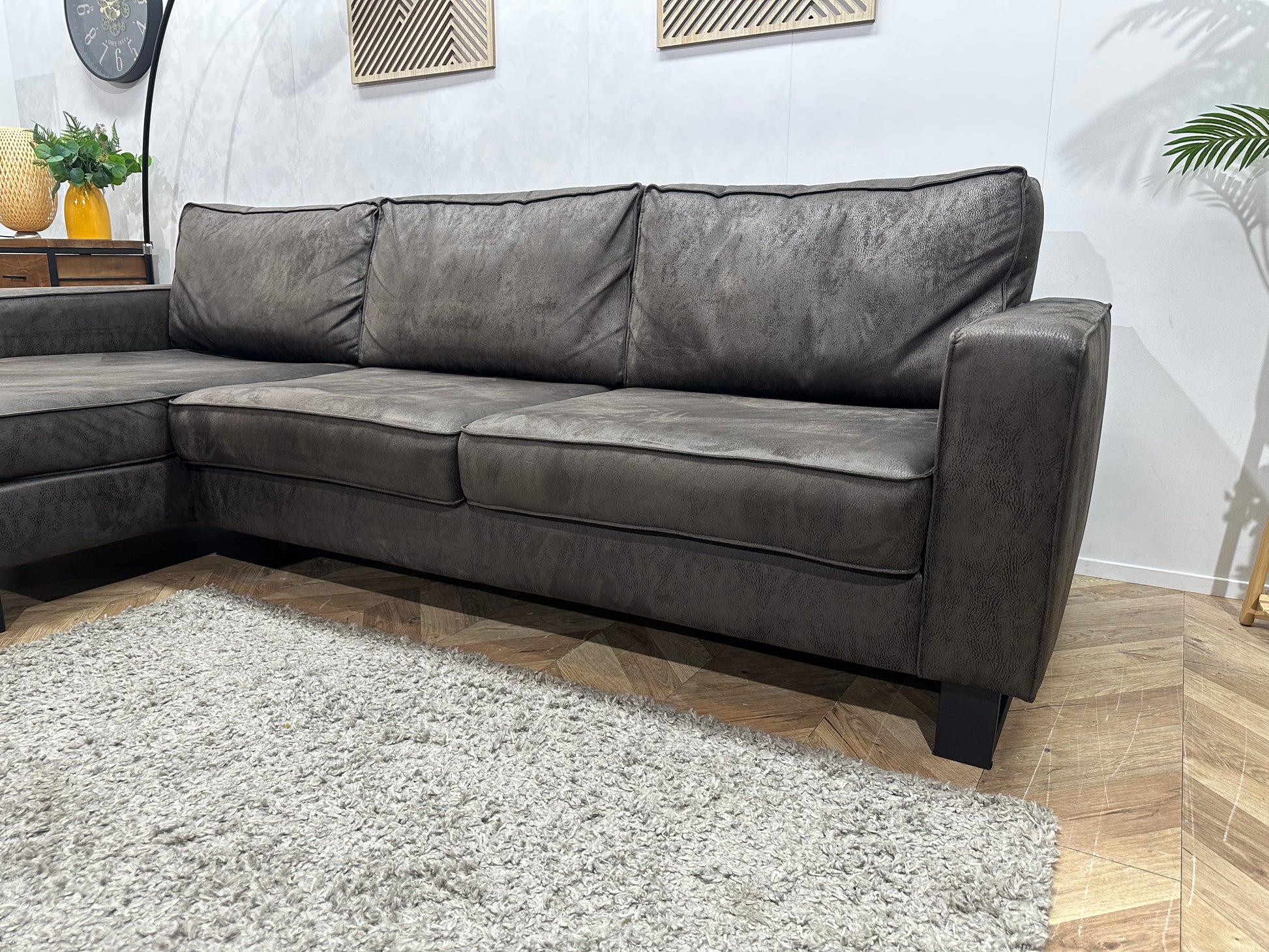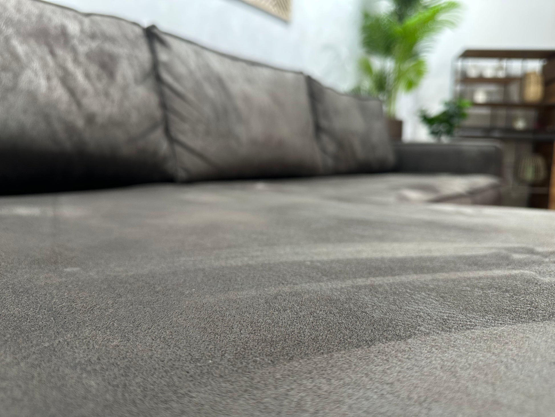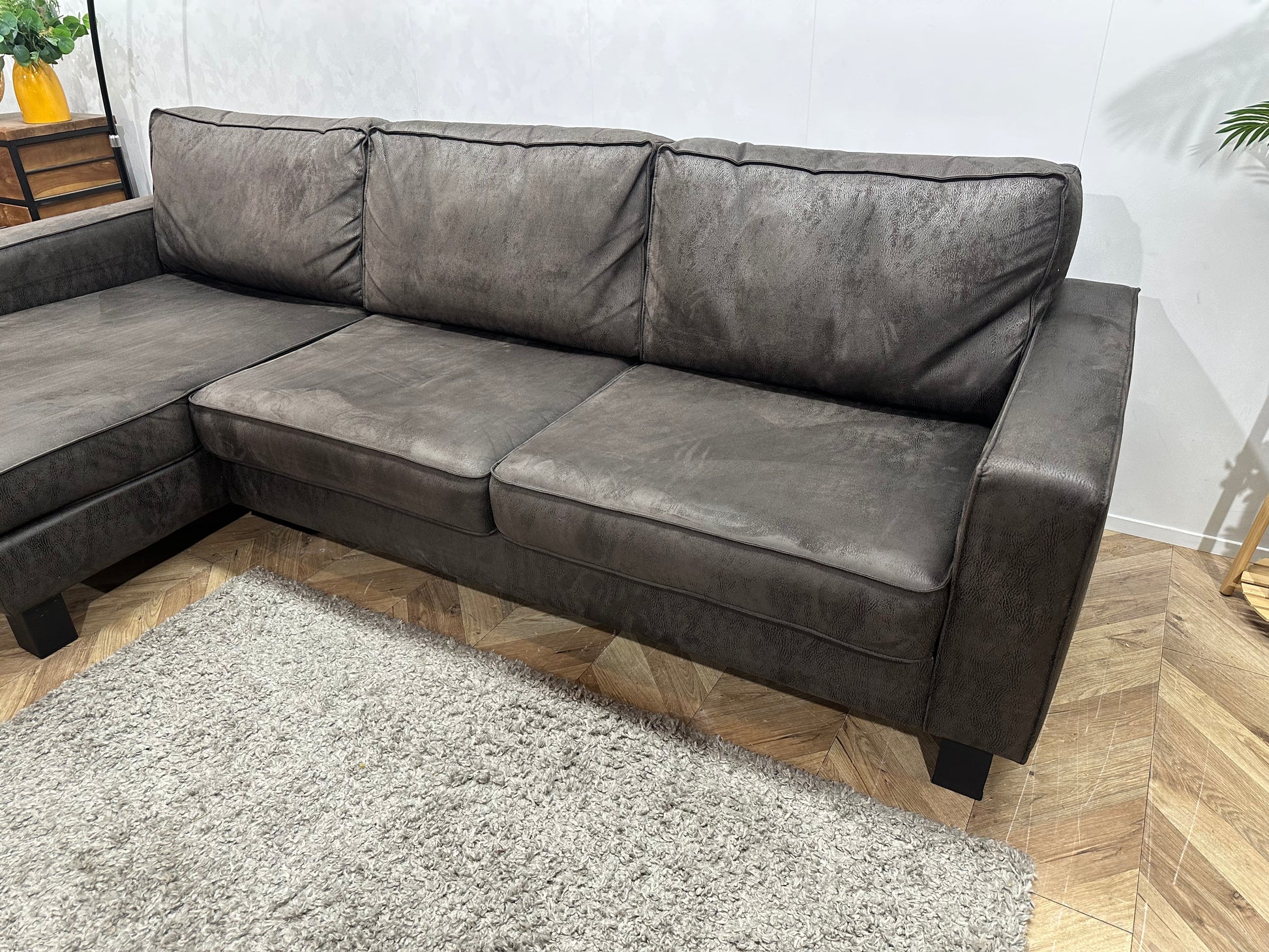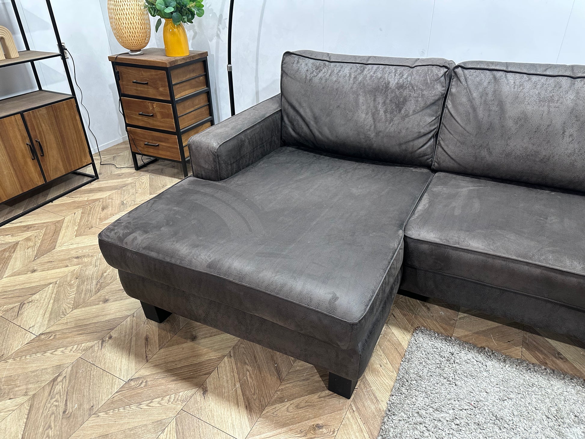 Antraciet Suède Stof Hoekbank ~ Losse Kussens Met Afneembare Hoezen