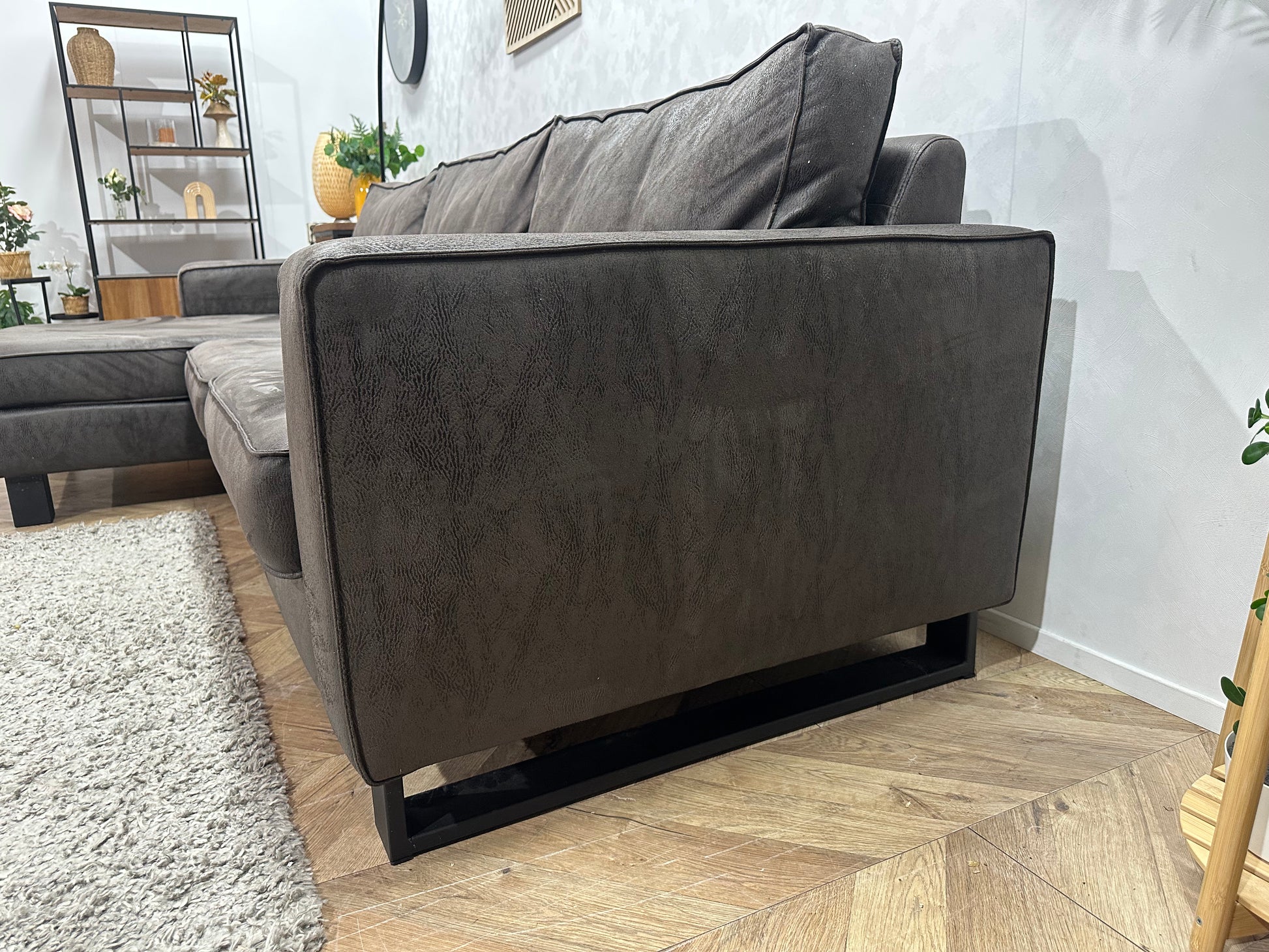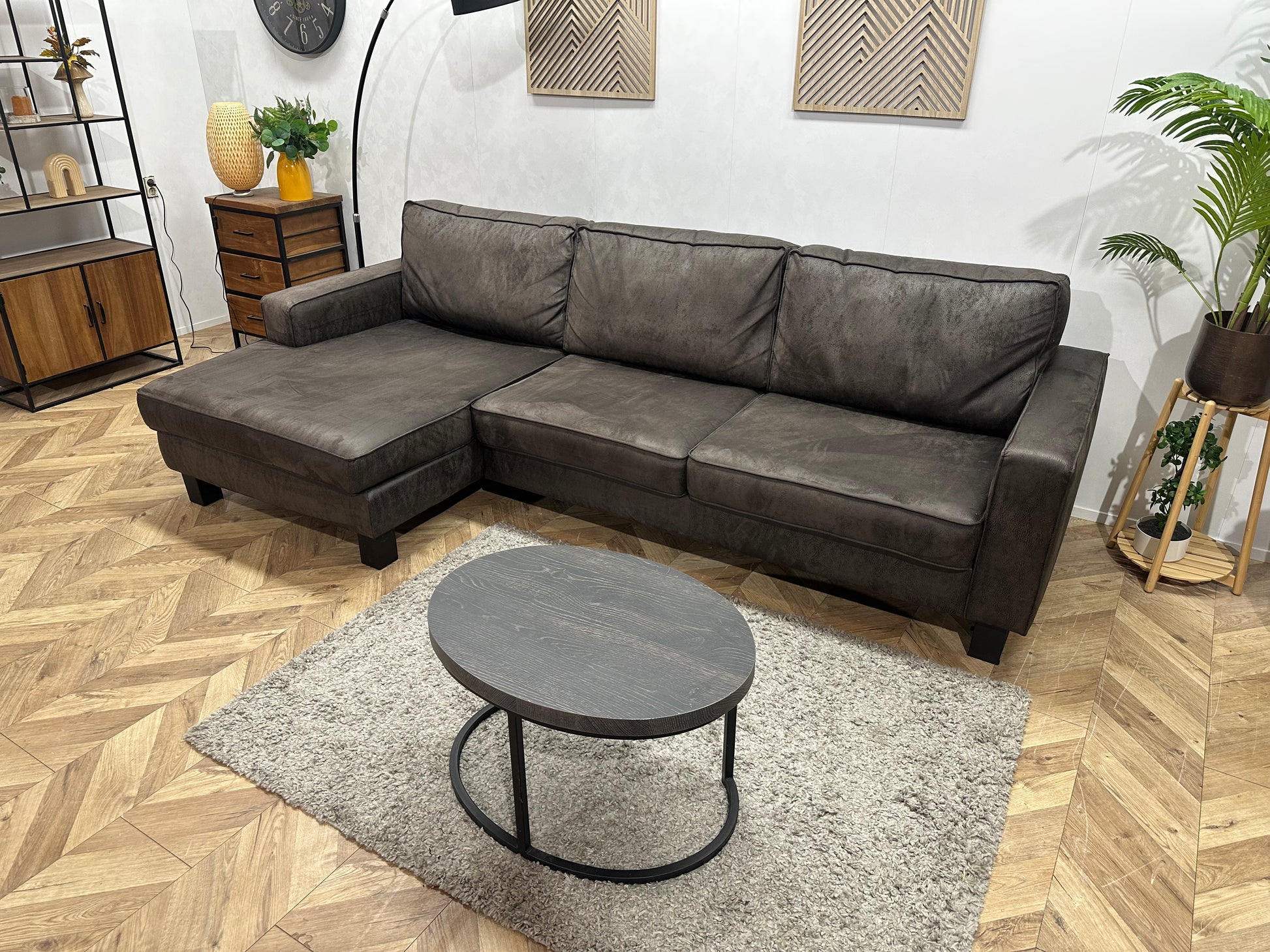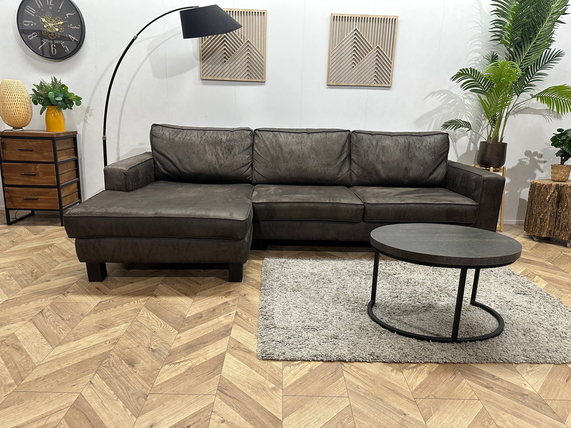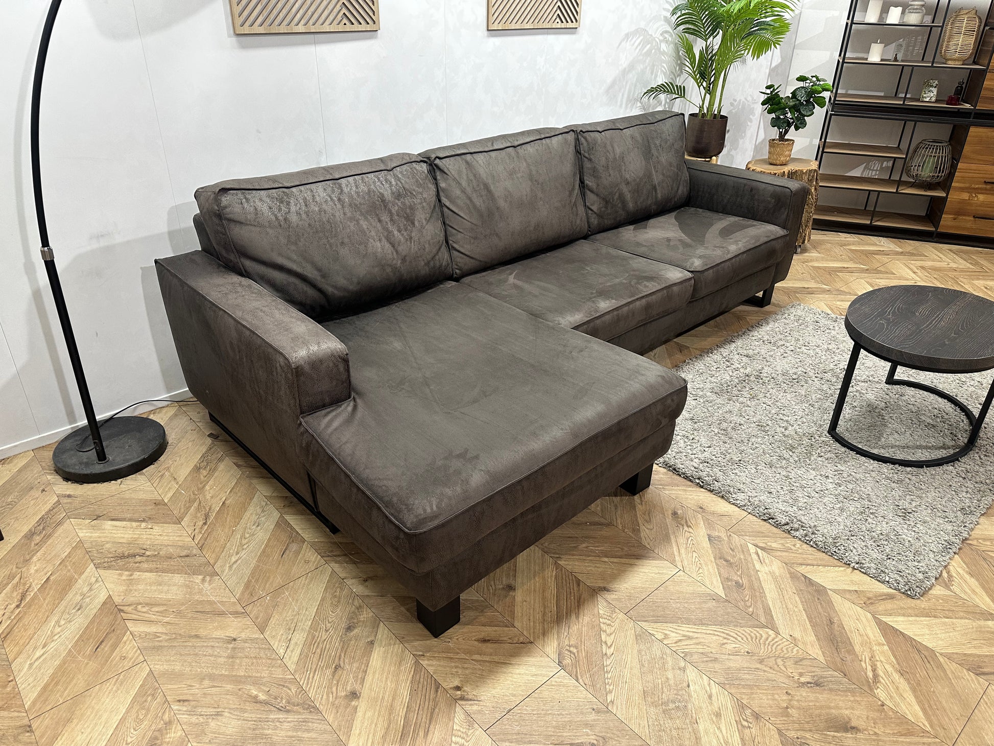 Antraciet Suède Stof Hoekbank ~ Losse Kussens Met Afneembare Hoezen