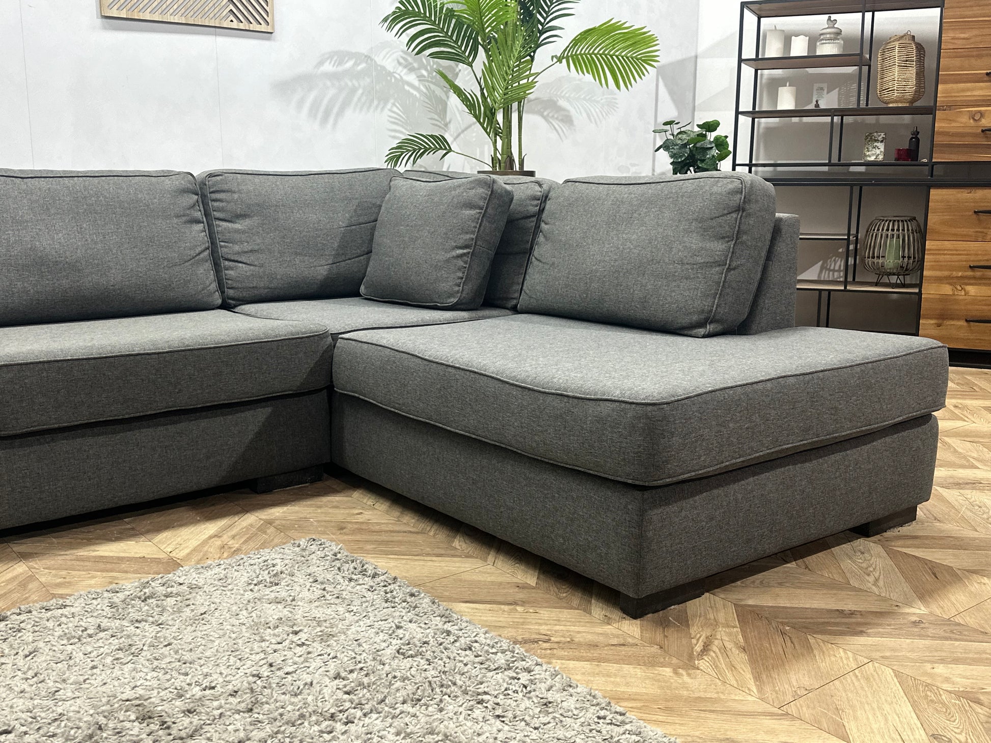 Antraciet Suède Stoffen Hoekbank ~ Nieuwstaat