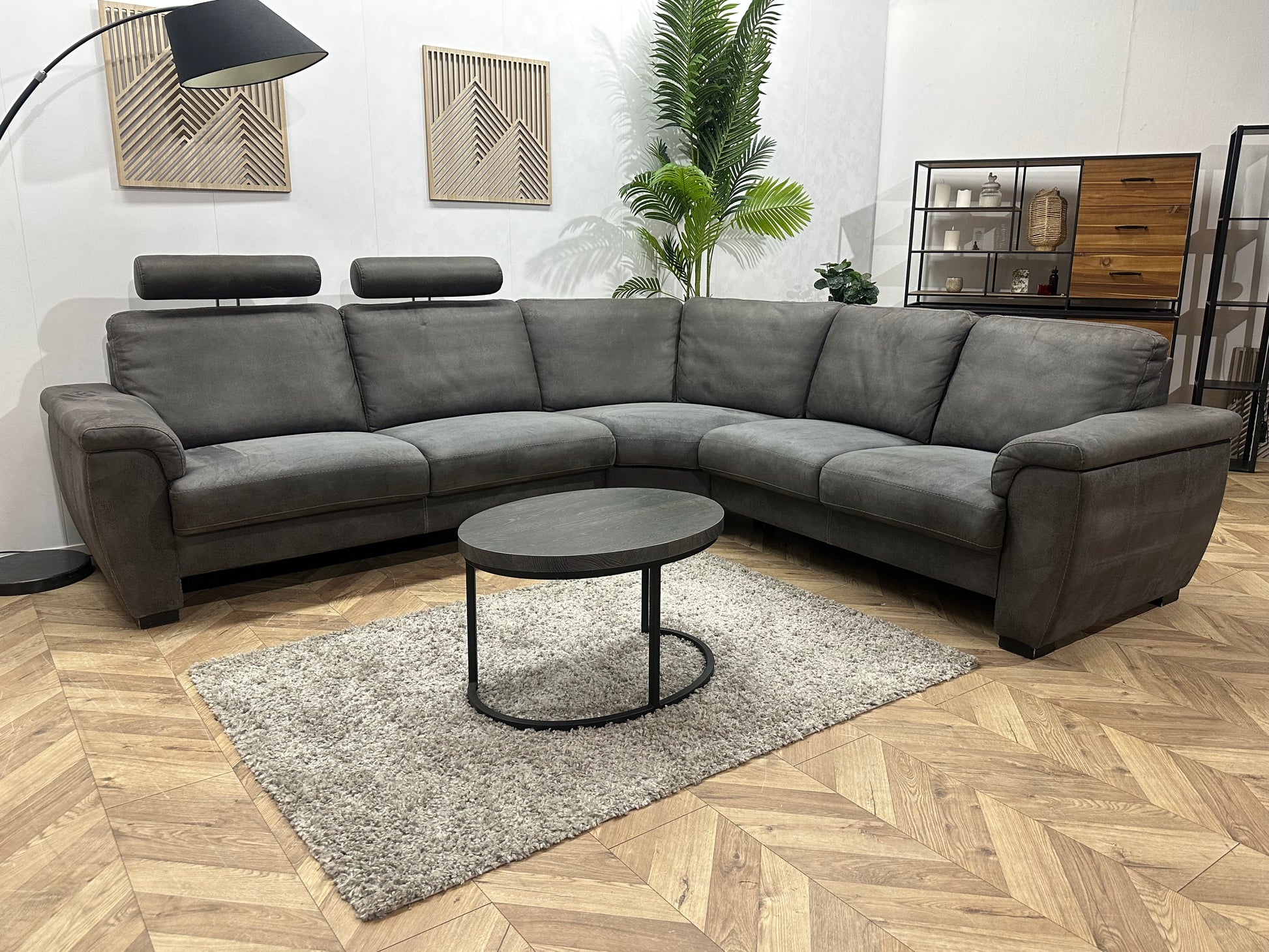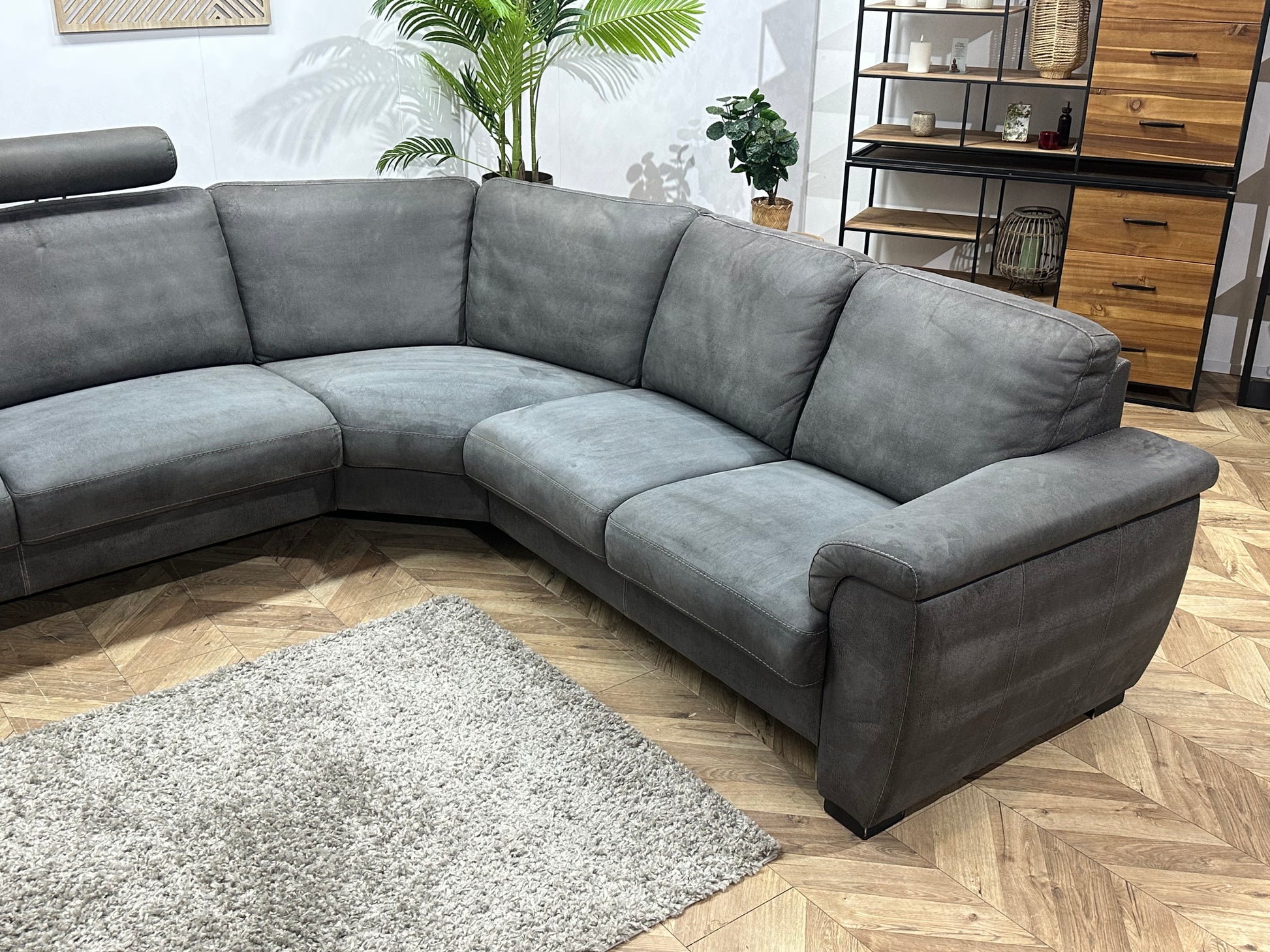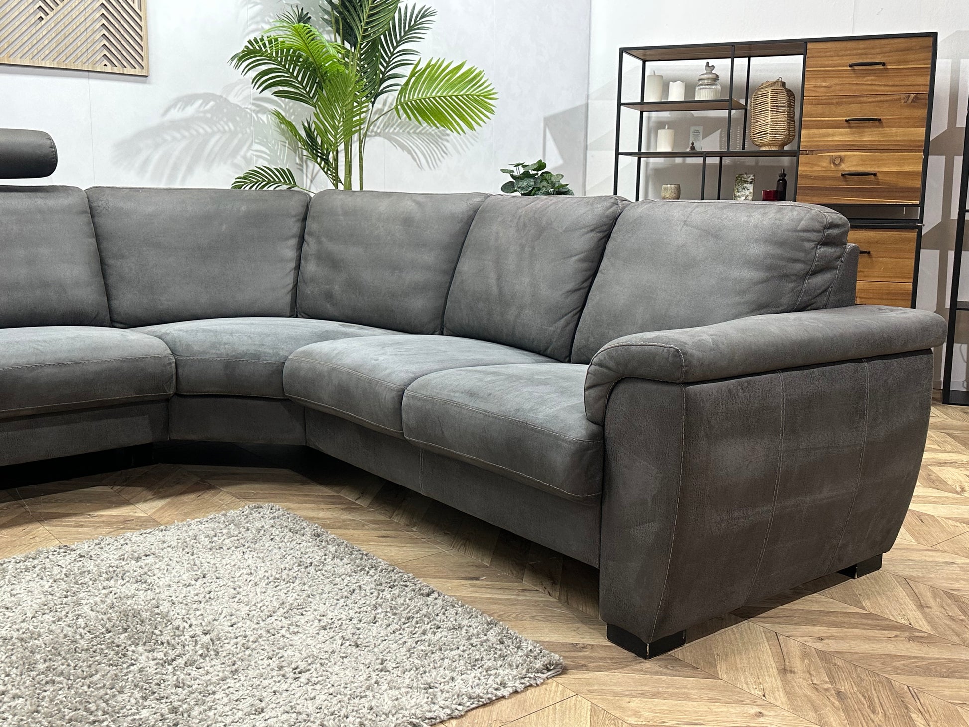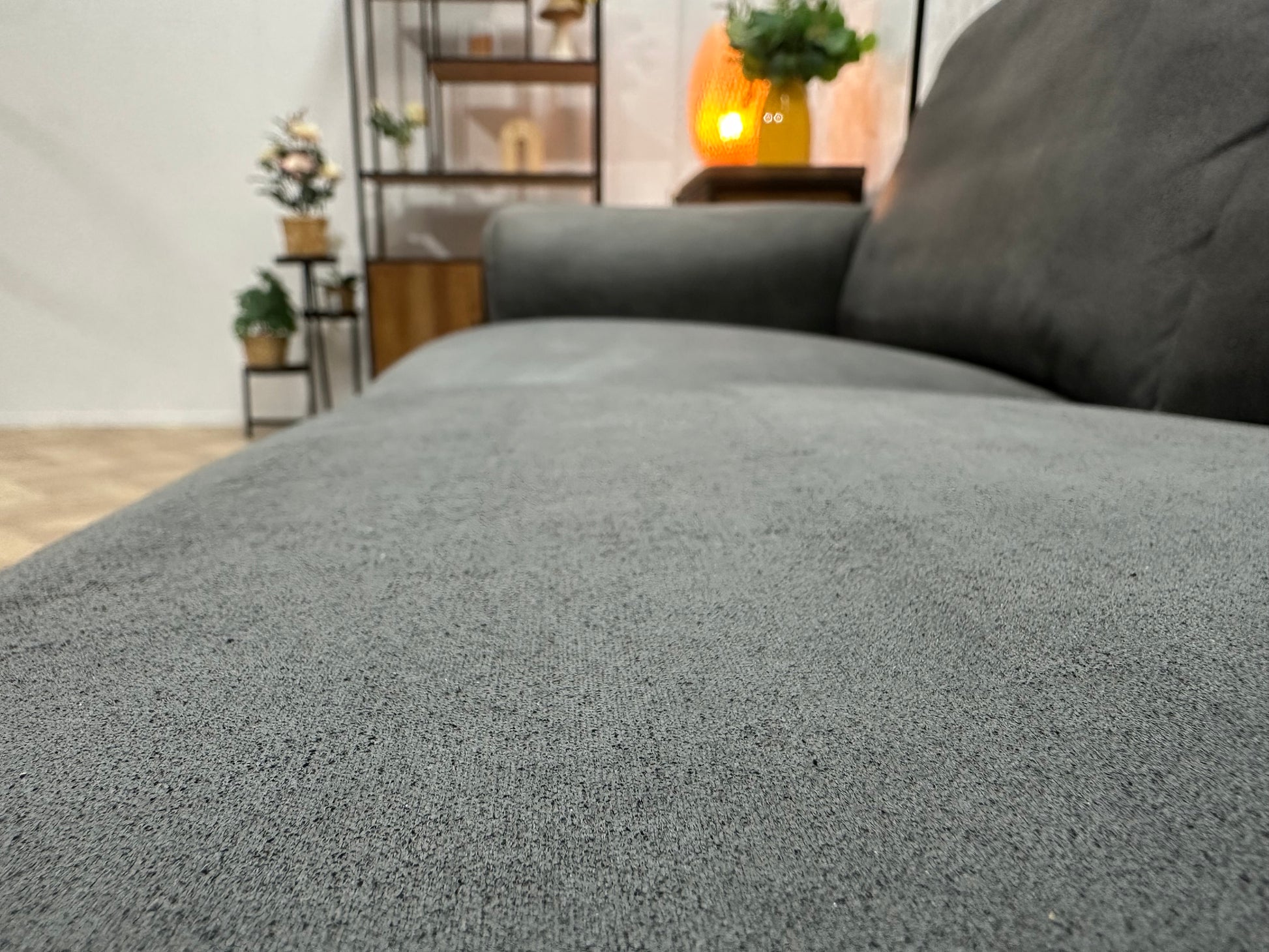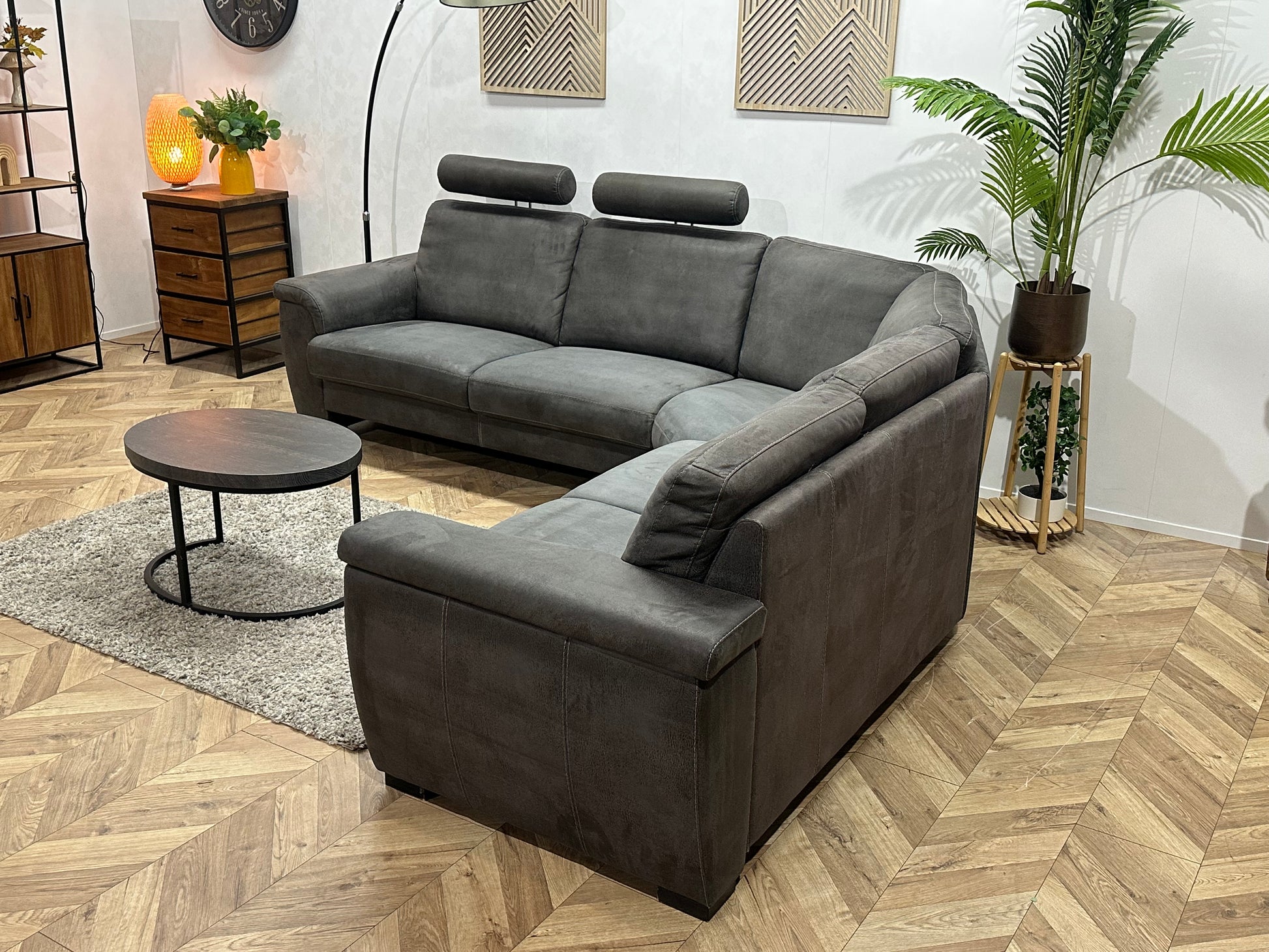 Antraciet Suède Stoffen Hoekbank ~ Vaste Kussens